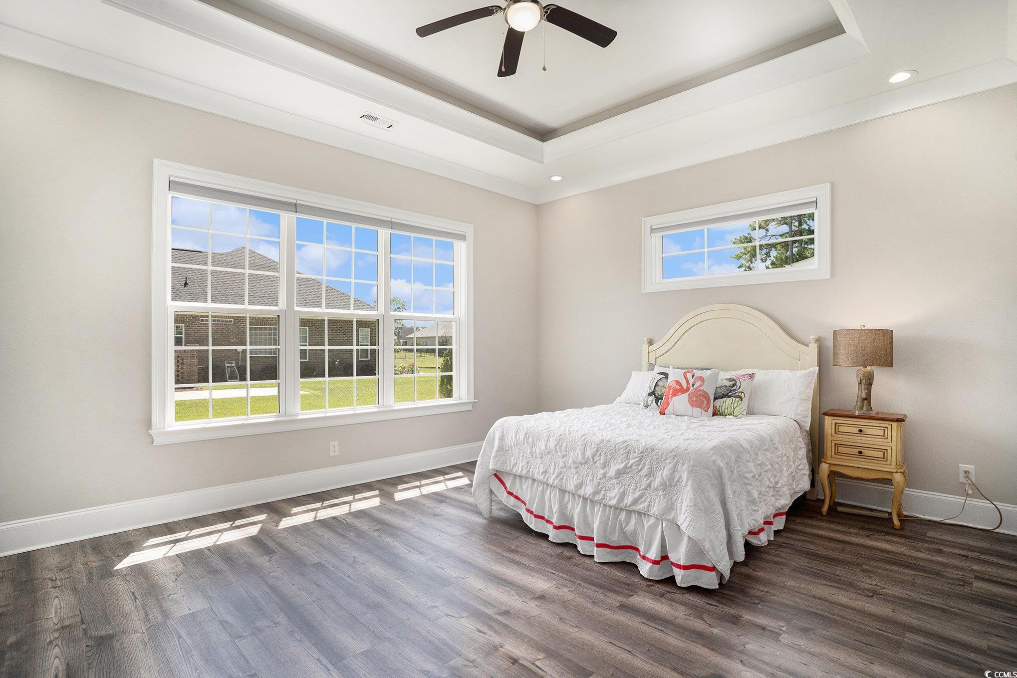 Welcome to 801 Celene Ct, a stunning custom-built home located in the gated community of Covington Lake East in the heart of Carolina Forest. This home checks every box—space, upgrades, layout, and location. The bright, open-concept main living area features soaring ceilings, luxury vinyl plank flooring, and a sleek fireplace with built-in shelving—perfect for everyday living and entertaining. The chef’s kitchen shines with abundant white cabinetry, beautiful countertops, stainless steel appliances including a gas range, oversized island with pendant lighting, walk-in pantry, and space for a full dining table, all filled with natural light. The primary suite is a true retreat with tray ceiling, spa-like bath featuring dual vanities, tiled walk-in shower, soaking tub, and a large walk-in closet. Upstairs offers additional bedrooms plus a versatile loft ideal for a second living area, media room, or home gym. Additional highlights include a dedicated office or formal dining room with large picture windows, spacious laundry room, and a 3-car garage with excellent storage. The home is pre-wired for a pool, includes 220 outlets inside and outside the garage, and sits on a large corner lot with plenty of room for a privacy or metal fence. Enjoy the covered patio overlooking a beautifully landscaped backyard—perfect for relaxing or entertaining. Covington Lake East offers sidewalks, a community pool, natural gas, and a prime location close to top-rated schools, shopping, dining, medical facilities, and the beach. This elegant, move-in-ready home is priced to move. Schedule your private showing today! Buyer responsible for verification