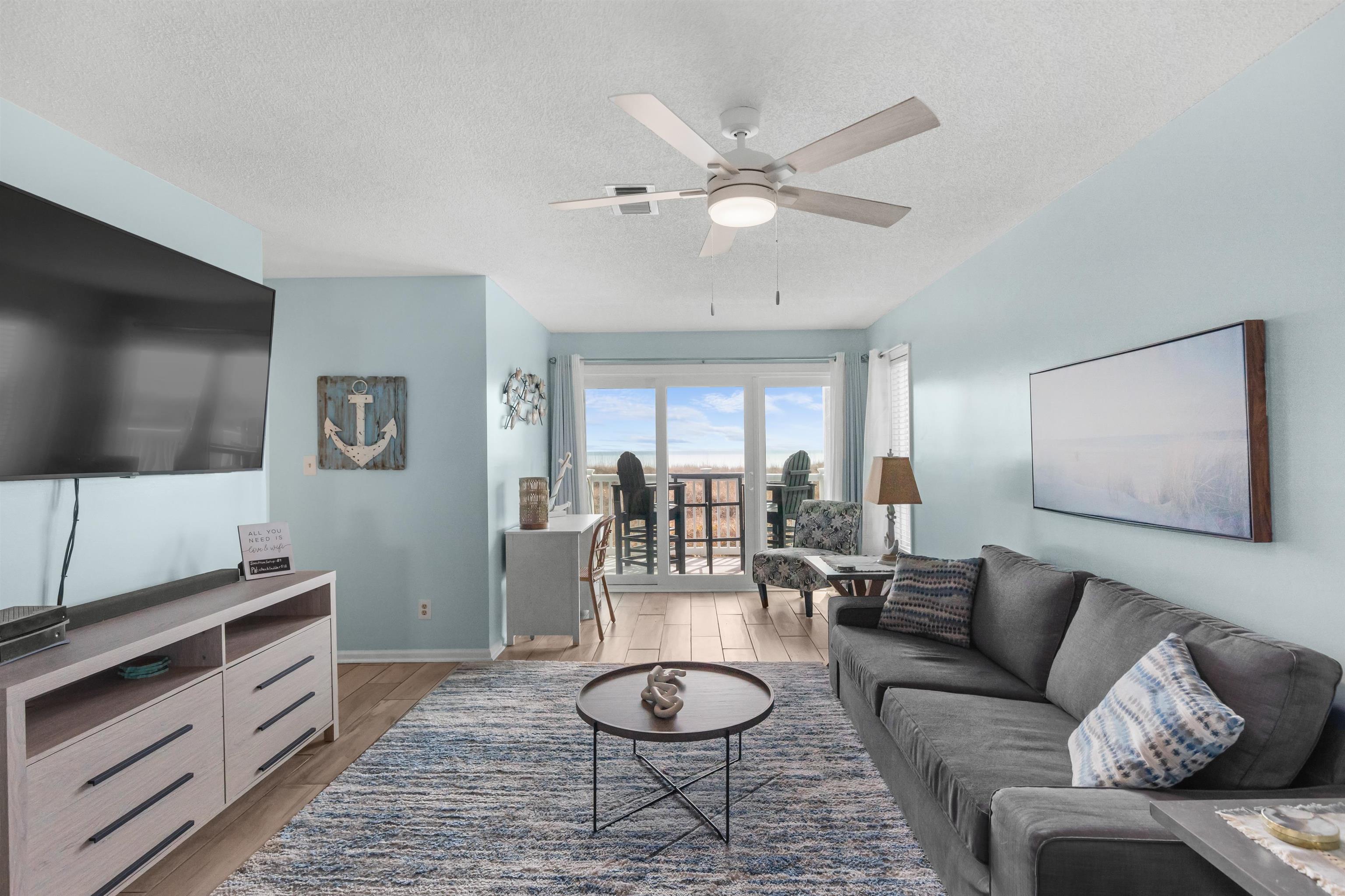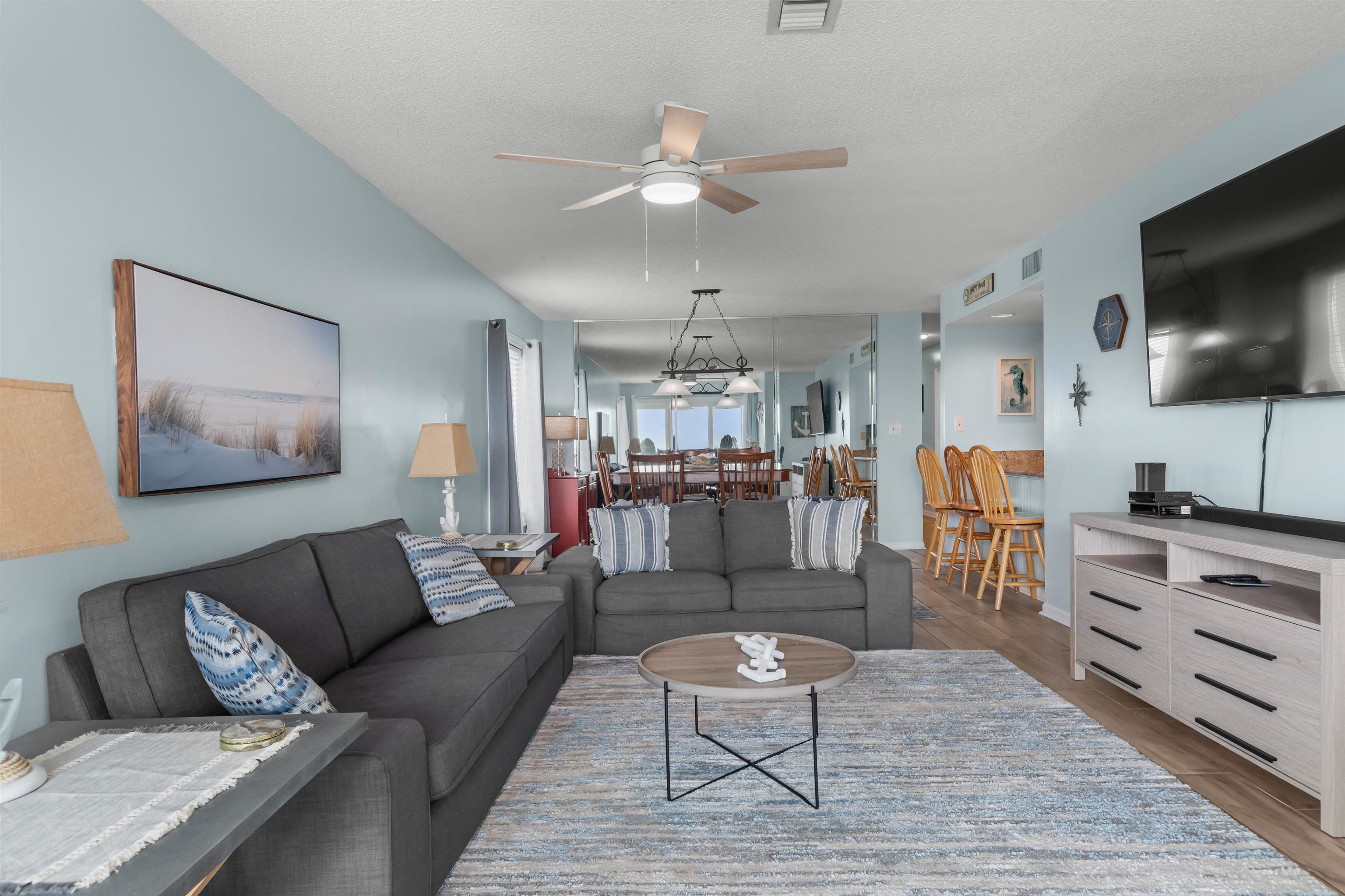 Experience breathtaking direct oceanfront living in this beautifully renovated 3-bedroom, 2-bath end-unit condo located on the first floor of the exclusive Shoreline building. With only nine units in the entire building and no unit having sold here in the past three years, this is an extremely rare opportunity to own in one of the most private and desirable oceanfront settings along the Grand Strand. This turnkey property comes fully furnished and has been completely renovated, featuring durable wood-look tile flooring throughout for a seamless coastal feel. As you enter, you’ll find two spacious guest bedrooms at the front of the unit, along with a laundry room equipped with a full-size washer and dryer for convenience. The updated kitchen is designed for both style and functionality with white cabinetry, granite countertops, full-size black appliances, and a breakfast bar for additional seating—perfect for casual dining or entertaining. The open dining and living areas are positioned perfectly to capture stunning, unobstructed ocean views, filling the space with natural light and the soothing sights and sounds of the Atlantic. The large oceanfront primary suite is a true retreat, featuring a massive picture window showcasing incredible panoramic views of the ocean. The en-suite bathroom has been upgraded with granite countertops, updated cabinetry, and dual vanity sinks. Step outside onto your private oceanfront balcony and enjoy morning coffee while watching the sunrise over the Atlantic, or unwind in the evening with the refreshing coastal breeze. Shoreline is a well-maintained boutique building offering a brand-new private wooden beach walkway for easy access to the sand and a sparkling in-ground pool perfect for cooling off on warm summer days. The unit also includes an attached private storage closet conveniently located by the front door, ideal for storing beach chairs, umbrellas, and gear. Whether you're looking for a primary residence, vacation getaway, or income-producing investment property, this rare oceanfront opportunity offers the perfect blend of privacy, luxury, and location. Square footage is deemed reliable, buyer responsible for verification.