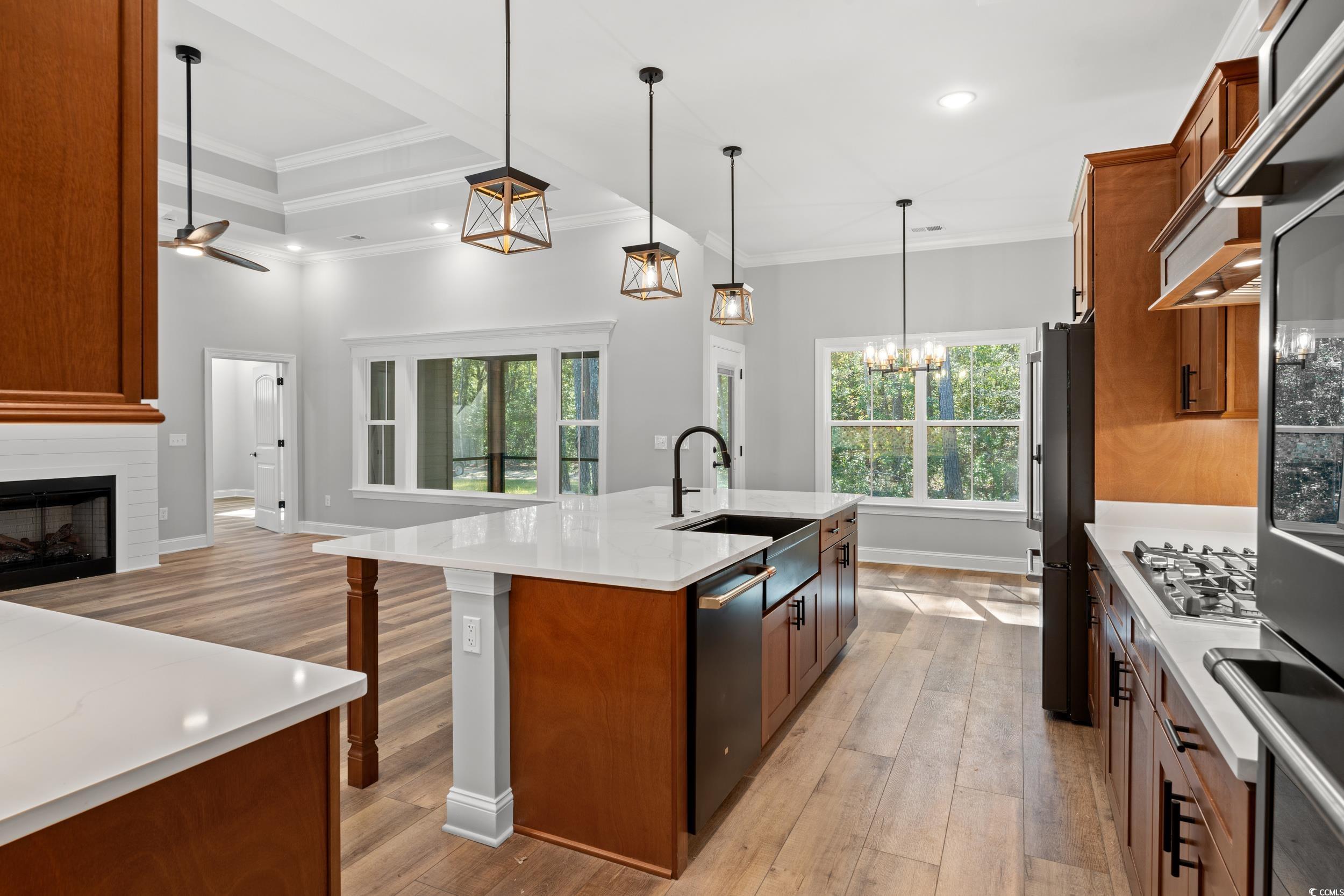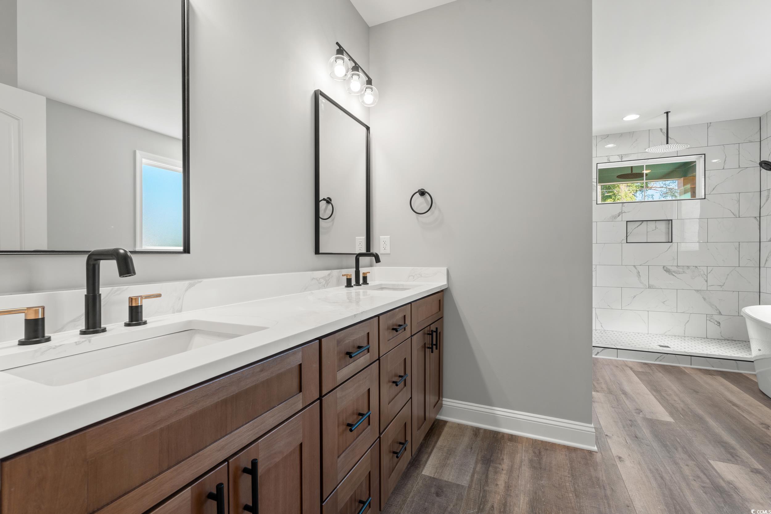 Welcome to your brand-new, completed, Hardi siding, no Hoa, large lot, custom home! This charming 4-bedroom, 3.5-bathroom low country home features an upper-level bonus room with full bath and closet and a spacious first-floor master suite, separate dining room and office. Enjoy luxury with a soaking tub, separate shower, double vanity, and two walk-in closets, plus your own entrance from the screened-in rear porch to enjoy coffee. The master suite seamlessly connects to the Great Room, which includes a cozy fireplace and an open kitchen floorplan with breakfast nook. The main level also offers a separate formal dining room, a dedicated office, two additional bedrooms, a full bath, half bath, a separate laundry room, and access to the garage, maximizing every inch of space. Built with durable Hardi Board siding, this home combines aesthetic appeal with long-lasting protection against the elements, ensuring a beautiful and low-maintenance exterior for years to come. Upstairs, you'll find a heated 526 sq ft bonus room with full bath and closet—perfect for a 4th bedroom or extra living space—and additional storage areas. Outside, enjoy the peaceful setting where you can relax and take in stunning private views from your porch, providing the perfect spot to unwind and enjoy nature. Just a short drive away, enjoy the local charm of Downtown Conway easy access to Highway 22 to North Myrtle or a short trip to many beautiful beaches along the Grand Strand. Don't miss the opportunity to see this beautiful home—schedule your showing today or contact for any questions. Similar builds available to drive by. NOT IN A FLOOD ZONE!