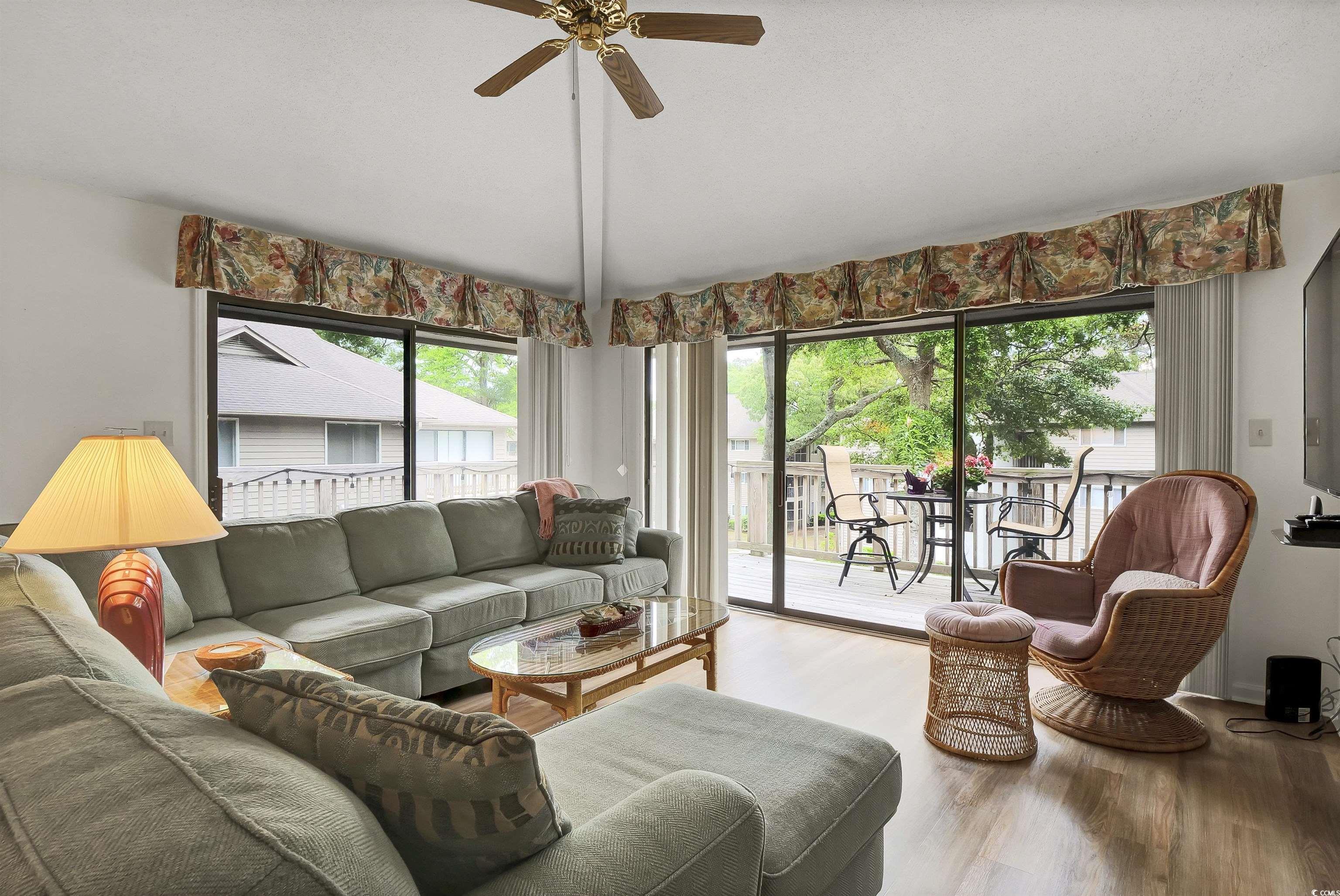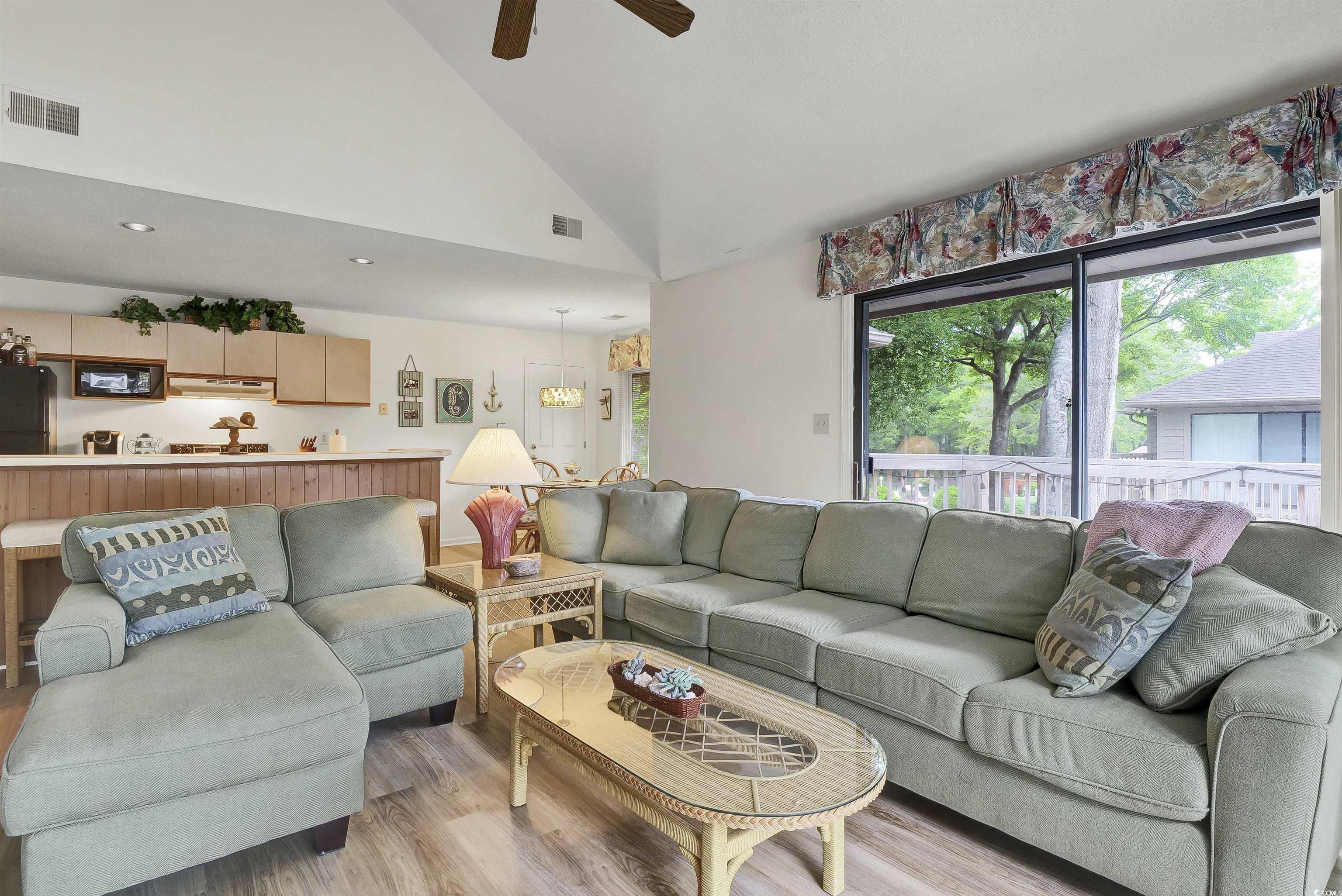 Nestled in the heart of Sunset Beach, this beautifully furnished third-floor end-unit condo offers a harmonious blend of comfort and coastal charm. Spanning 1,125 square feet, the residence boasts an open-concept layout that seamlessly connects the living, dining, and kitchen areas, creating an inviting space for relaxation and entertaining. Upon entering, you're greeted by a spacious living area adorned with durable luxury vinyl plank flooring and a cozy fireplace, setting the tone for warmth and tranquility. The adjacent dining area provides an ideal setting for enjoying meals, with additional seating available at the breakfast bar. The kitchen is thoughtfully designed with ample counter space and cabinetry, catering to both casual meals and culinary endeavors. The condo features two generously sized bedrooms, each designed for comfort and privacy. The primary suite offers direct access to a large wrap-around screened porch, where you can savor morning coffee or unwind in the evening while taking in serene views of the pond and Oyster Bay Golf Course. Significant updates include a newer HVAC system and ductwork installed in 2019, ensuring year-round comfort. Community amenities abound, offering residents access to swimming pool and tennis courts, promoting an active and social lifestyle. Located just minutes from the pristine sands of Sunset Beach and a short drive to local shopping and dining options, this condo presents an exceptional opportunity to embrace coastal living at its finest.