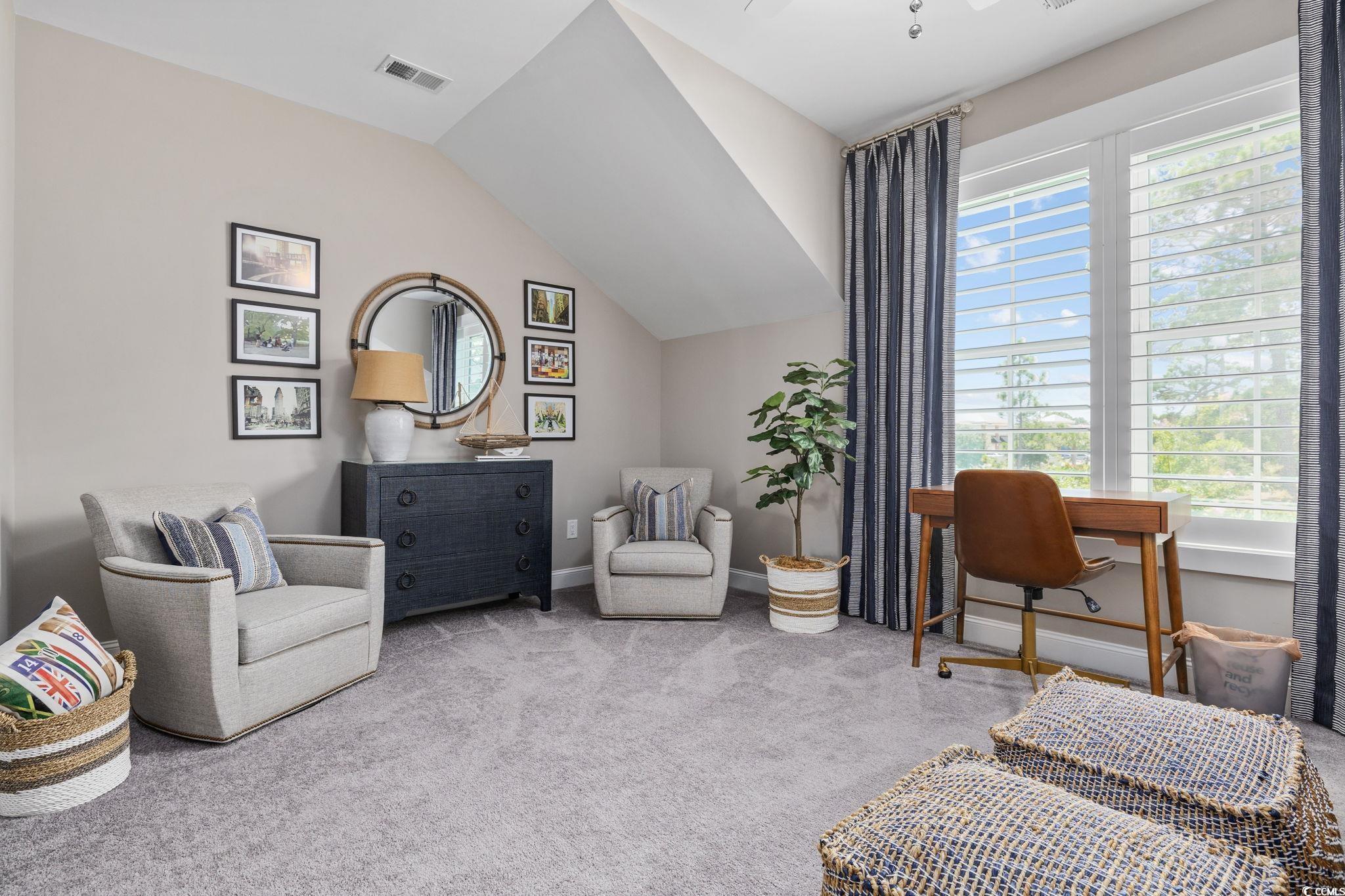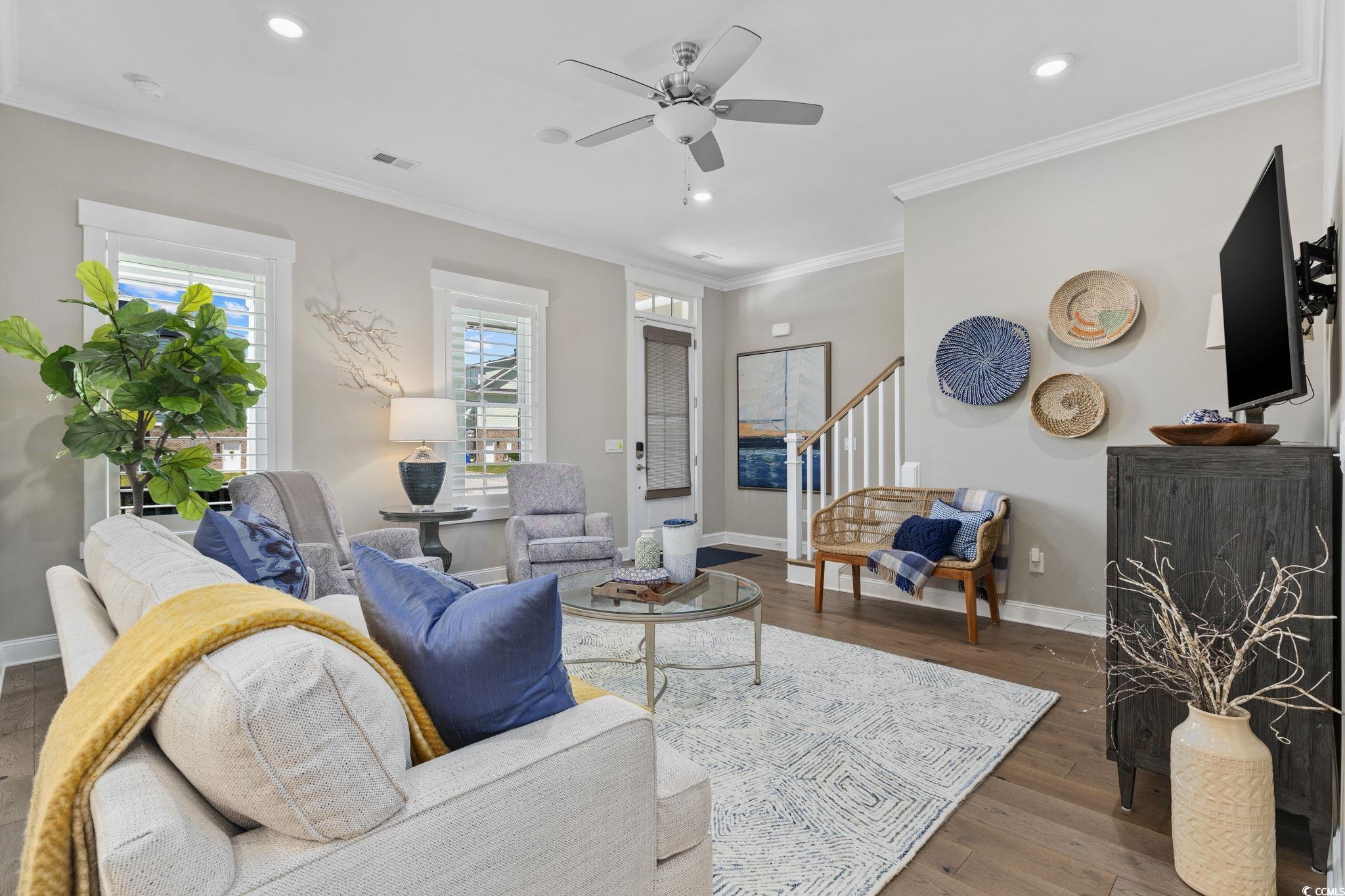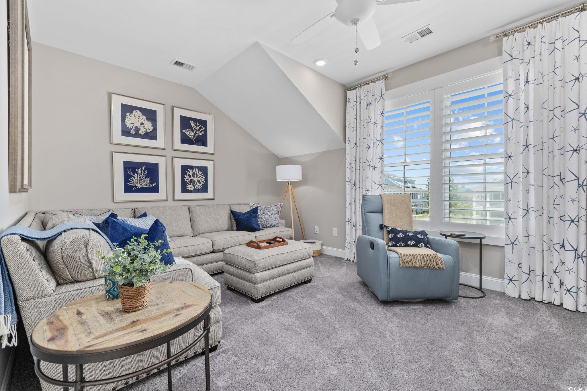 Golf-cart to the beach. Resort-style living. Zero maintenance. Often referred to as a coupled cottage, duet, or paired ranch, this home is perfect as a primary residence or second home—combining luxury, convenience, and resort-style living just minutes from the ocean. Meticulously maintained and perfectly positioned, this coastal coupled cottage is just a quick golf-cart ride—approximately a quarter mile—from the beach. Offering 3 bedrooms, 2.5 baths, and 2,101 heated square feet, this home delivers effortless coastal living with thoughtful upgrades and exceptional care throughout. Step inside to an open, light-filled floor plan designed for comfort and easy entertaining. The elegant kitchen features quartz countertops, stainless steel appliances, a gas range, wine refrigerator, and modern finishes, making it ideal for everyday living and gatherings alike. Luxury vinyl plank flooring and plantation shutters enhance both style and function on the main level. The primary suite is conveniently located on the first floor, while two additional bedrooms are upstairs. A spacious second-floor loft offers flexible living space—perfect for a media room, home office, sitting area, or guest retreat. Both bathrooms include tiled showers, creating a clean, spa-like feel. Enjoy peaceful mornings and breezy evenings on the porch, or entertain outdoors in the fenced in backyard complete with a golf-cart/storage shed and built-in BBQ area. HOA fees include all exterior yard maintenance, offering truly low-maintenance living. Located in the intimate, pet-friendly Living Dunes community within Grande Dunes, residents enjoy walking paths, an outdoor pool, and community fire pits that encourage an active, social lifestyle. As a Grande Dunes homeowner, you’ll also have access to the spectacular 25,000-square-foot Ocean Club, featuring fine dining, oceanfront pools with food and beverage service, a private beach entrance, beach chair service, and a full calendar of social events. Additional amenities include two championship 18-hole golf courses, a deep-water marina, and a tennis facility, offering an unparalleled coastal lifestyle.