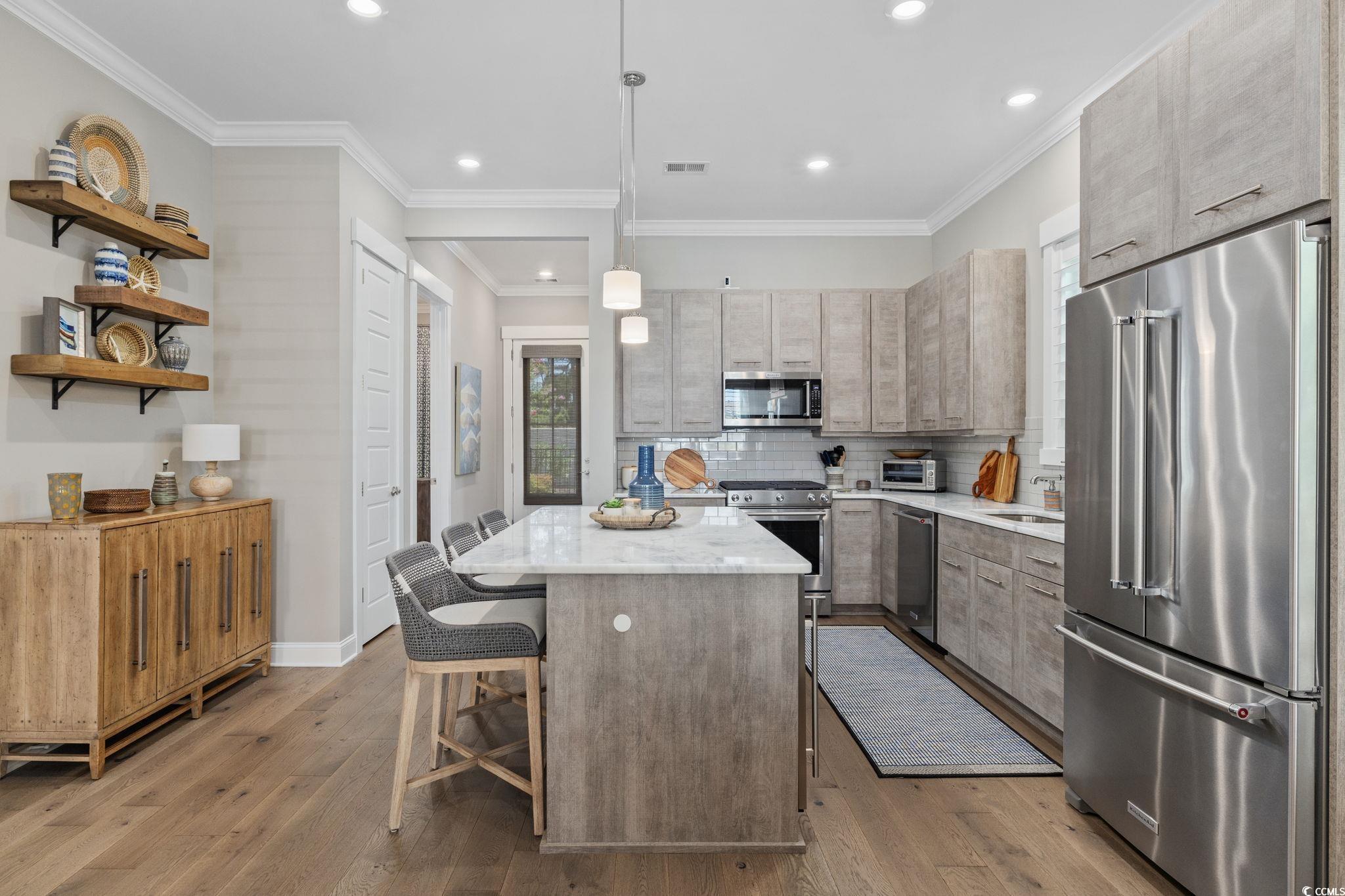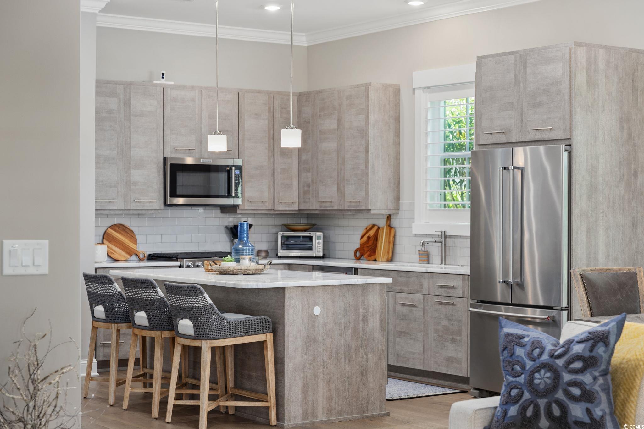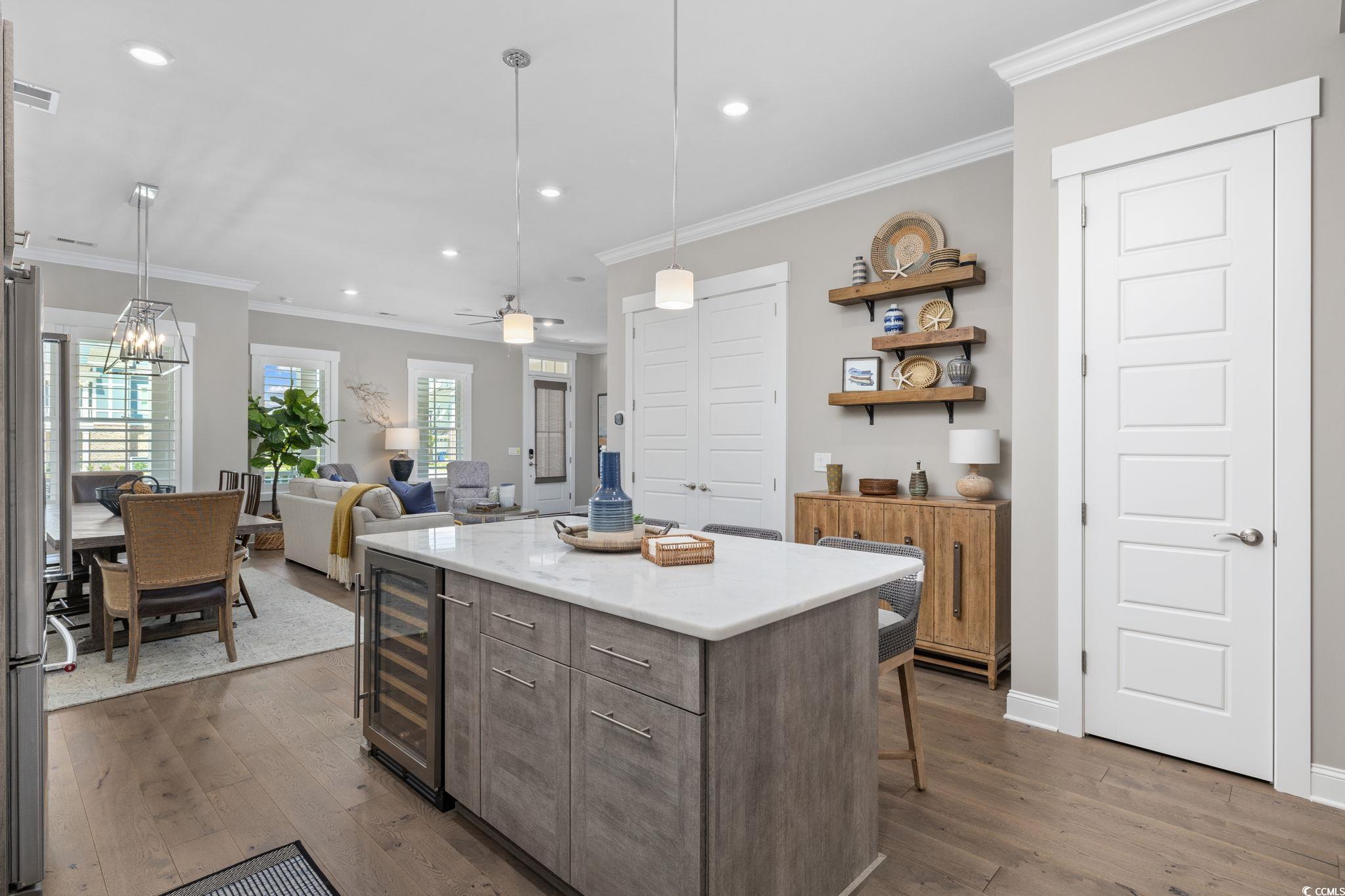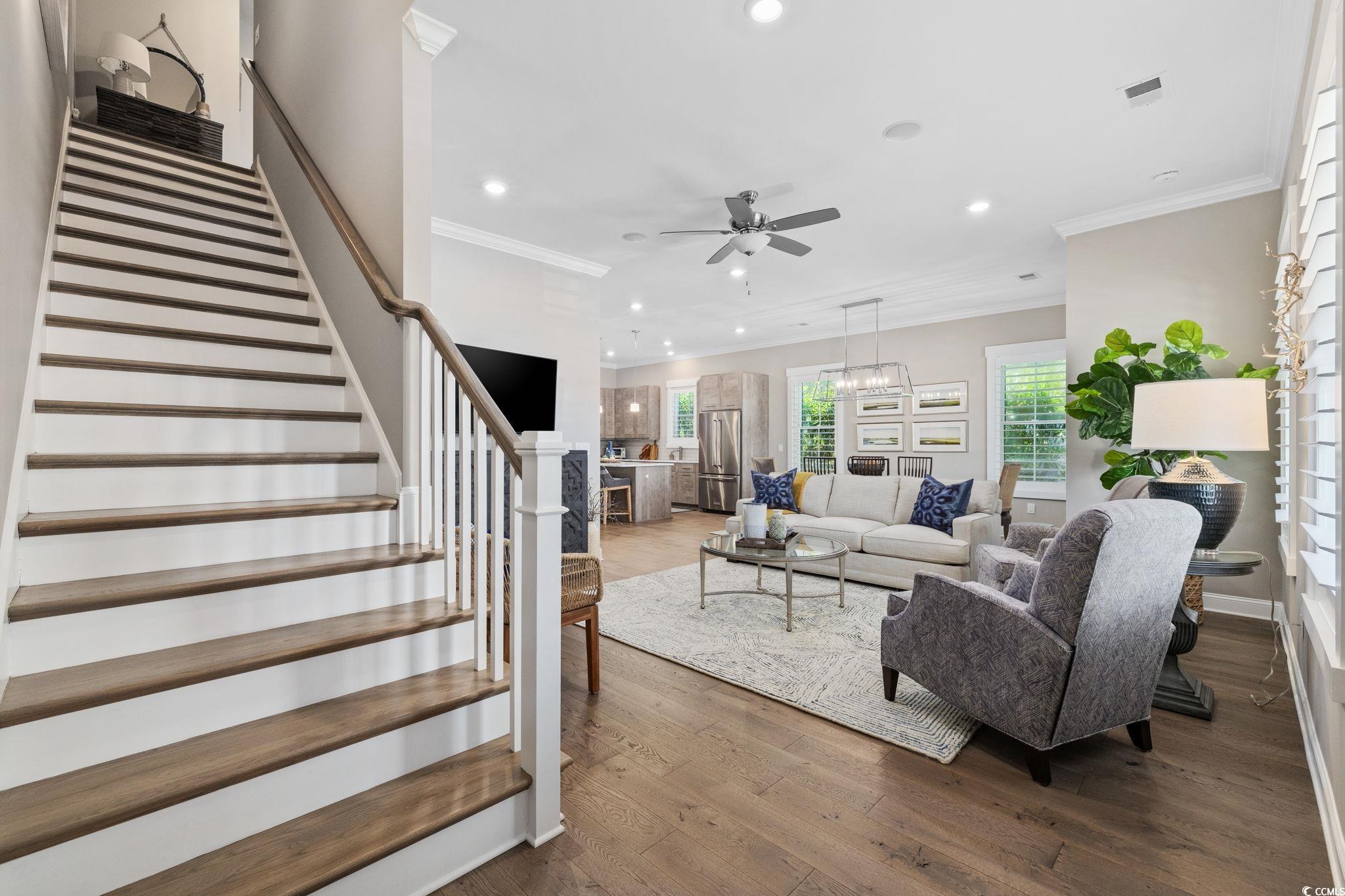 Golf-cart to the beach. Resort-style living. Zero maintenance. Often referred to as a coupled cottage, duet, or paired ranch, this home is perfect as a primary residence or second home—combining luxury, convenience, and resort-style living just minutes from the ocean. Meticulously maintained and perfectly positioned, this coastal coupled cottage is just a quick golf-cart ride—approximately a quarter mile—from the beach. Offering 3 bedrooms, 2.5 baths, and 2,101 heated square feet, this home delivers effortless coastal living with thoughtful upgrades and exceptional care throughout. Step inside to an open, light-filled floor plan designed for comfort and easy entertaining. The elegant kitchen features quartz countertops, stainless steel appliances, a gas range, wine refrigerator, and modern finishes, making it ideal for everyday living and gatherings alike. Luxury vinyl plank flooring and plantation shutters enhance both style and function on the main level. The primary suite is conveniently located on the first floor, while two additional bedrooms are upstairs. A spacious second-floor loft offers flexible living space—perfect for a media room, home office, sitting area, or guest retreat. Both bathrooms include tiled showers, creating a clean, spa-like feel. Enjoy peaceful mornings and breezy evenings on the porch, or entertain outdoors in the fenced in backyard complete with a golf-cart/storage shed and built-in BBQ area. HOA fees include all exterior yard maintenance, offering truly low-maintenance living. Located in the intimate, pet-friendly Living Dunes community within Grande Dunes, residents enjoy walking paths, an outdoor pool, and community fire pits that encourage an active, social lifestyle. As a Grande Dunes homeowner, you’ll also have access to the spectacular 25,000-square-foot Ocean Club, featuring fine dining, oceanfront pools with food and beverage service, a private beach entrance, beach chair service, and a full calendar of social events. Additional amenities include two championship 18-hole golf courses, a deep-water marina, and a tennis facility, offering an unparalleled coastal lifestyle.