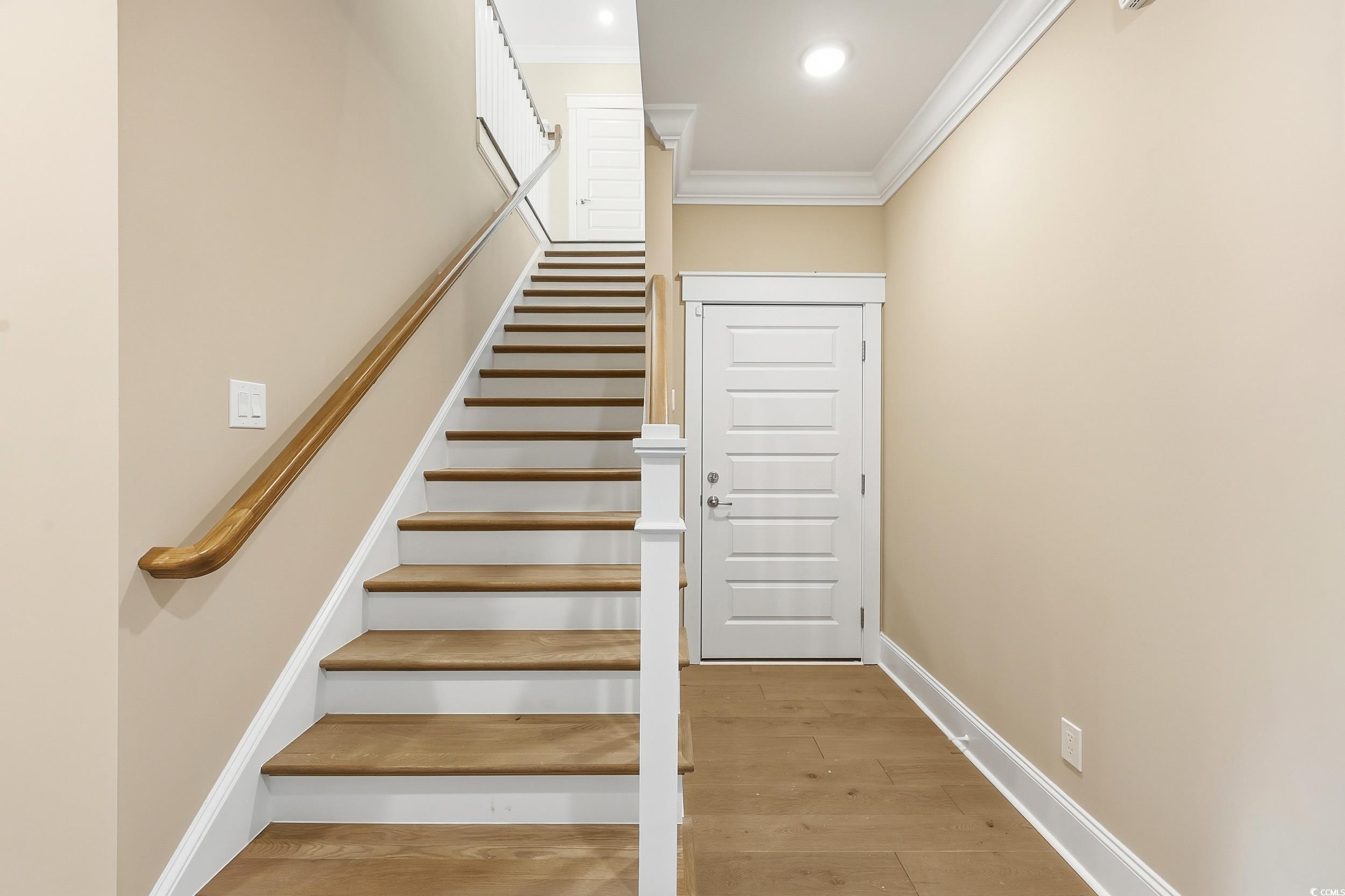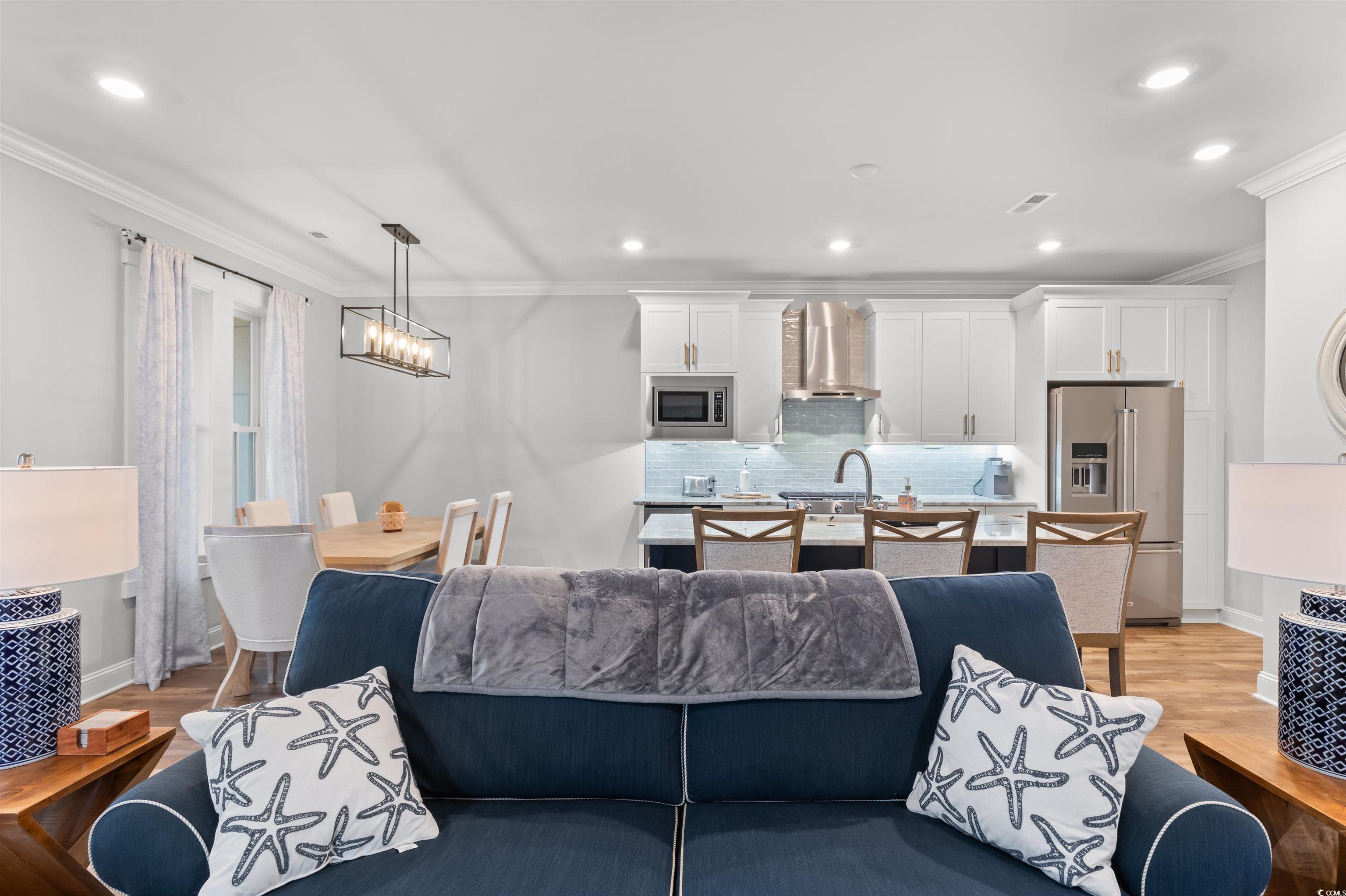 Enjoy luxury living with less maintenance in the Grande Dunes in this Under Construction, well designed 3 bedroom, 2.5 bath townhome. What people love the most on this plan is the show stopping covered wrap-around 2nd story porch. With an open great room, kitchen and dining area, the floor plan creates space for entertaining guests or simply enjoying family. The master suite is conveniently on the main level with a large walk-in closet, master bath accented by double sink vanities and a decorative tiled shower. This home offers two guest bedrooms that are nicely separated from the main living area on the 1st level floor, along with a full bath, laundry room and 1 car attached garage. Come live the Grande Dunes lifestyle at Living Dunes in our new construction homes with lakefront, water view or private perimeter real estate available. Located on the North end of Myrtle Beach less than 1 mile from the ocean, Living Dunes features low-country style single and multi-family homes constructed by locally renowned, CRG Homes. Our homes are built with elevated materials and practices that surpass regulations allowing you to own a quality home that is energy efficient and eco-friendly. Our kitchens feature designer quality Elmwood cabinets, with soft close doors and drawers, cove crown molding, and a light rail with under cabinet LED lighting. In our list of standard specifications are quartz countertops, tile backsplash, stainless steel appliances, 2 x 6 construction, impact resistant windows, natural gas, Rinnai tankless water heaters, Icynene spray foam insulation and cutting-edge home technology. As Myrtle Beach’s first Gigabit community, Living Dunes provides residents with internet connections faster than the average, meaning more time spent doing what you want. Residents have superior on-site amenities with a zero entry free form swimming pool. that offers a tanning shelf, well appointed clubhouse, miles of walking trails, 10 acres of lakes, and green spaces. Thoughtful design and unprecedented amenities, the community’s location offers convenient access to the beach, Grande Dunes Ocean Club, Marina, golf courses, and several major marketplaces with groceries, pharmacies, shopping, dining, fitness, health care, salons, and more. Live Local, Live Smart, Living Dunes. Photos shown are of another similar plan in Living Dunes.