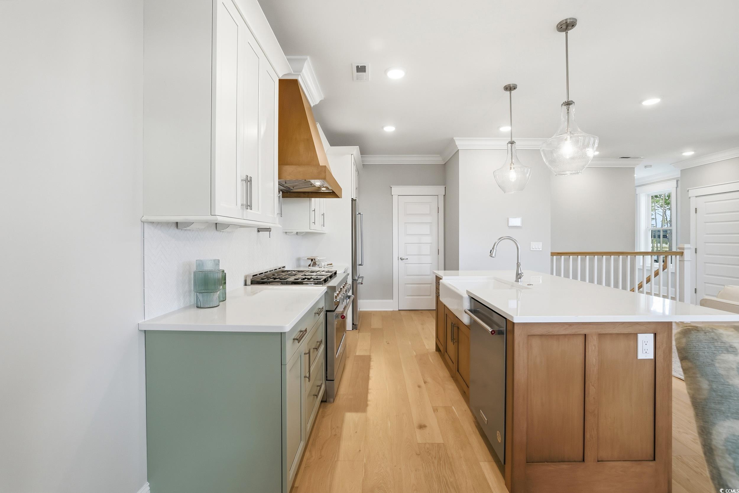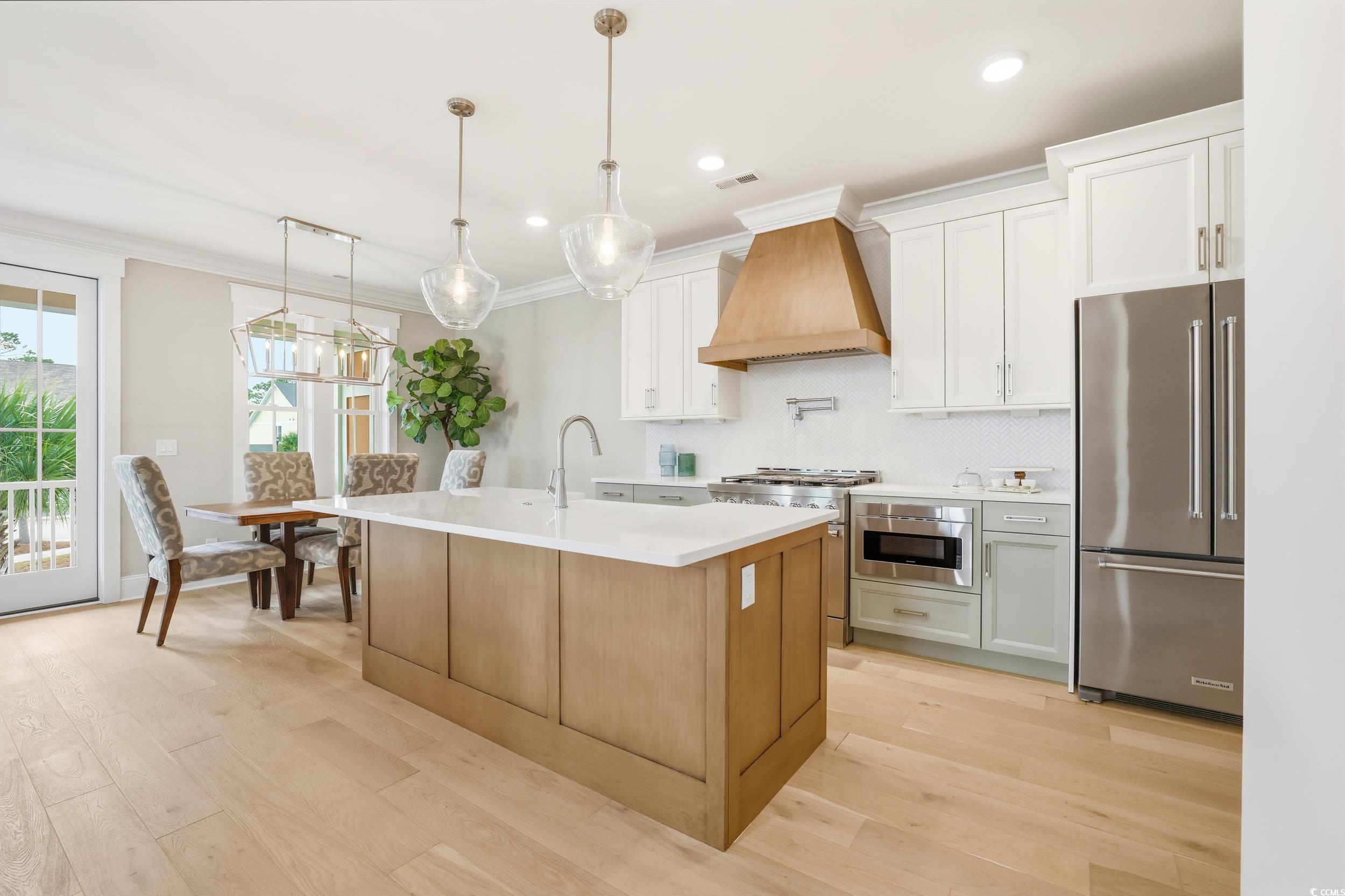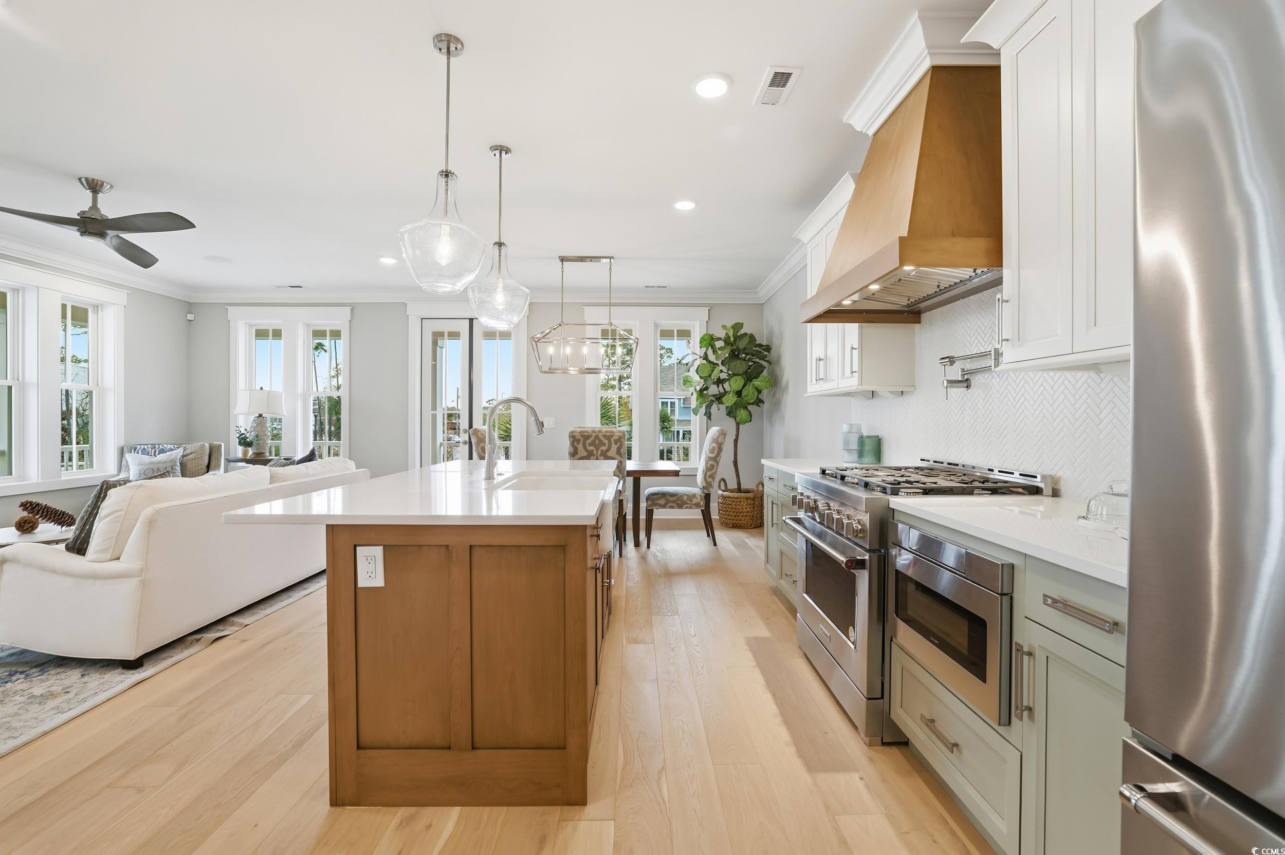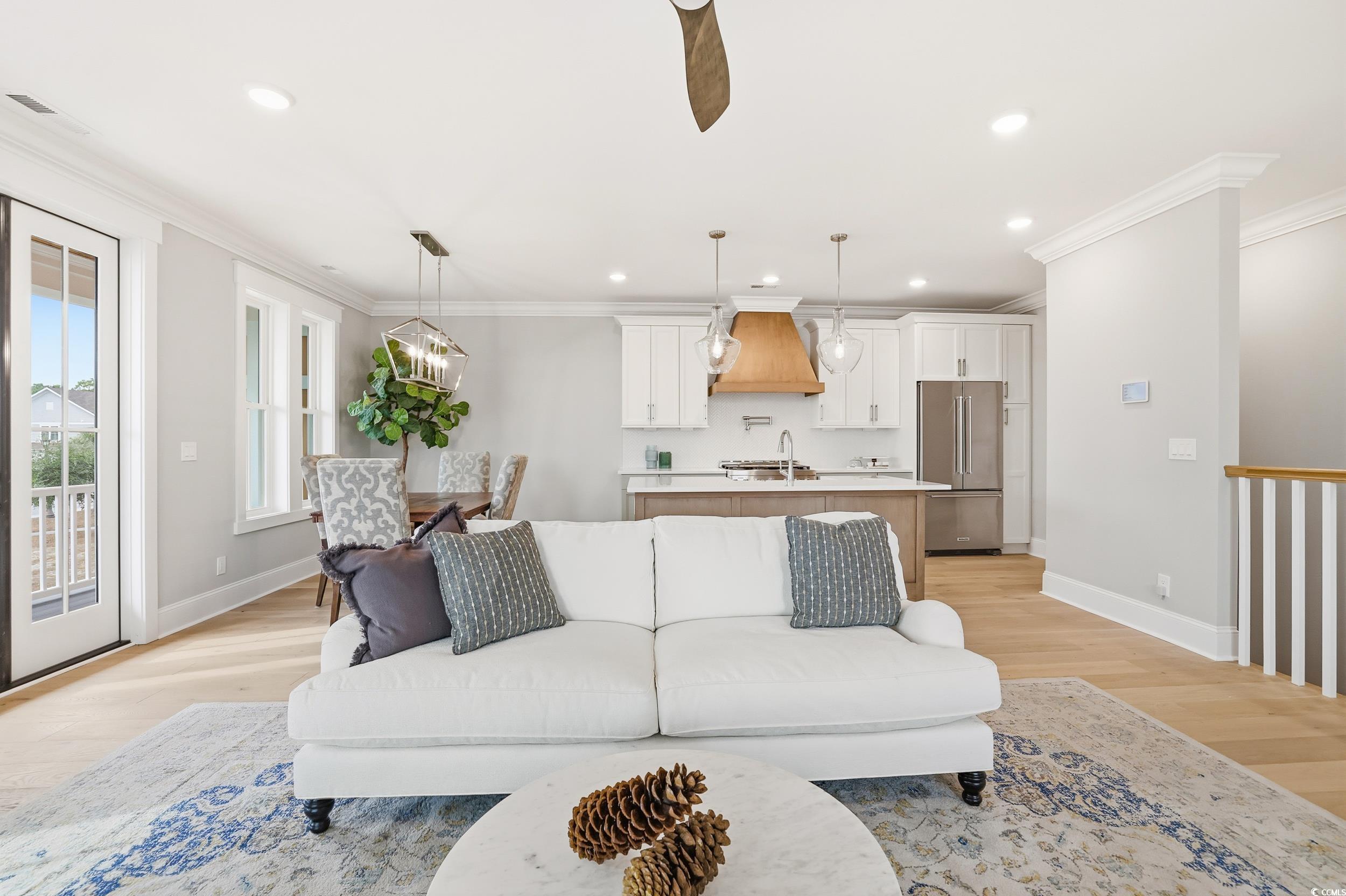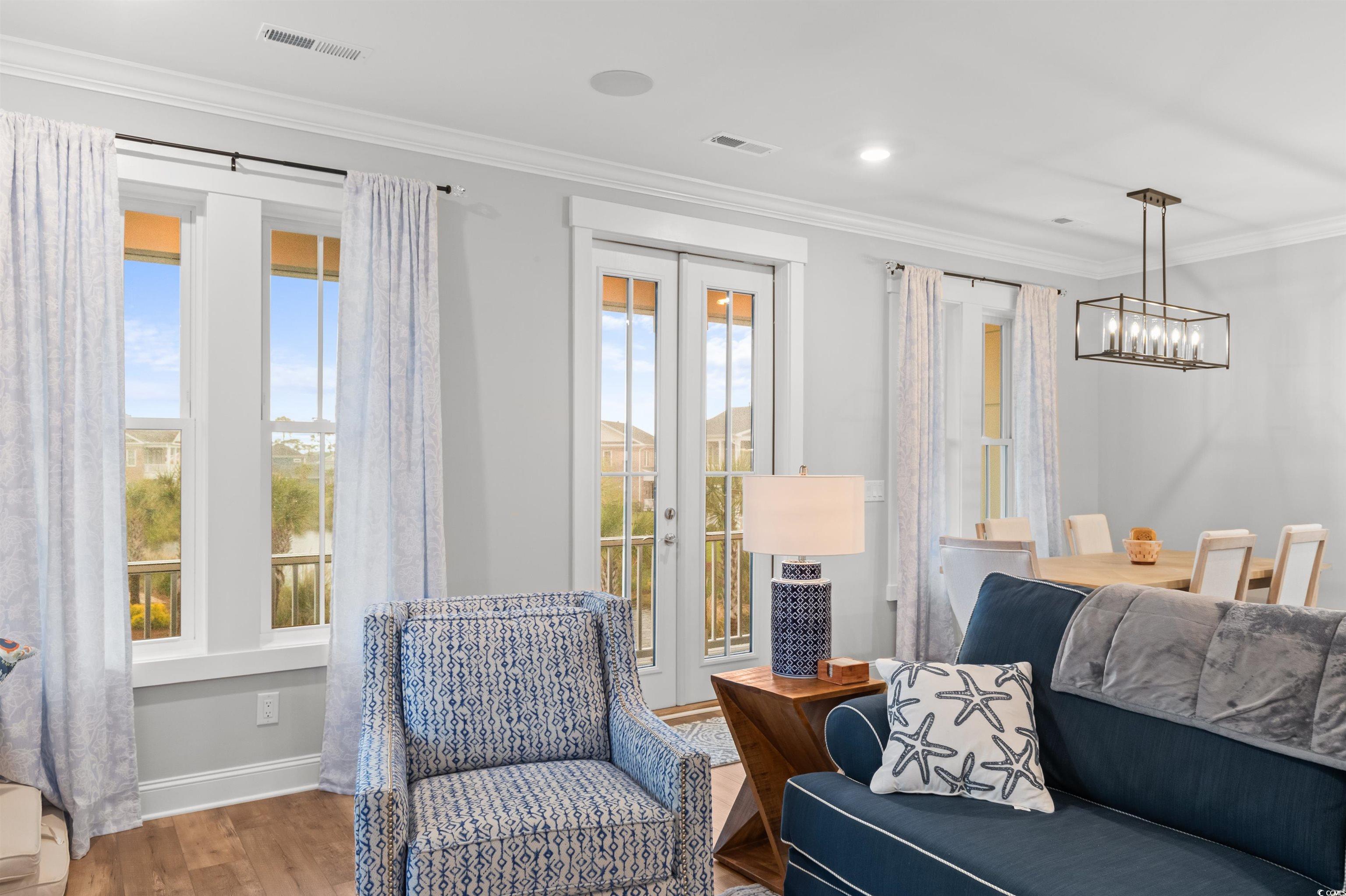 Enjoy luxury living with less maintenance in the Grande Dunes in this Under Construction, well designed 3 bedroom, 2.5 bath townhome. What people love the most on this plan is the show stopping covered wrap-around 2nd story porch. With an open great room, kitchen and dining area, the floor plan creates space for entertaining guests or simply enjoying family. The master suite is conveniently on the main level with a large walk-in closet, master bath accented by double sink vanities and a decorative tiled shower. This home offers two guest bedrooms that are nicely separated from the main living area on the 1st level floor, along with a full bath, laundry room and 1 car attached garage. Come live the Grande Dunes lifestyle at Living Dunes in our new construction homes with lakefront, water view or private perimeter real estate available. Located on the North end of Myrtle Beach less than 1 mile from the ocean, Living Dunes features low-country style single and multi-family homes constructed by locally renowned, CRG Homes. Our homes are built with elevated materials and practices that surpass regulations allowing you to own a quality home that is energy efficient and eco-friendly. Our kitchens feature designer quality Elmwood cabinets, with soft close doors and drawers, cove crown molding, and a light rail with under cabinet LED lighting. In our list of standard specifications are quartz countertops, tile backsplash, stainless steel appliances, 2 x 6 construction, impact resistant windows, natural gas, Rinnai tankless water heaters, Icynene spray foam insulation and cutting-edge home technology. As Myrtle Beach’s first Gigabit community, Living Dunes provides residents with internet connections faster than the average, meaning more time spent doing what you want. Residents have superior on-site amenities with a zero entry free form swimming pool. that offers a tanning shelf, well appointed clubhouse, miles of walking trails, 10 acres of lakes, and green spaces. Thoughtful design and unprecedented amenities, the community’s location offers convenient access to the beach, Grande Dunes Ocean Club, Marina, golf courses, and several major marketplaces with groceries, pharmacies, shopping, dining, fitness, health care, salons, and more. Live Local, Live Smart, Living Dunes. Photos shown are of another similar plan in Living Dunes.