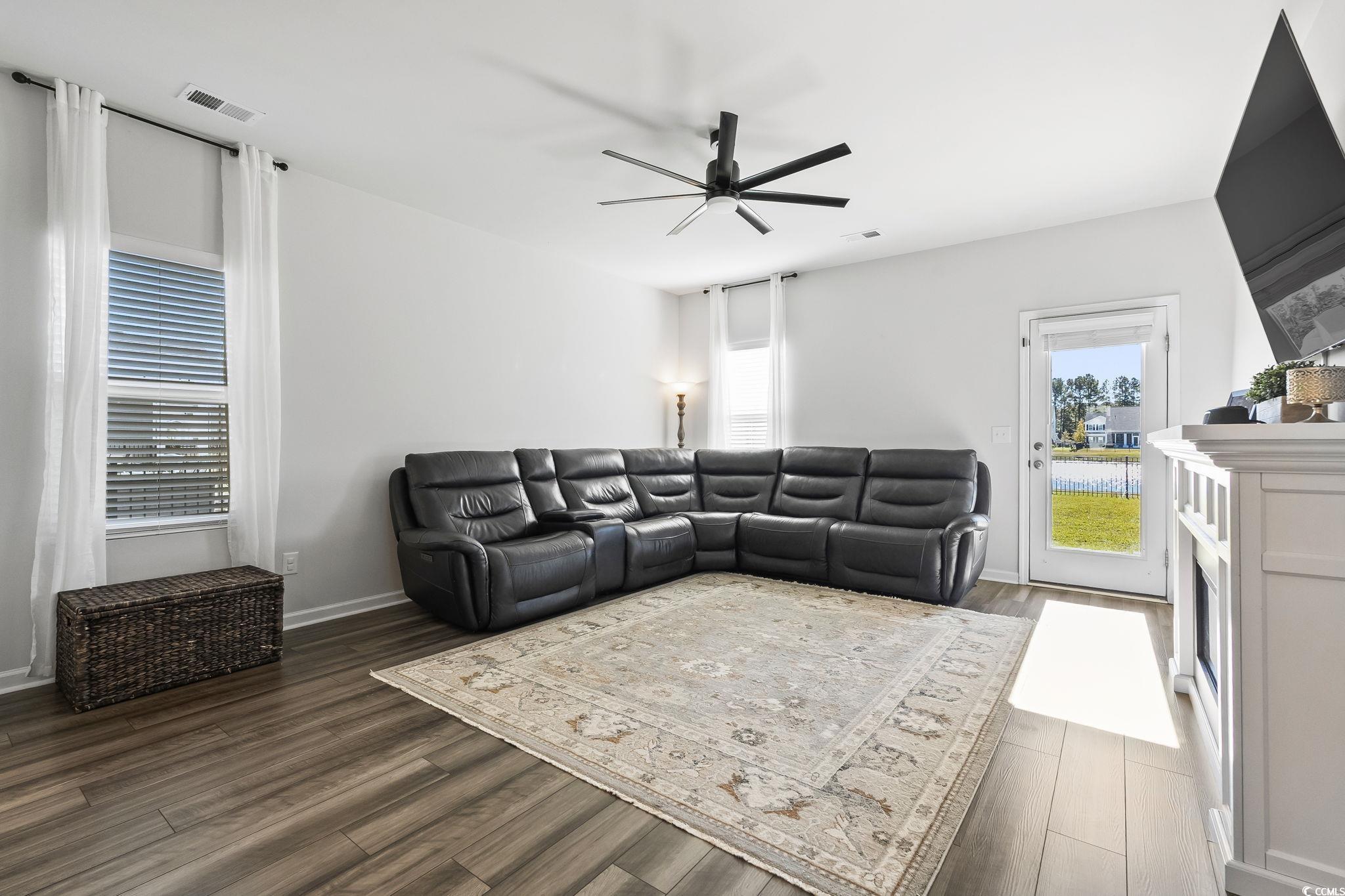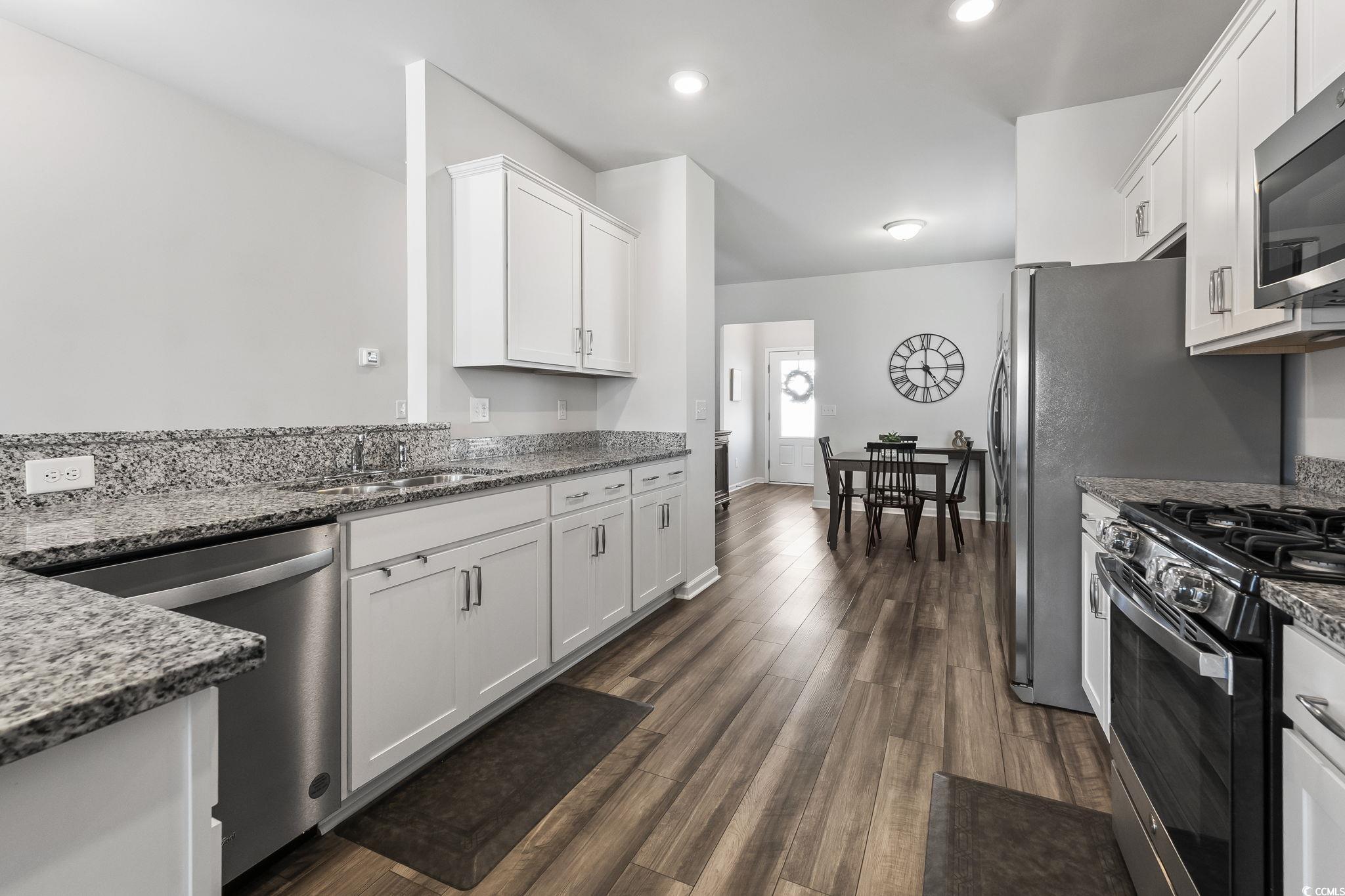 Located in the highly sought-after natural gas community of Coastal Point West, this spacious 5-bedroom, 3.5-bath home offers both comfort and style just minutes from Myrtle Beach. The property features a beautiful pond view with a fountain right outside the fenced backyard, creating a peaceful and relaxing outdoor setting. The extended patio and large gazebo provide the perfect shaded space for outdoor entertaining or enjoying quiet evenings overlooking the water. Inside, the home offers an open-concept layout with a modern kitchen featuring white cabinetry, granite countertops, stainless steel appliances, and a gas range. The primary suite is conveniently located on the main level and includes dual sinks, a large walk-in shower, and a generous closet. Upstairs, you’ll find four additional bedrooms, each with its own walk-in closet, two full bathrooms, and a versatile loft that can serve as a media room, home office, or lounge. Residents enjoy access to a community pool and cabana, along with low utility costs thanks to natural gas heating. This home combines the best of comfort, functionality, and outdoor living in one of Conway’s most desirable neighborhoods.