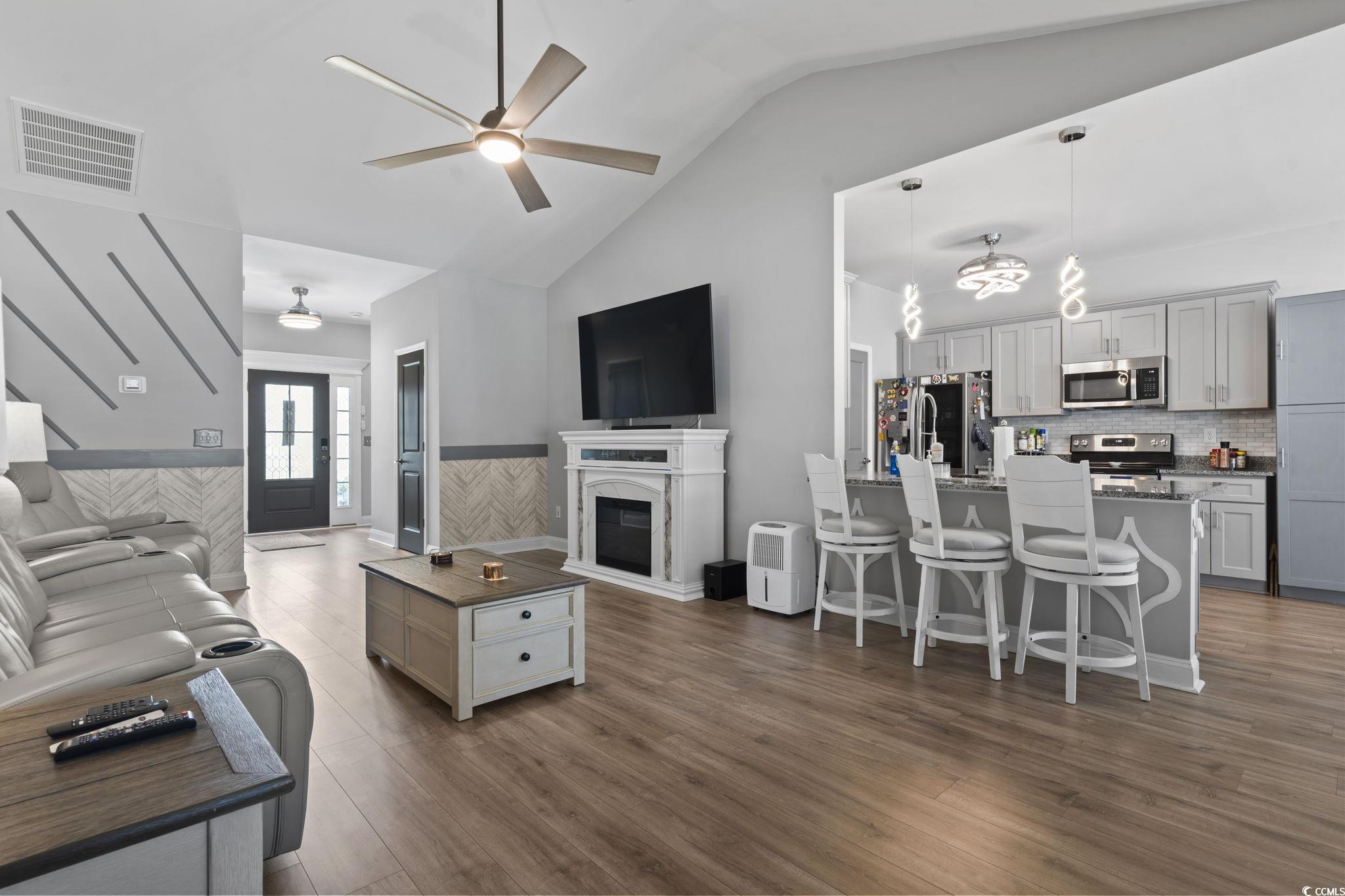Welcome to 804 Twickenham Loop – a meticulously maintained and extensively upgraded single-level residence located in the highly desirable White Hall community of Longs, SC. Built by Bridges Custom Homes, this home features the popular Madalyn model, offering a thoughtful split-bedroom floor plan designed for both comfort and style. This stunning 3-bedroom, 2-bathroom residence blends comfort, style, and functionality, perfect for those seeking peaceful, low-maintenance living just minutes from the Grand Strand. From the moment you arrive, the attention to detail is clear. The custom-tiled front patio with ceiling fan create an inviting first impression. Step inside to a bright foyer with a retractable light/fan fixture, setting the stage for the many thoughtful upgrades throughout—including freshly repainted doors that highlight the home’s crisp, well-cared-for aesthetic. The expansive living area features soaring vaulted ceilings, an oversized modern ceiling fan, and a cozy electric fireplace (does not convey but selling) with the detailed woodwork around the entry door and family room window. The open-concept chef’s kitchen boasts stainless steel appliances, soft-close cabinetry, a stylish tile backsplash, and updated lighting—flowing seamlessly into the dining area for easy entertaining. The primary suite is a true retreat with a tray ceiling, sitting area, and elegant ceiling fan. Its spa-like en-suite bath includes a crystal chandelier, updated mirrors, extra storage, a walk-in shower, and a large walk-in closet. Two additional bedrooms, each with ceiling fans, share an upgraded full bath with a new vanity and mirror. Please note two of the guest rooms are VIRTUALLY staged. Enjoy the outdoors year-round from the fully enclosed screened-in patio with tiled flooring and dual retractable light/fan fixtures. Beyond, the spacious fenced backyard includes an open-air tiled patio—perfect for pets, gardening, or gatherings. Even the 2-car garage has been upgraded with custom woodwork and overhead storage. Additional premium features include: -Quarterly pest control service paid through May 2026 -Extra insulation, gutters, and sprinkler system -LG washer, dryer, and refrigerator with Wi-Fi connectivity via LG app -2 Carbon Monoxide detectors and 5 smoke detectors Located just off Highway 90 with easy access to SC-22 and SC-31, White Hall offers tranquility while keeping you close to everything—North Myrtle Beach, award-winning golf, River Island Adventures, and the renowned Bistro 90 across the street. Shopping, dining, and entertainment are all just a short drive away. Your only 15 minutes away from North Myrtle Beach and 25 minutes from downtown Conway. Best of both worlds a beautiful home and close to everything. What else can you ask for? Move-in ready and loaded with upgrades, this gem won’t last long. Owners are selling due to a job transfer. The owner is selling select furniture from Ashley Furniture, fireplace, TV in family room, and a high-tech security system - inquiry with your agent. Don’t miss this opportunity—schedule your private showing today!