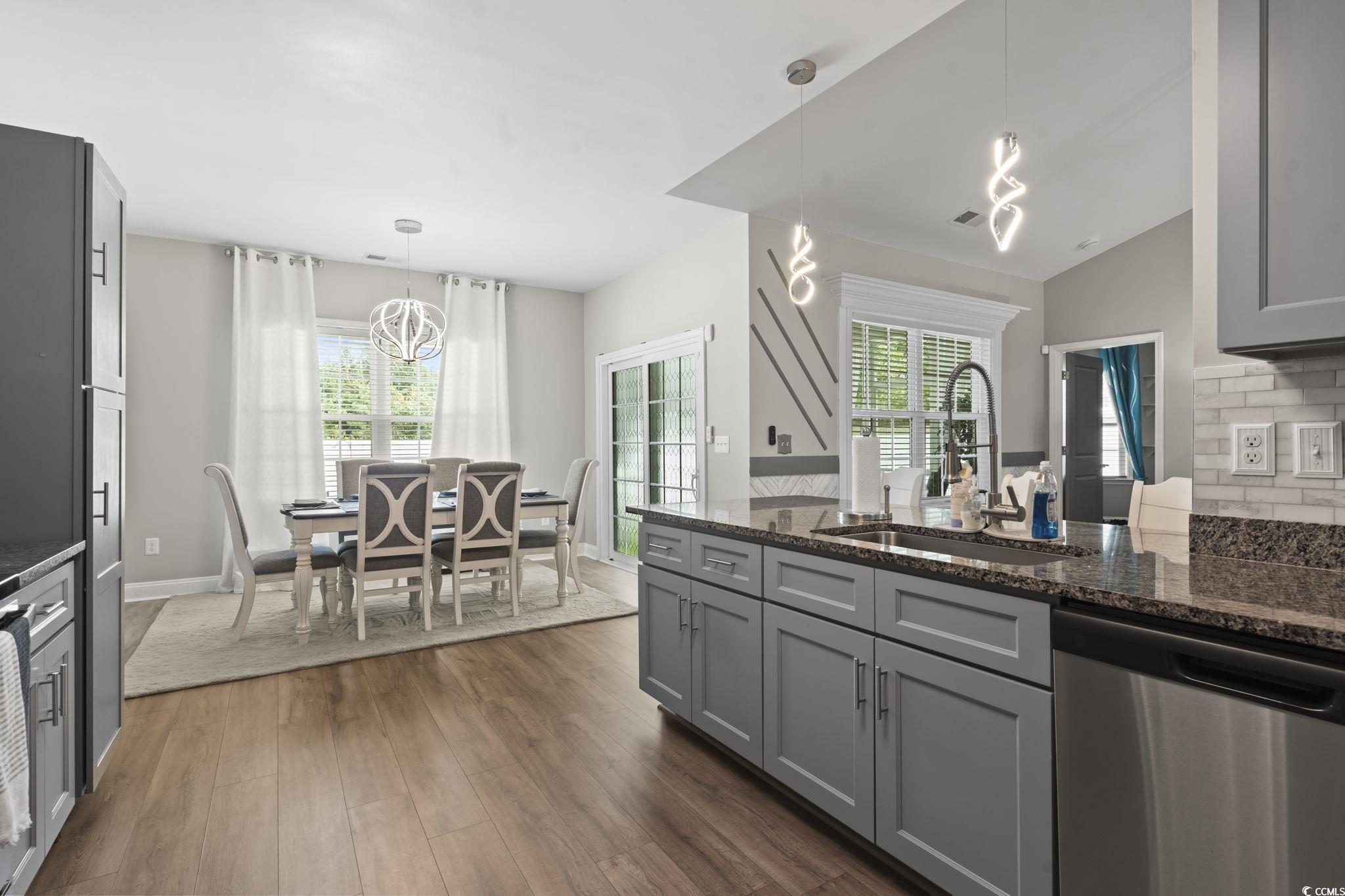 Welcome to 804 Twickenham Loop – a meticulously maintained and extensively upgraded single-level residence located in the highly desirable White Hall community of Longs, SC. Built by Bridges Custom Homes, this home features the popular Madalyn model, offering a thoughtful split-bedroom floor plan designed for both comfort and style. This stunning 3-bedroom, 2-bathroom residence blends comfort, style, and functionality, perfect for those seeking peaceful, low-maintenance living just minutes from the Grand Strand. From the moment you arrive, the attention to detail is clear. The beautifully upgraded landscaping and custom-tiled front patio with ceiling fan create an inviting first impression. Step inside to a bright foyer with a retractable light/fan fixture, setting the stage for the many thoughtful upgrades throughout—including freshly repainted doors that highlight the home’s crisp, well-cared-for aesthetic. The expansive living area features soaring vaulted ceilings, an oversized modern ceiling fan, and a cozy electric fireplace (does not convey but selling). The open-concept chef’s kitchen boasts stainless steel appliances, soft-close cabinetry, a stylish tile backsplash, and updated lighting—flowing seamlessly into the dining area for easy entertaining. The primary suite is a true retreat with a tray ceiling, sitting area, and elegant ceiling fan. Its spa-like en-suite bath includes a crystal chandelier, updated mirrors, extra storage, a walk-in shower, and a large walk-in closet. Two additional bedrooms, each with ceiling fans, share an upgraded full bath with a new vanity and mirror. Please note two of the guest rooms are VIRTUALLY staged. Enjoy the outdoors year-round from the fully enclosed screened-in patio with tiled flooring and dual retractable light/fan fixtures. Beyond, the spacious fenced backyard includes an open-air tiled patio—perfect for pets, gardening, or gatherings. Even the 2-car garage has been upgraded with custom woodwork and overhead storage. Additional premium features include: -Quarterly pest control service paid through May 2026 -Extra insulation, gutters, and sprinkler system -LG washer, dryer, and refrigerator with Wi-Fi connectivity via LG app -2 Carbon Monoxide detectors and 5 smoke detectors Located just off Highway 90 with easy access to SC-22 and SC-31, White Hall offers tranquility while keeping you close to everything—North Myrtle Beach, award-winning golf, River Island Adventures, and the renowned Bistro 90 across the street. Shopping, dining, and entertainment are all just a short drive away. Move-in ready and loaded with upgrades, this gem won’t last long. Owners are relocating due to a job transfer. The owner is selling select furniture from Ashley Furniture, fireplace, TV in family room, and a high-tech security system - inquiry with your agent!!! Don’t miss this opportunity—schedule your private showing today!