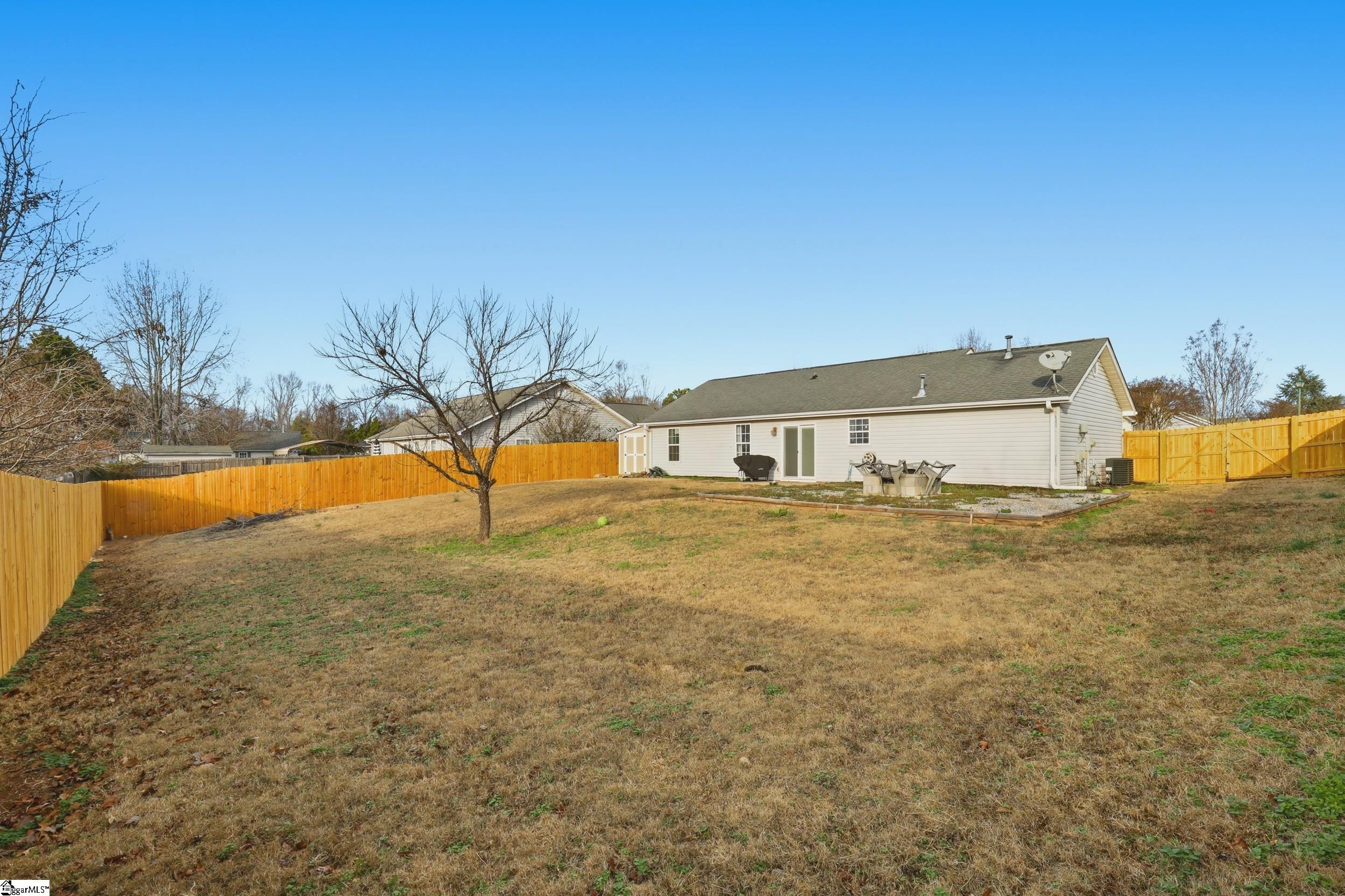 Welcome to your new home! This fantastic 3-bedroom, 2-bath ranch is nestled in the charming town of Fountain Inn. As you approach, a delightful rocking chair front porch welcomes you, leading you through the front door into a spacious great room adorned with soaring ceilings, exquisite trim, and a striking fireplace that serves as a captivating focal point. You'll love the expansive open kitchen, featuring beautiful cabinetry, generous quartz countertops, a large kitchen island, and elegant ceramic tile flooring. The kitchen seamlessly connects to the dining room and family room, creating an ideal space for family gatherings and entertaining. The dining room boasts brand new doors that open up to the patio and a vast, newly fenced backyard, complete with a storage shed for all your lawn and garden tools. The primary bedroom offers a full bath with a tub/shower combination and a walk-in closet. This home is brimming with design features that you simply must see, including custom molding, accent walls, new countertops, and a stylish backsplash, among many others! Additionally, the home is equipped with a new HVAC system and may qualify for USDA 100% financing.