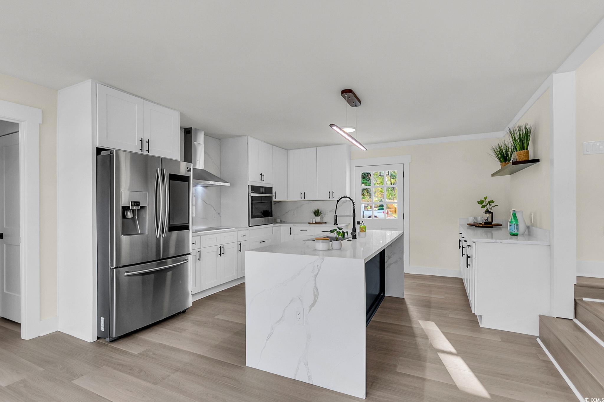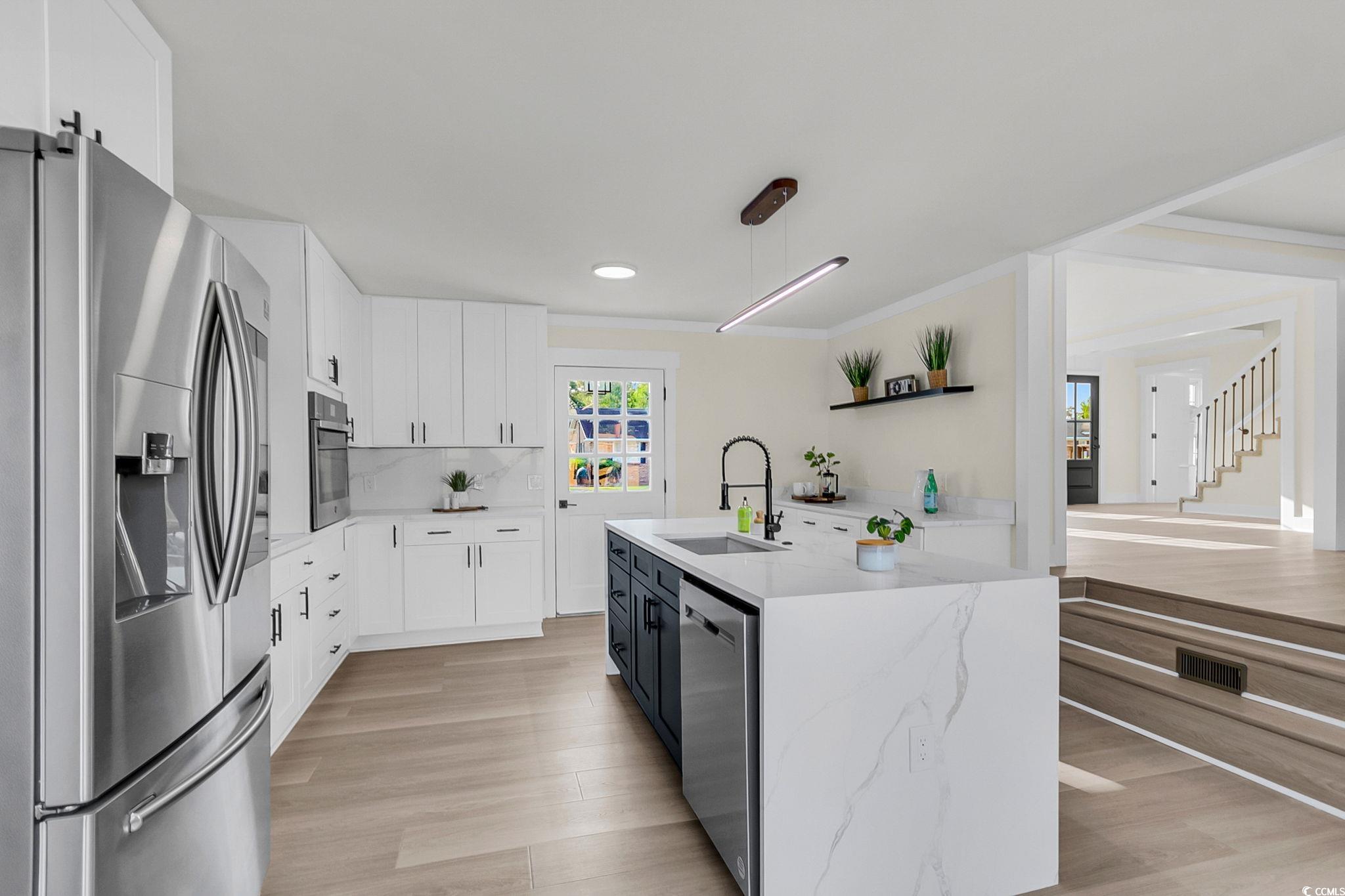 Welcome to 805 Horne Street—your grand Southern brick showpiece in the heart of Saint George! Proudly situated on a .63-acre corner lot, this 4-bedroom, 4-bath masterpiece with a huge bonus room has been completely reimagined from top to bottom, blending timeless Lowcountry character with the kind of modern luxury typically reserved for custom builds. From the moment you arrive, the stately brick exterior, manicured landscaping, and brand-new roof system set the tone for the elegance that continues inside. Step through the grand foyer, where sunlight dances across gleaming new floors and fresh designer finishes. A formal dining room offers the perfect setting for gatherings, while the expansive living room is anchored by a cozy fireplace and designed for both everyday living and entertaining. This home is exceptionally rare in that it offers two primary suites: the main-level suite opens directly to the backyard oasis for a true resort feel, while the upstairs suite provides its own private retreat. Each has been meticulously renovated with spa-inspired en-suite baths. Two additional bedrooms and a generously sized bonus room add even more flexibility for guests, family, or a home office. At the heart of the home, the chef's kitchen is a showstopper boasting quartz countertops, custom cabinetry, premium stainless-steel appliances, and stylish fixtures. Every major system has been thoughtfully upgraded, providing both comfort and efficiency. The backyard, however, is what truly sets this property apart. Designed as a private resort, it features a sparkling inground pool with a brand-new liner, pump, and sand filter system. A massive deck stretches the full length of the home, offering endless possibilities for outdoor dining, entertaining, or simply relaxing in the sun. A brand-new privacy fence ensures seclusion; the expansive carport provides abundant parking and storage options. One of the garages has been converted into a versatile room/workshop. However, if the new owner prefers, it can be easily restored back to a functional garage with its classic Southern brick presence, dual primary suite, oversized bonus room, and a backyard built for resort-style living, 805 Horne Street is more than a home; it's a lifestyle. Perfectly positioned near schools, shopping, and conveniences, this Saint George retreat is unforgettable.