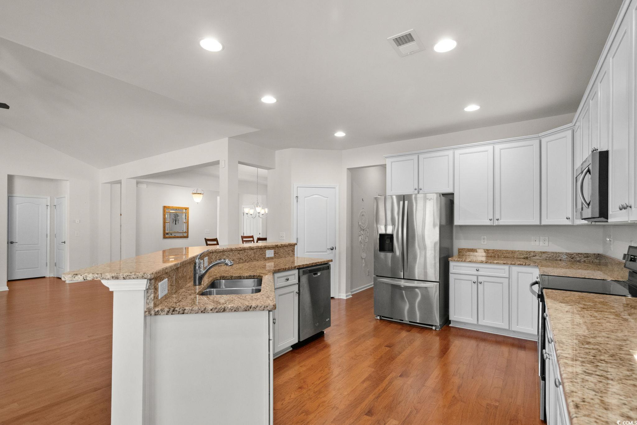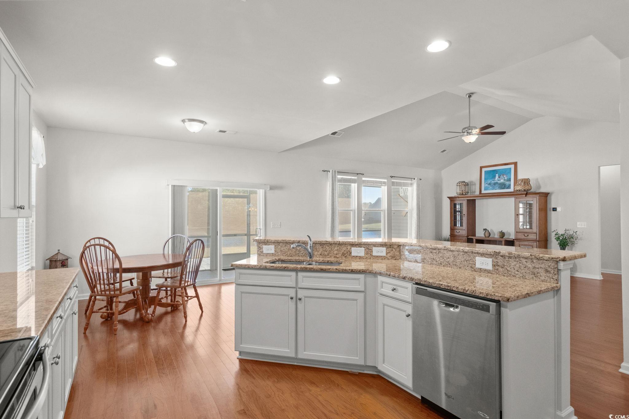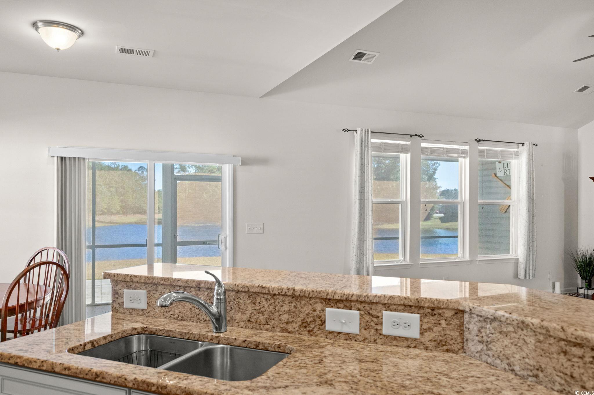 Welcome to this spacious 3-bedroom, 2.5-bathroom lake-view home located in the highly desirable Lafayette Park community of Little River. This charming property features attractive stone masonry accents on the front exterior and an irrigation system for easy lawn maintenance. Inside, you'll find a bright and open living area with cathedral ceilings, a formal dining room with elegant tray ceilings, and a well-appointed kitchen complete with stainless steel appliances and granite countertops. Enjoy peaceful lake views from the kitchen, living room, the large bay window in the master bedroom, and the large screened porch overlooking the water, your own private retreat. The primary suite offers tray ceilings, generous space, and serene water views, while the 2-car garage includes a convenient utility sink. Lafayette Park provides wonderful community amenities including a clubhouse, tennis and pickleball courts, and a large pool, all with a low HOA. Located just minutes from the Little River waterfront, you?ll have easy access to fantastic dining and entertainment while still being tucked away in a quiet neighborhood away from the lively tourist traffic. This lake-view gem is a must-see!
