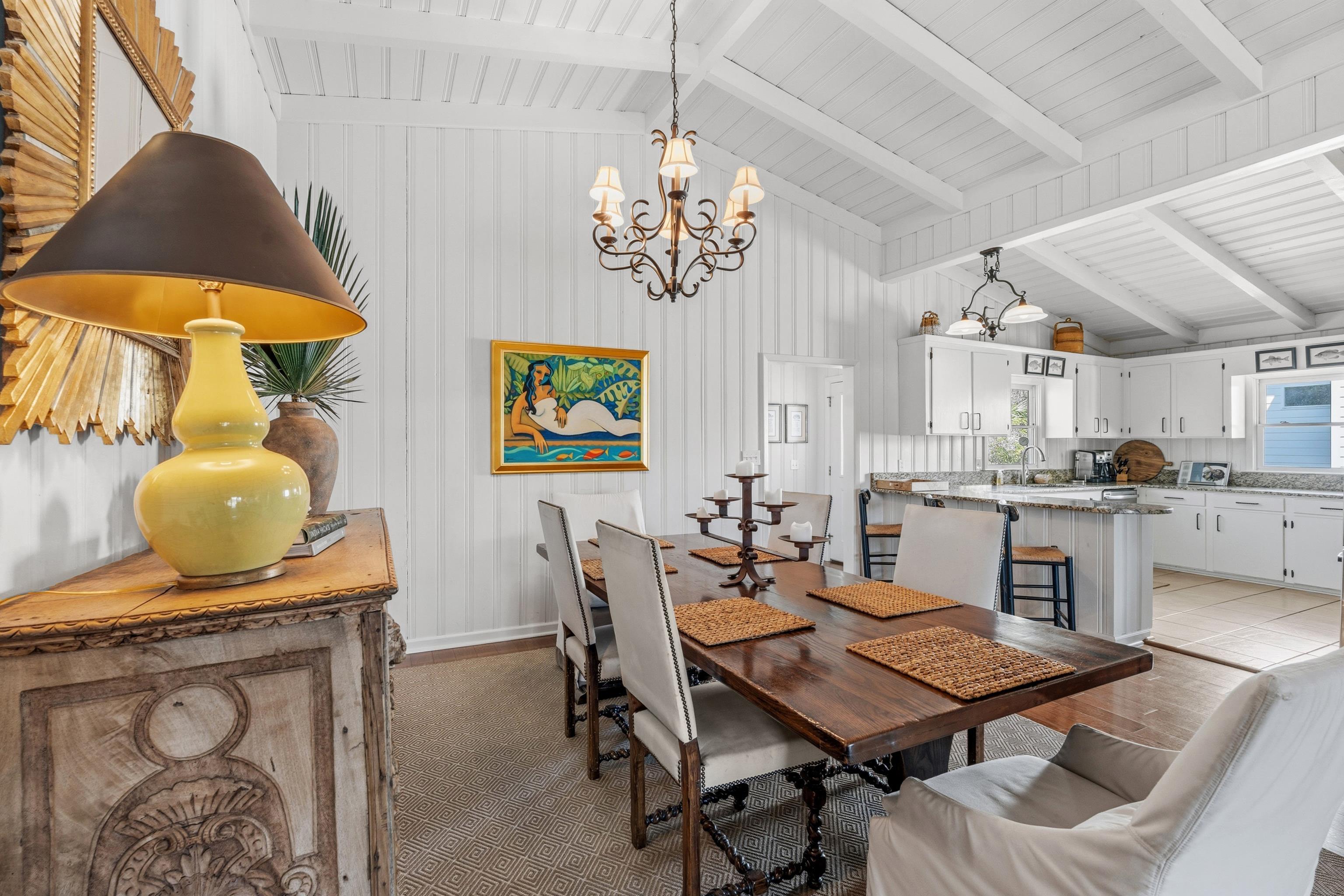 Experience the quintessential North Litchfield lifestyle at this premier second-row coastal retreat. Nestled in this neighborhood, beachside community, 805 Parker sits just an approximate 90-second stroll from the pristine sands of the Atlantic Ocean. This 5-bedroom, 4-bathroom residence perfectly balances classic beach house nostalgia with modern comforts. The heart of the home is located on the elevated first floor, featuring an open-concept living and dining area bathed in natural light. Vaulted, beam ceilings create an airy, coastal feel, while the kitchen—complete with a gas range and breakfast bar—is ready for large family gatherings. The primary bedroom is thoughtfully tucked away on the right side of the home. A discreet pocket door creates an intentional transition between the main living areas and the bedroom, offering an extra layer of privacy before entering your personal retreat and en-suite bath. Opposite the primary bedroom, three additional bedrooms anchor the main level. Each room has easy access to one of the shared full baths, ensuring that guests or family members enjoy the same level of comfort found throughout the rest of the home. Spanning the front of the home, the screened-in porch is a defining space for those who love the coastal climate. Positioned toward the Atlantic, this shaded retreat is the perfect spot to unwind and listen to the waves, offering a private and breezy atmosphere that truly feels like an extension of the home. Rounding out the bedrooms and baths is a private guest suite on the ground floor. With a dedicated exterior entrance, this fifth bedroom and fourth bath offer a flexible layout for visitors or a home office away from the main house activities. Below, the home features covered parking and a large storage room for beach gear. A dedicated laundry space and a private hot/cold outdoor shower are also located here for rinsing off after the beach. The property itself offers a generous space for parking and future additions. The current footprint can accommodate multiple vehicles, boat trailers, and golf carts. In the backyard, there is ample room to install a private pool. The size of the lot ensures flexibility for additional outdoor improvements. Beyond the sand, North Litchfield is celebrated for its rare blend of quiet residential charm and effortless access to the best of the Hammock Coast. Active lifestyles will thrive here with the Waccamaw Neck Bikeway accessible right from your front door, while the natural beauty of nearby state parks and world-renowned botanical gardens are just a short drive away. For daily needs, you are perfectly positioned near high-end grocery stores, boutique shopping, and the historic waterfront dining of Murrells Inlet. Perhaps the greatest draw for the sporting enthusiast is the home’s proximity to a premier collection of championship golf courses. As a resident, you are minutes away from prestigious, award-winning fairways, ranging from historic plantation-style tracks to modern masterpieces designed by the game's greatest legends. Whether you are seeking a rental home or a private family legacy home, 805 Parker offers a gateway to a lifestyle where world-class recreation and coastal serenity meet. Not all bedrooms are conforming; contact agent for full bedroom details.