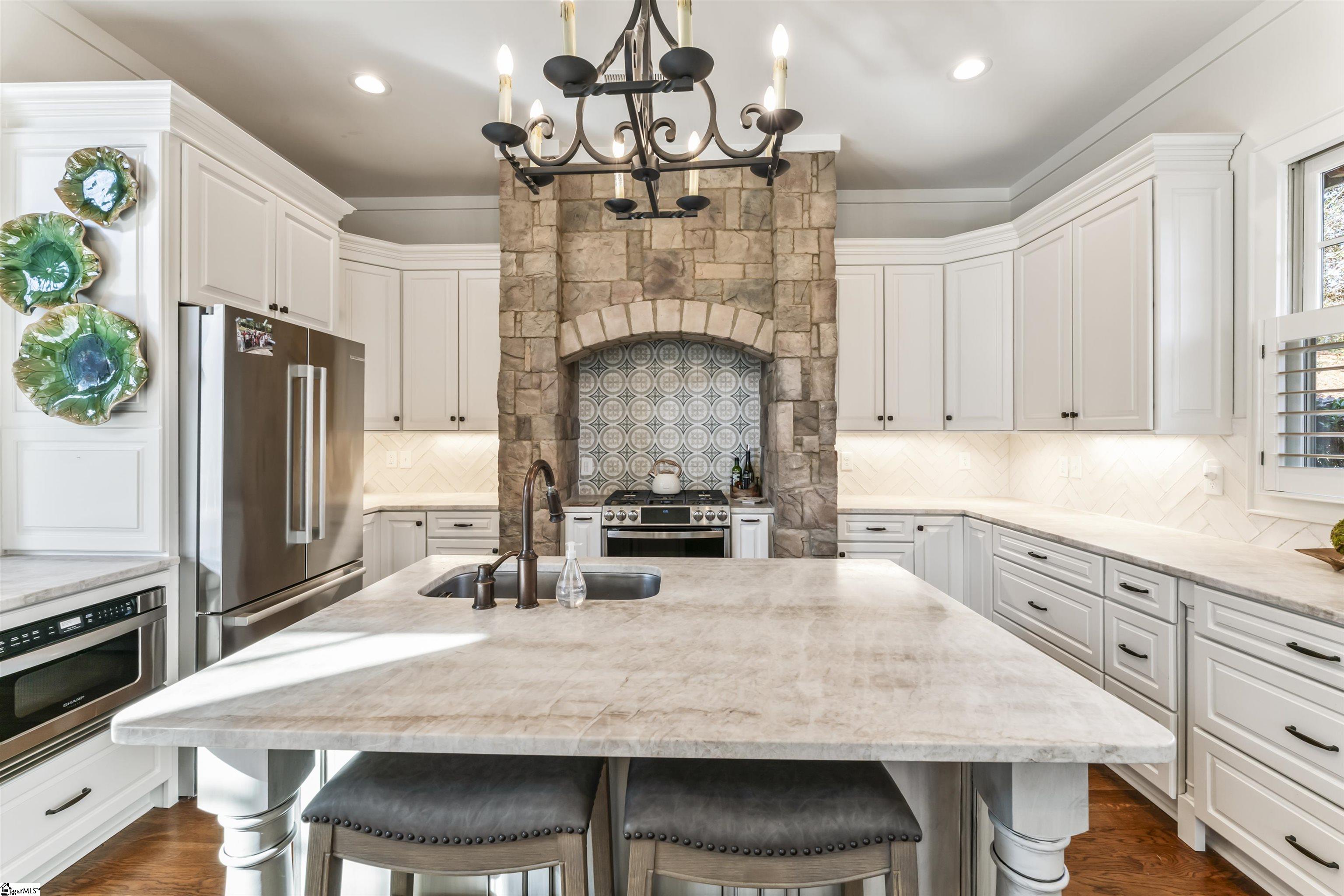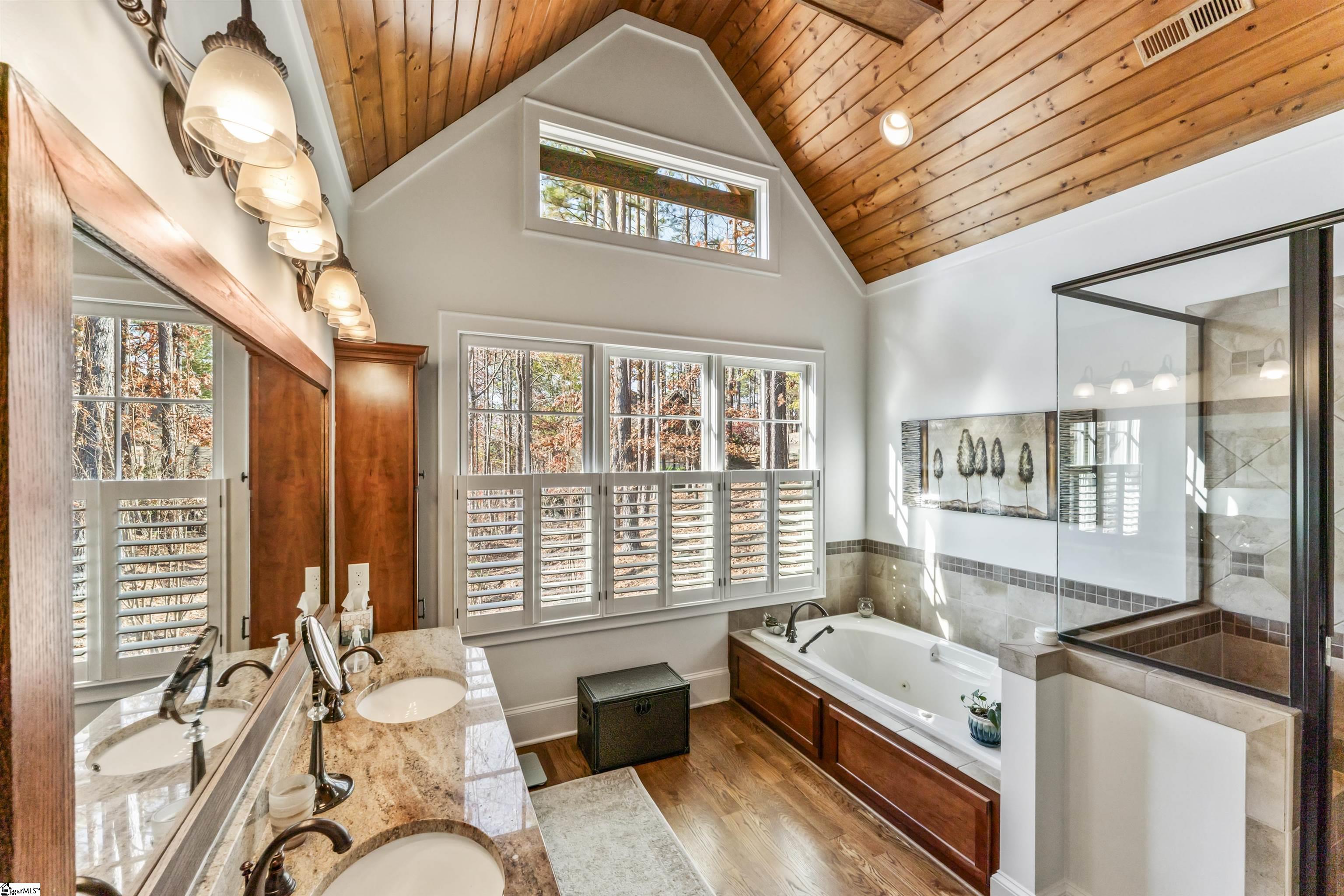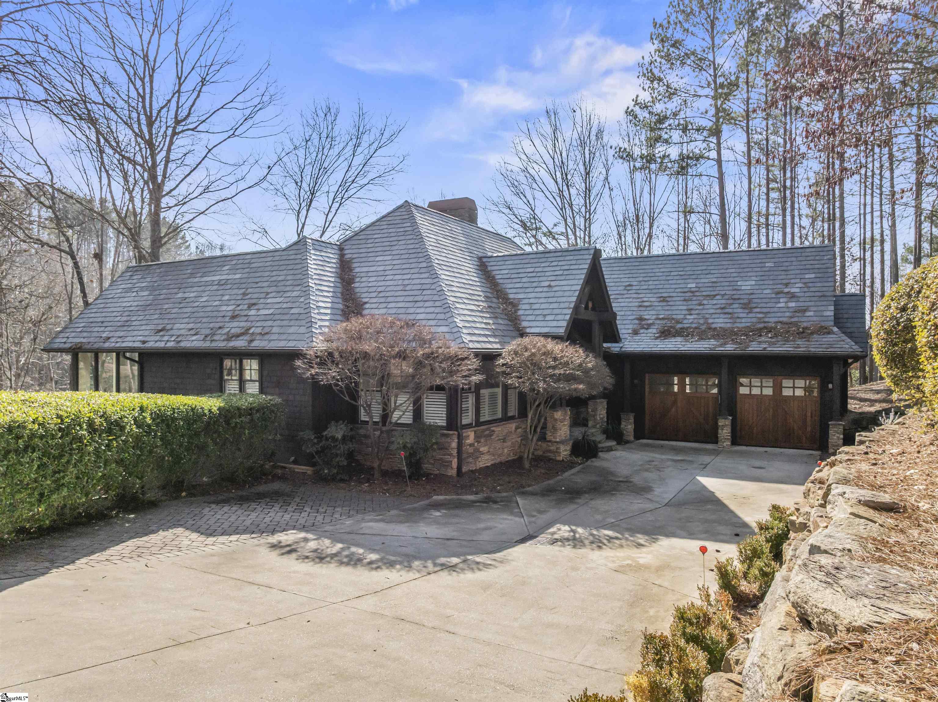 Perched on 1.62 acres in the Old Edwards Reserve at Lake Keowee, 805 Top Ridge Drive provides privacy and tranquility in a peaceful mountain setting. Crafted by Golden Corner Construction, this home combines rustic charm with recent modern upgrades. The vaulted great room features a stacked stone wood-burning fireplace, while a wall of windows bathes the space in natural light. Hardwood floors extend throughout the main living areas, enhancing the home’s warmth. The recently updated kitchen has been remodeled with modern quartzite countertops and new appliances. A gas cooktop framed with hand-selected stone showcases rich textures and tones that complement the kitchen’s bright, sleek design, while a custom backsplash and subtle lighting further elevate the space. Just off the kitchen, a cozy sitting room surrounded by windows and another fireplace, offers a serene spot to enjoy morning coffee or tea while taking in the surrounding year-round natural beauty of this wooded setting. Access to the deck from both the great room and kitchen ensures convenience for grilling and entertaining. The home also features a whole-house generator. The primary bedroom suite features a vaulted shiplap ceiling accented with wood beams. The primary bathroom showcases tongue-and-groove detailing, a walk-in shower, soaking tub, and dual vanities. Clerestory windows in both the bedroom and bathroom fill the spaces with abundant natural light. The lower level entertaining space has a gas log fireplace and a well-appointed wet bar, including an icemaker, microwave, and a gated, wood-lined wine cellar. Guests can stay comfortably in the spacious lower-level bedroom with an en-suite, while an additional bedroom and office or bunkroom share a Jack and Jill bathroom. Step out onto the spacious covered lower-level deck, offering ample space for outdoor lounging while enjoying the crisp mountain air. Enjoy a deeper connection to the outdoors and refined club living with a membership to Old Edwards Reserve at Lake Keowee. This membership provides access to a Jack Nicklaus Signature Golf Course, a clubhouse with multiple dining options, a fitness and wellness center, hiking trails, tennis and pickleball courts, a lakeside pool, a full-service marina with boat slips and rentals, and member-exclusive events and activities throughout the year.