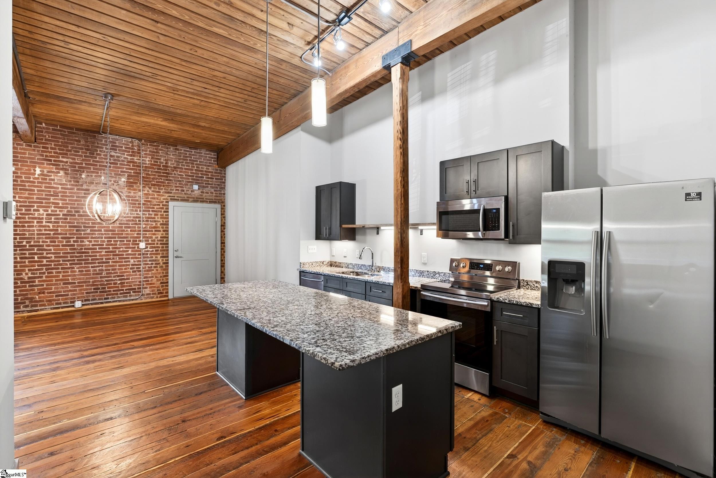 Experience elevated downtown living at Elements West, where historic charm meets modern comfort. This second-level, three-bedroom, two-bath residence features a unique blend of character and style, with original hardwood floors, exposed brick, soaring ceilings, and beautiful wood beams that create an inviting loft-inspired atmosphere. The thoughtfully designed floor plan offers versatility with three bedrooms. Perfect for a primary suite, guest space, or home office. Abundant natural light fills the living areas, highlighting the rich architectural details and warm finishes throughout. Modern updates provide everyday ease while preserving the integrity of the building’s historic design. Ideally located just minutes from Downtown Greenville, you’ll enjoy quick access to top dining, shopping, parks, and entertainment, along with nearby Prisma Health and Bon Secours St. Francis. Residents of Elements West enjoy a secure, gated community with exceptional amenities, including a swimming pool, fitness center, grilling area, covered porch, Gathering Room, and dog walk. The monthly HOA includes water, trash, internet, and exterior maintenance allowing for easy, low-maintenance living. Gated parking is included, and a recently installed roof adds peace of mind. Don’t miss this opportunity to own a distinctive, move-in-ready condo in one of Greenville’s most convenient locations. Schedule your showing today.**Please note that the 3rd bedroom doesn't have a exterior window. **Listing may contain virtually staged photos