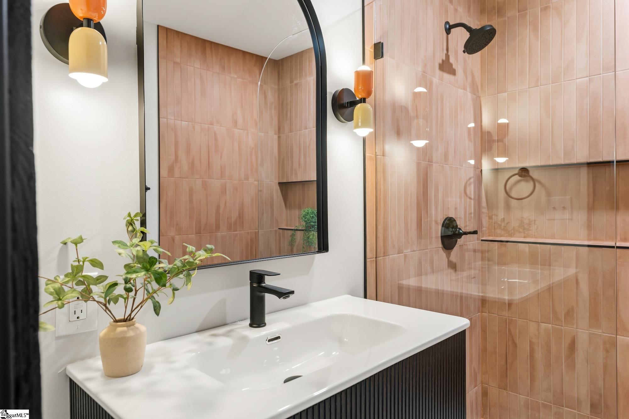 This one-of-a-kind home is anything but ordinary! Thoughtfully reimagined with curated design, timeless character, and modern upgrades, this charming craftsman is also located in one of Greenville’s most convenient and fast-growing areas. Perfectly positioned with sidewalks right out front, you can truly walk to everything Cherrydale has to offer—shopping, dining, and everyday conveniences just minutes from your doorstep. The Swamp Rabbit Trail is just over a mile away, making it an easy, fully side walked bike ride from your front door. You’re also just moments from downtown, Furman University, and a quick drive to Travelers Rest. From the moment you arrive, the charm is undeniable. Newly added custom front porch columns set the tone, while fresh exterior paint gives a crisp, elevated first impression. Inside, tall ceilings, custom arched doorways, and a cohesive designer color palette immediately draw you in, creating a seamless, magazine-worthy feel throughout. Original picture rail molding has been thoughtfully preserved and refinished—a rare and creative feature that allows for effortless art display while subtly elevating the space. Every detail has been intentionally designed. The kitchen is a true centerpiece, featuring custom cabinetry, matte black quartz countertops, and high-end Café appliances—including a double oven range with air fry capability, European convection, built-in temperature probe, and WiFi connectivity for modern convenience. A one-of-a-kind built-in breakfast nook with bench seating and hidden storage adds both function and charm, all tied together by a stunning wallpapered ceiling. The living spaces blend historic character with refined updates, including dark walls and a restored mantel brought back to its natural beauty. An original coal fireplace adds a great touch of character and serves as a unique decorative focal point, further enhancing the home’s charm. Designer lighting throughout adds warmth and a high-end finish in every room. The bathroom continues the elevated feel with modern terrazzo tilework, statement lighting, and a large built-in shower niche for both storage and visual impact. The curbless walk-in shower is both sleek and functional, featuring a linear drain for a seamless look—allowing the tile to flow uninterrupted and creating a smooth, spa-like transition throughout the space. Additional upgrades include new windows, restored vintage front & back doors, and refinished original hardwood flooring. Outside, the fenced backyard provides an ideal setting for both pets and entertaining. Don’t miss the giant shed for extra storage, too! This is not your typical renovation. This is a home for the buyer who values craftsmanship, design, and individuality. There is simply nothing else like it on the market.
