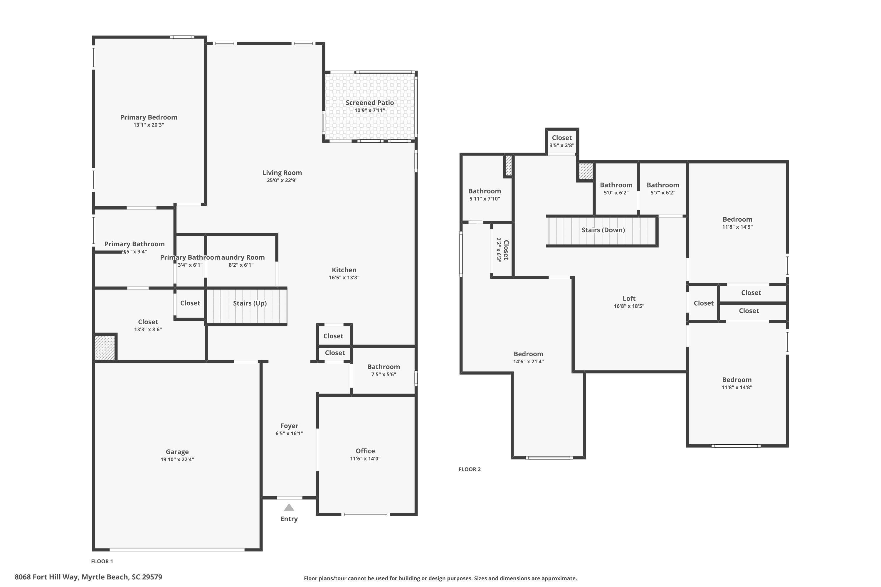 8068 Fort Hill Way is a spacious 5 bedroom, 3.5 bath home in The Parks of Carolina Forest. One bedroom is currently used as an office. This home is beautifully maintained with a white vinyl privacy fenced yard and screen room located off the back. Inside is an easy, open concept floor plan that is spacious for all family activities and entertaining. The kitchen is equipped with a gas range, a pantry, beautiful quartz countertops, an oversized island, and ample beautiful white cabinetry with gas range and modern stainless appliances. The 12x14 non conforming bedroom is being used as an office and is on the main level. The primary bedroom is also located on the main level and has a large walk-in closet, walk-in shower and also separate tub and dual vanities. Upstairs the home has three bedrooms and two full bathrooms with a loft common area approximately 14 x 14. Stepping out from the screened porch, you’ll find a spacious, privacy-fenced backyard complete with a patio—perfect for grilling, relaxing, and spending quality time with family. Living in Carolina Forest also means enjoying top-rated schools, outstanding community amenities, and an unbeatable location. Schedule your showing today!