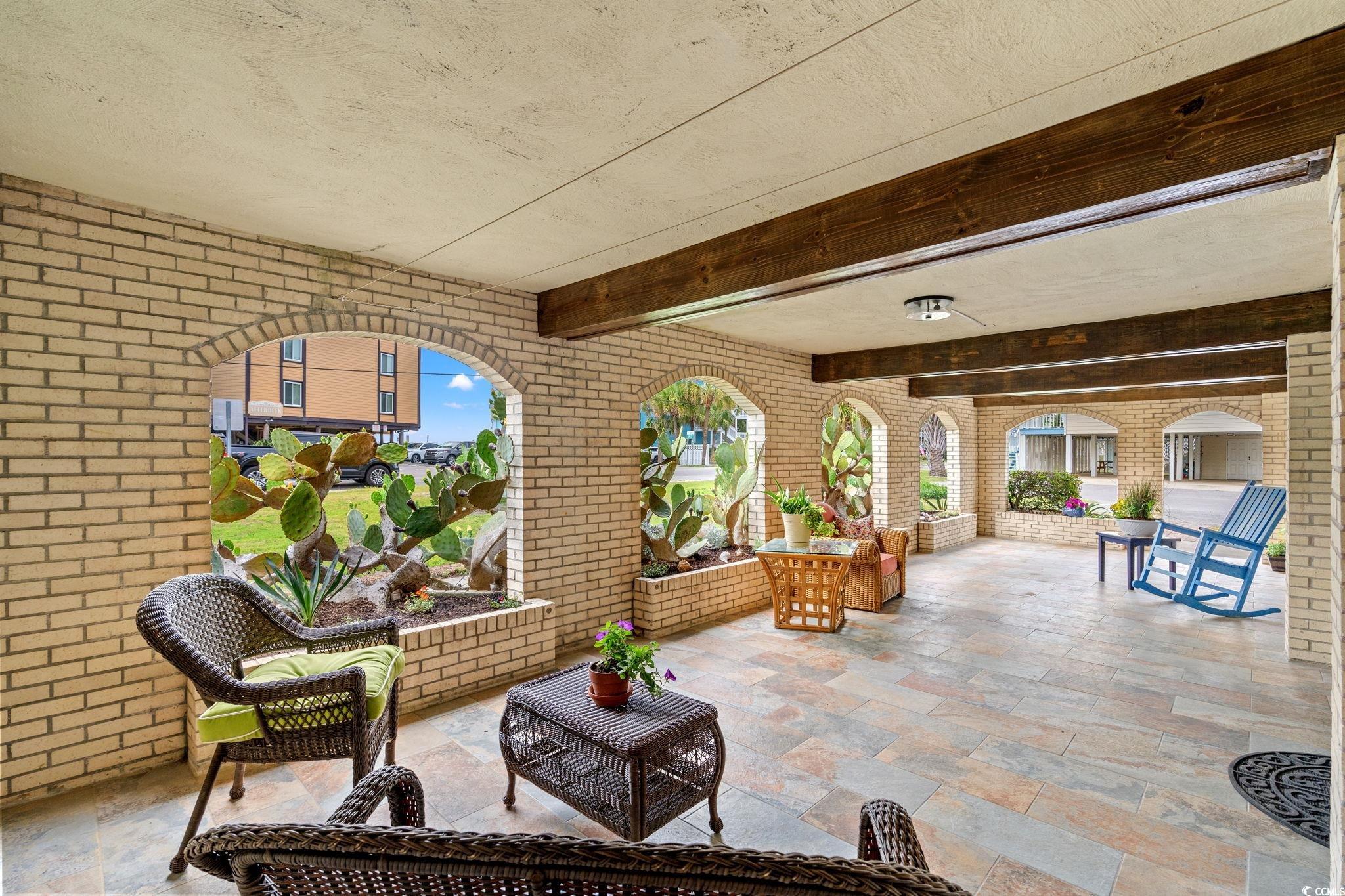 A Once-in-a-Lifetime Opportunity! Where timeless elegance meets coastal glamour— Iconic Mediterranean Brick Estate, a celebrated landmark with views of the Atlantic Ocean in the heart of Garden City Beach, SC. Prominently positioned on a rare oversized corner lot directly across from a public beach access, this architectural masterpiece features commanding second-row ocean views and boasts the largest private outdoor pool in Garden City—a stunning 20x40 resort-style retreat ideal for refined entertaining. Rich in history and preserved with care, this Southwestern Mediterranean-style estate blends original craftsmanship with modern updates across 6 bedrooms, 5 baths, 3 living areas, Stone Fireplace, 2 kitchens, 2 laundry rooms, Sunroom and expansive indoor/outdoor spaces. Two grand terraces on the upper level offer sweeping ocean vistas, while the lower level opens to a beautifully tiled, covered entertaining space—framed by lush landscaping, Ocean coastal breezes. 14 on-site parking spaces, NO HOA, and incredible flexibility, this one-of-a-kind property is perfectly suited as a Primary residence, Multi-generational retreat, or Investment opportunity for those envisioning a Boutique inn, Exclusive bed & breakfast, or private event venue. Originally admired since the 1950s, this estate remains a timeless icon reimagined for modern luxury living by the sea. Interior photos coming soon-Schedule your private tour today. Square footage is approximate and not guaranteed. Buyer is responsible for verification.