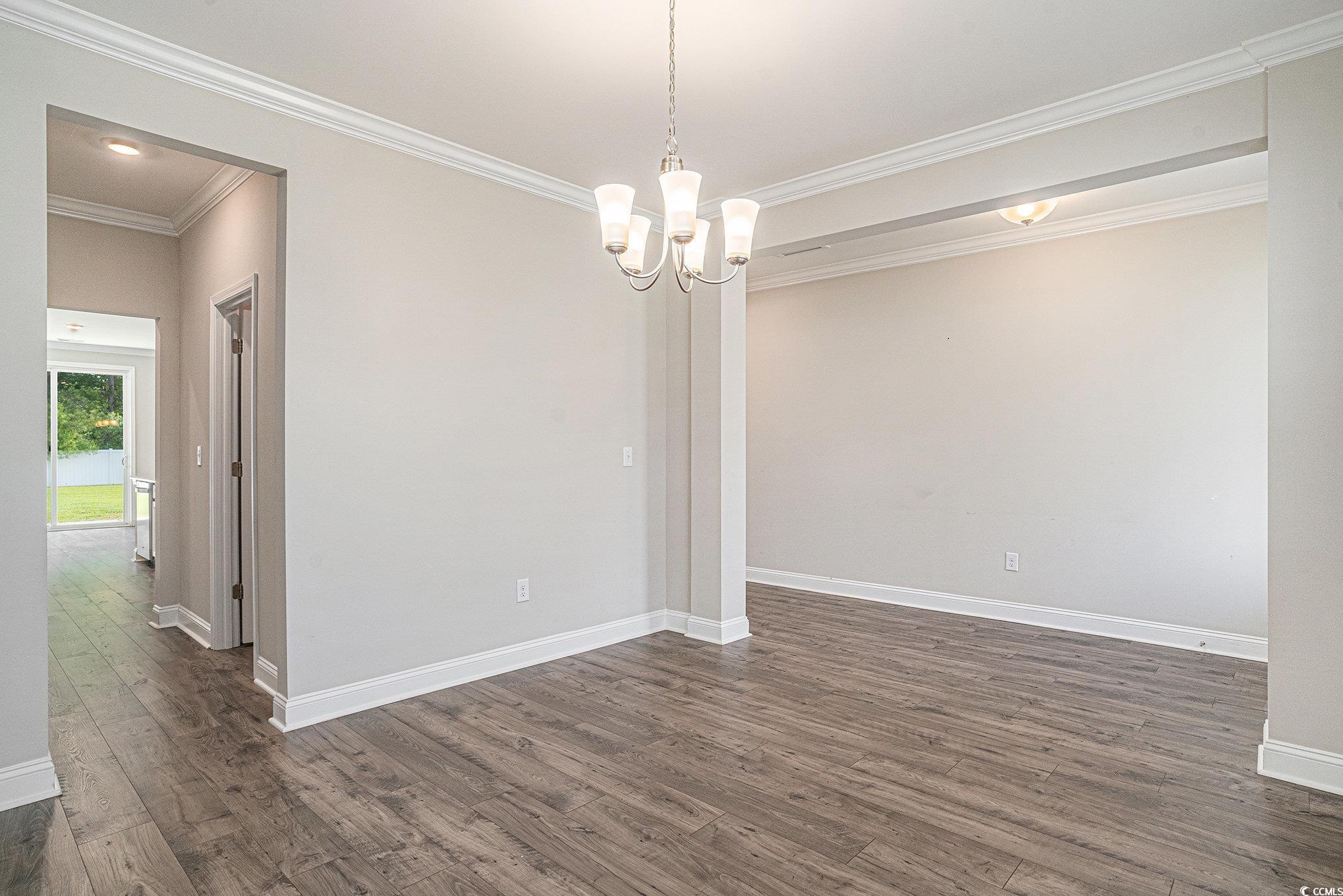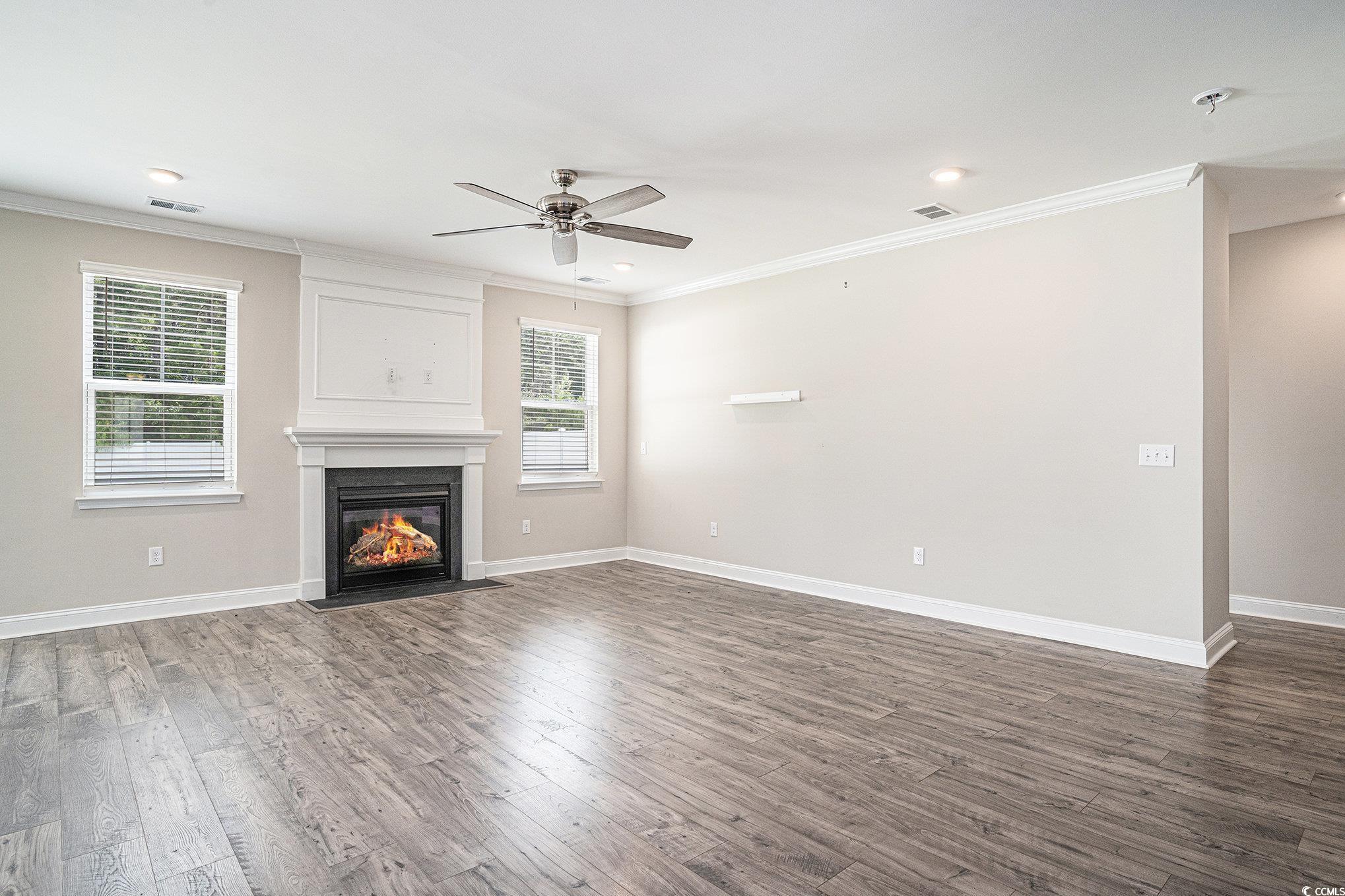 Welcome to this stunning 4-bedroom, 3-bathroom home located in the highly sought-after Parks of Carolina Forest. This beautifully maintained two-story residence boasts charming curb appeal with its inviting front porch, ideal for enjoying a morning coffee or relaxing in the evening. Step inside to find an open and airy floor plan filled with natural light and upgraded finishes throughout. The open-concept living room features abundant natural light, crown molding, and a cozy fireplace—perfect for relaxing or hosting guests. The home includes a dedicated formal dining room and a versatile flex space ideal for an office or den. The chef’s kitchen is a dream, showcasing granite countertops, a large center island with pendant lighting, stainless steel appliances, a gas cooktop, and a double oven—perfect for entertaining or everyday meals. Adjacent to the kitchen is a butler’s pantry with glass-front cabinetry, offering extra prep and storage space. Upstairs, the spacious primary suite is a true retreat with tray ceilings, a separate sitting area, walk-in closet, and a spa-like en-suite bathroom featuring dual vanities and a walk-in tiled shower. Additional bedrooms are generously sized and share access to a full bath, providing comfort and privacy for family or guests. Upstairs you will also enjoy a large loft area perfect for a secondary living space, office, workout space the choice is yours and the possibilities are numerous. Enjoy outdoor living in the fully fenced backyard with plenty of room for a future patio, garden, or play area. There is also a grill connection for gas for perfect for grilling enthusiasts. There is also a hot tub hook up on the back porch. This home features a brand new roof, solar panels add to the home’s efficiency, and the attached two-car garage provides convenience and extra storage. Nestled in a vibrant community with tree-lined streets, scenic walking trails, and resort-style amenities, including a large pool, lazy river, playground, fitness center, and clubhouse. The Parks is just minutes from top-rated schools, shopping, dining, and the beach. Don't miss the opportunity to make this exceptional home yours! Buyer is responsible for verification.