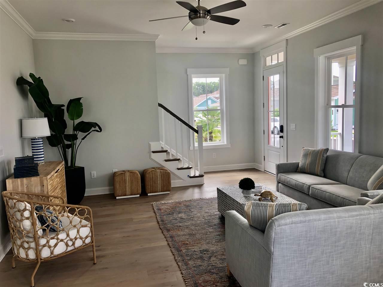 At 2,196 heated sqft, the two story Cooper home located on lot 47 will have a private backyard setting. It offers 3 bedrooms with a first level master suite, 3.5 bathrooms and a flex room. This Cooper home features beautiful engineered floors in all the common areas, premium kitchen cabinets, quartz countertops, tiled kitchen backsplash, and stainless steel appliances with a natural gas stove. The master suite is private and overlooks the back yard area and features a walk in closet, and zero entry large tiled shower. The one car garage comes with a golf cart bay as well encouraging ease for hitting local hot spots or the on site pool! Quality construction is a priority at Living Dunes. All homes built with 2x6 exterior walls, spray foam insulation, tank-less water heater, impact-resistant windows, GAF Timberline HDZ Layerlock shingles, custom Elmwood cabinetry certified by Environmental Stewardship Program, Smart home package features in ceiling speakers, keyless entry, Ecobee thermostat, remote view able security, irrigation, along with other apps! Living Dunes is a boutique community and sits less than 1/2 a mile from the beach where residents have gated parking and full access to the beautiful, resort like, amenities of the exclusive Grande Dunes Ocean Club. Living Dunes is walking distance to great restaurants and shopping. Enjoy the on-site amenities of miles of paved walking trails and sidewalks, large free-formed pool with zero entry and tanning shelf, clubhouse, outdoor event area and wood burning fireplaces and pockets of green space. Experience a higher standard of living today. Square footage is approximate and not guaranteed. Buyer is responsible for verification. The pictures are of a completed sold Cooper home showing the floor plan.