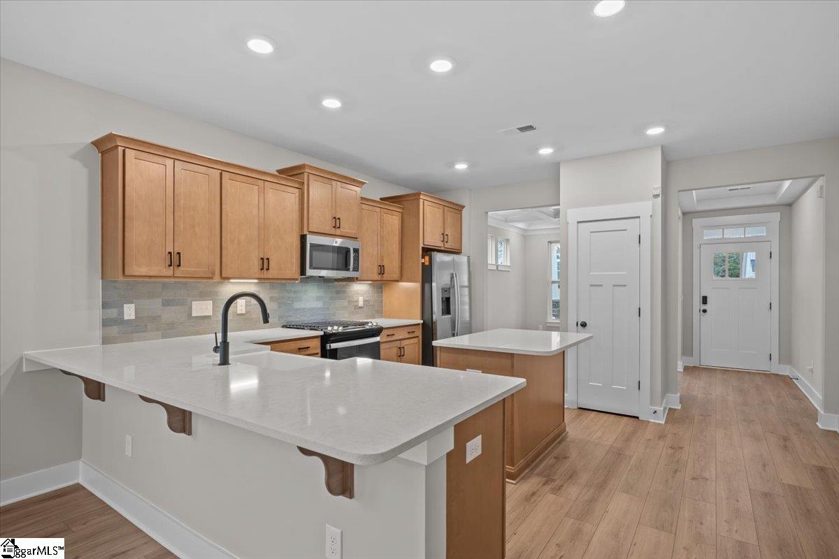 *Former Model Home for Sale* Welcome to Pleasant Falls! The only new homes in Spartanburg off of the Tyger River with James Hardie Siding. The Finley is a beautiful Craftsman style home with over 2100 square feet of living space and is ready for you to make your own. Entering the home from your covered front porch or 2 car garage you have a separate dining room with coffered ceilings that leads into your beautiful kitchen with light brown, Quartz countertops, center island and peninsula for additional prep space and seating, farmhouse sink, tiled backsplash, under cabinet lighting and stainless steel gas appliances including a refrigerator. The high ceilings and large windows in the living room allow the area to feel open and get tons of natural light. The living room leads to out to the covered back porch overlooking your backyard. The Primary Suite is situated the main level and features a large walk in closet, double sinks, and tiled shower with seat and glass door. The laundry room with washer/dryer included and the powder room complete the first floor. Up the Oak staircase are 3 additional bedrooms, each with a walk in closet, full bath with double sinks, and a great unfinished space perfect for extra storage! Smart home technology, energy-efficient design,and a dedicated local warranty team ensure long-term comfort and convenience. Nestled amidst natural beauty, Pleasant Falls offers easy access to the scenic Tyger River and tree-lined homesites, providing a serene and peaceful atmosphere. Benefit from the convenience of a prime location, with proximity to Spartanburg District 6 schools (including Dorman High School) and major transportation corridors. Home is being sold as is with the remaining portion of the structural warranty included. Call today to schedule your personal tour and make Pleasant Falls your new home!