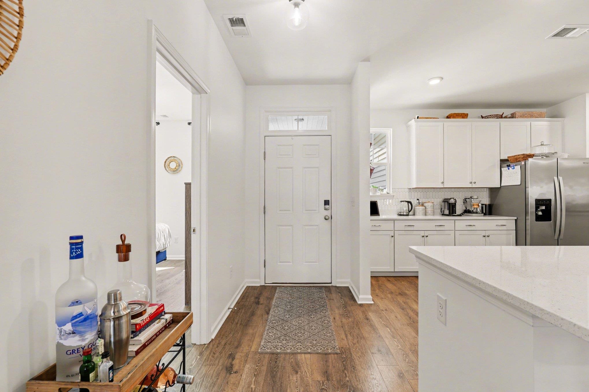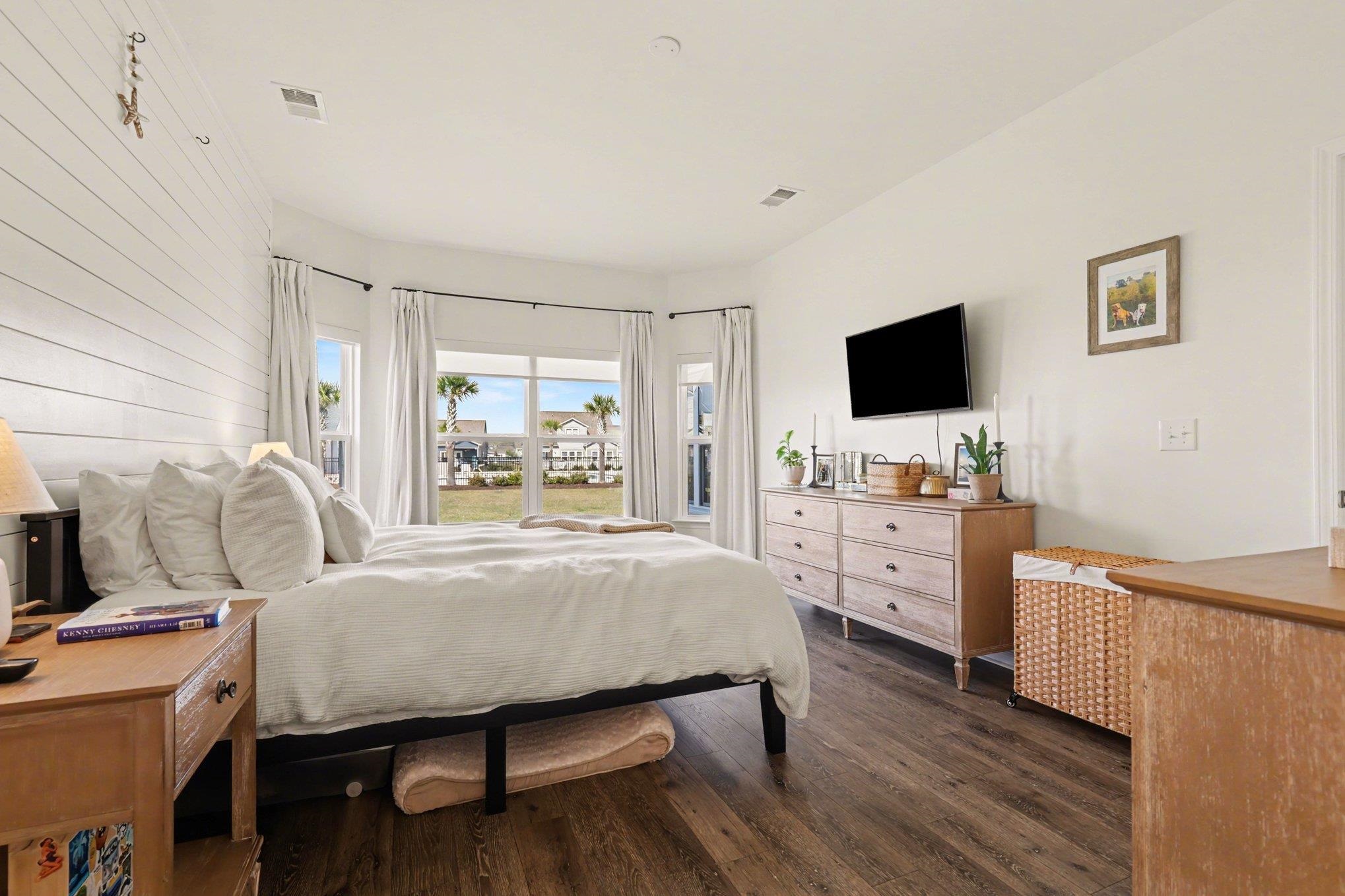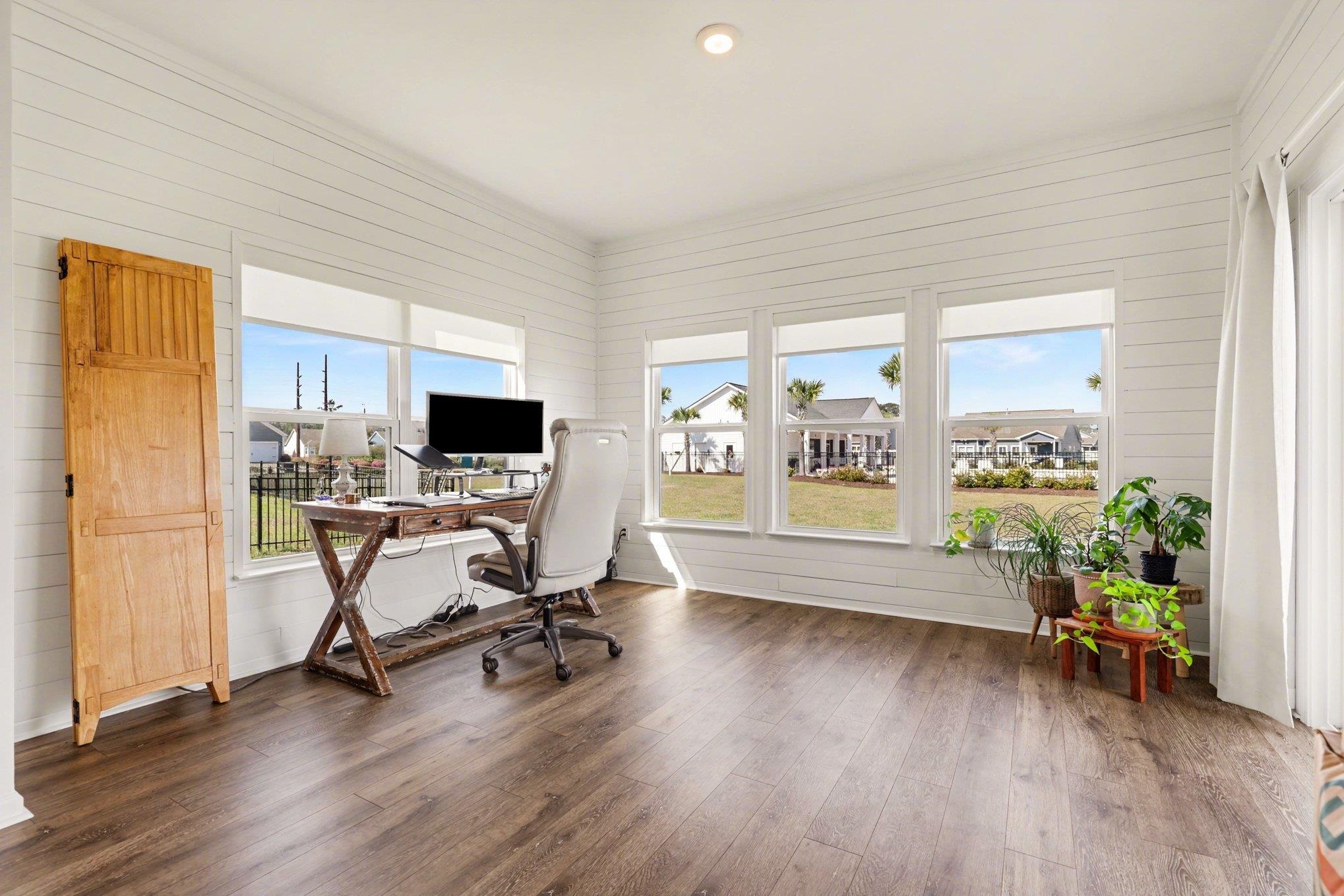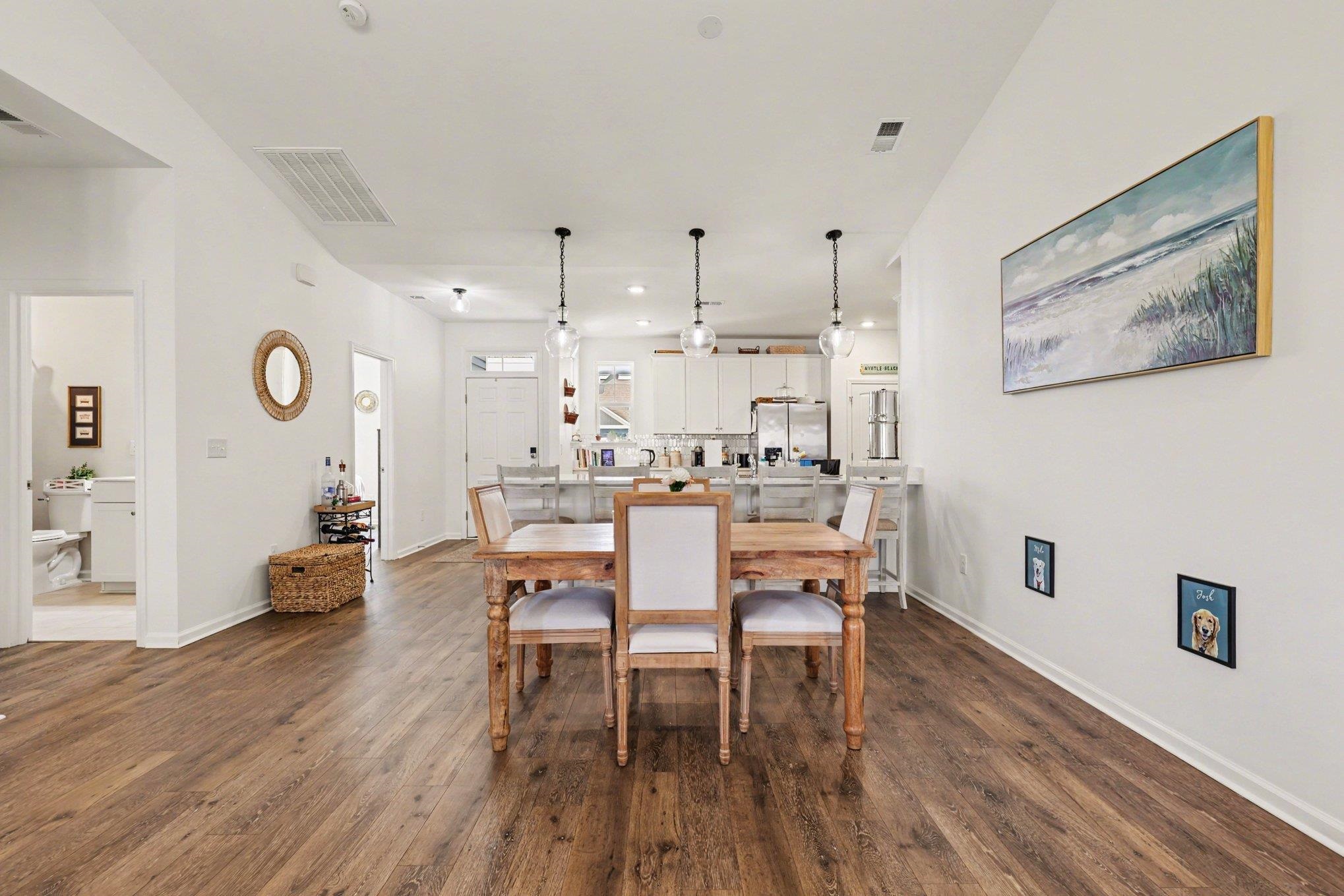 This beautiful 3-bedroom, 2-bath ranch-style home is located in the desirable Surfside Plantation community, offering a perfect blend of comfort, style, and convenience. The home features numerous upgrades throughout, including a tasteful tiled kitchen backsplash, shiplap accents in the Carolina room, owner's bedroom, and owner's bathroom, as well as a stylish board-and-batten accent wall in the front bedroom. The dining and great room area is highlighted by a vaulted ceiling, creating an open and inviting living space. Luxury vinyl plank flooring runs throughout the main living areas, while the bathrooms and laundry room feature tile flooring. The kitchen is equipped with stainless steel appliances and an extended quartz countertop, providing ample space for cooking and entertaining. The owner's suite offers a walk-in closet, a beautifully tiled walk-in shower, and a large double-sink vanity. At the rear of the home, the bright Carolina room opens to a covered patio featuring a privacy wall and illuminated posts, creating the perfect space for relaxing or entertaining guests. Ideally situated adjacent to the community pool and clubhouse and overlooking a peaceful pond, this home offers both tranquility and easy access to neighborhood amenities. Conveniently located just minutes from the BEACH shopping, dining, and Myrtle Beach International Airport, this home truly has it all. Don't miss your opportunity to own this charming home! Schedule your showing today