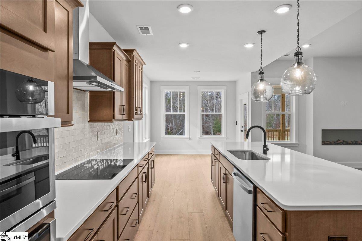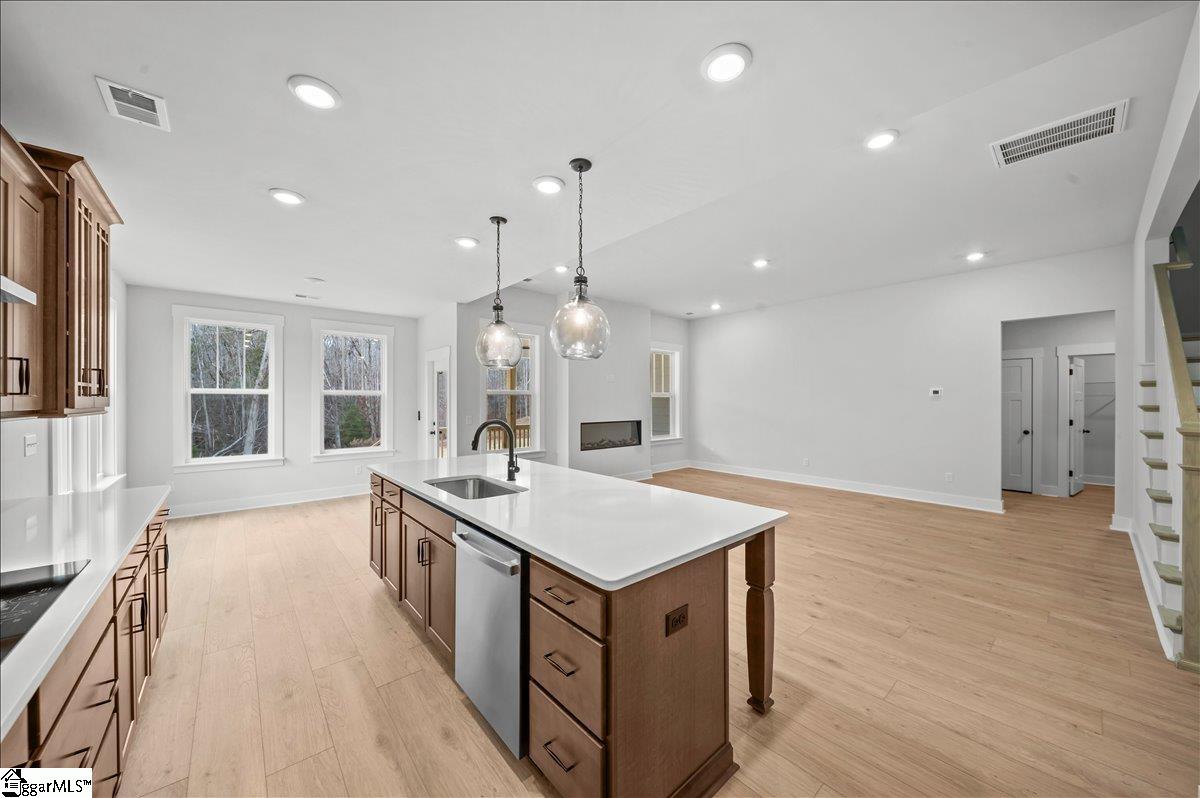 Welcome to Pinebrook! THE ONLY HOMES ON HALF ACRE PLUS HOMESITES IN WOODRUFF, SC WITH PRIME FEATURES AND BASEMENT OPTIONS. The Kendrick home is over 4000 square feet with a full finished basement and sits on 1/2 acre in a beautiful cul de sac setting. As you come into your entryway from your covered front porch, to the right is a dedicated study with french doors, perfect for a home office. To your left, there is a formal dining room that leads into your butlers pantry giving you that extra counter space and large walk in pantry. Entering into your open kitchen and great room, you will be amazed by the features of the kitchen including staggered light brown cabinetry, white Quartz countertops, tiled backsplash, large center island with sink, under cabinet lighting, and gourmet stainless steel appliances including an electric cooktop, double wall oven and range hood. The great room with tall windows and high ceilings give the room lots of natural light and also features an electric fireplace. The breakfast room leads out to your covered back porch and deck overlooking your large backyard.The Primary Suite is situated off the living room and ncludes trey ceilings, a spacious walk in closet, split vanities, and Roman tiled shower with dual showerheads, seat and frameless glass door. The main level is completed with the two car garage that leads into your mudroom and laundry area. Up the Oak staircase you have three additional bedrooms, two with en suite bathrooms, an additional hall bath and a large loft space. An additional Oak staircase on the main level leads to the full walk out basement which features a wet bar, bedroom with walk in closet and full bath along with a huge storage area. Smart home technology, energy-efficient design, and a dedicated local warranty team ensure long-term comfort and convenience. Premier living at Pinebrook, a captivating new home community centrally located between Spartanburg, SC and Woodruff, SC. Our thoughtfully designed single-family homes cater to diverse lifestyles with both main-level and second-level primary suites, offering flexibility and convenience. Experience the charm of classic architecture with our stunning craftsman-style exteriors featuring James Hardie ColorPlus Siding. Settled in a serene location, these estate homes sit on private half acre plus homesites. Offering select basement homesites and three car garages. Located near Three Pines Country Club, Interstate 85, and Interstate 26, Pinebrook offers the perfect blend of tranquility and accessibility. Pinebrook is a great opportunity in a premier location. Come by today for your personal tour and make Pinebrook your new home. See Sales Agent for additional pricing information.