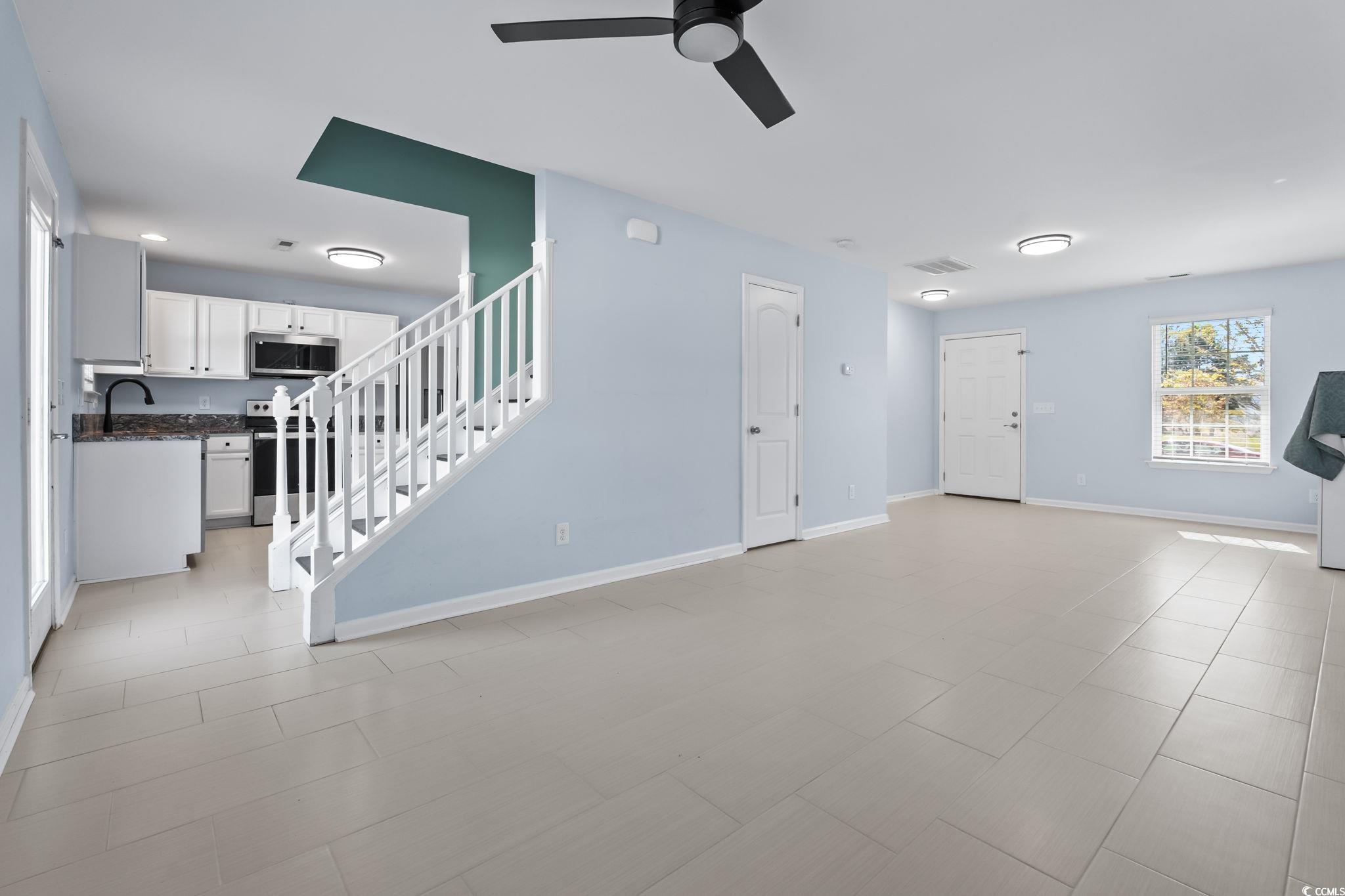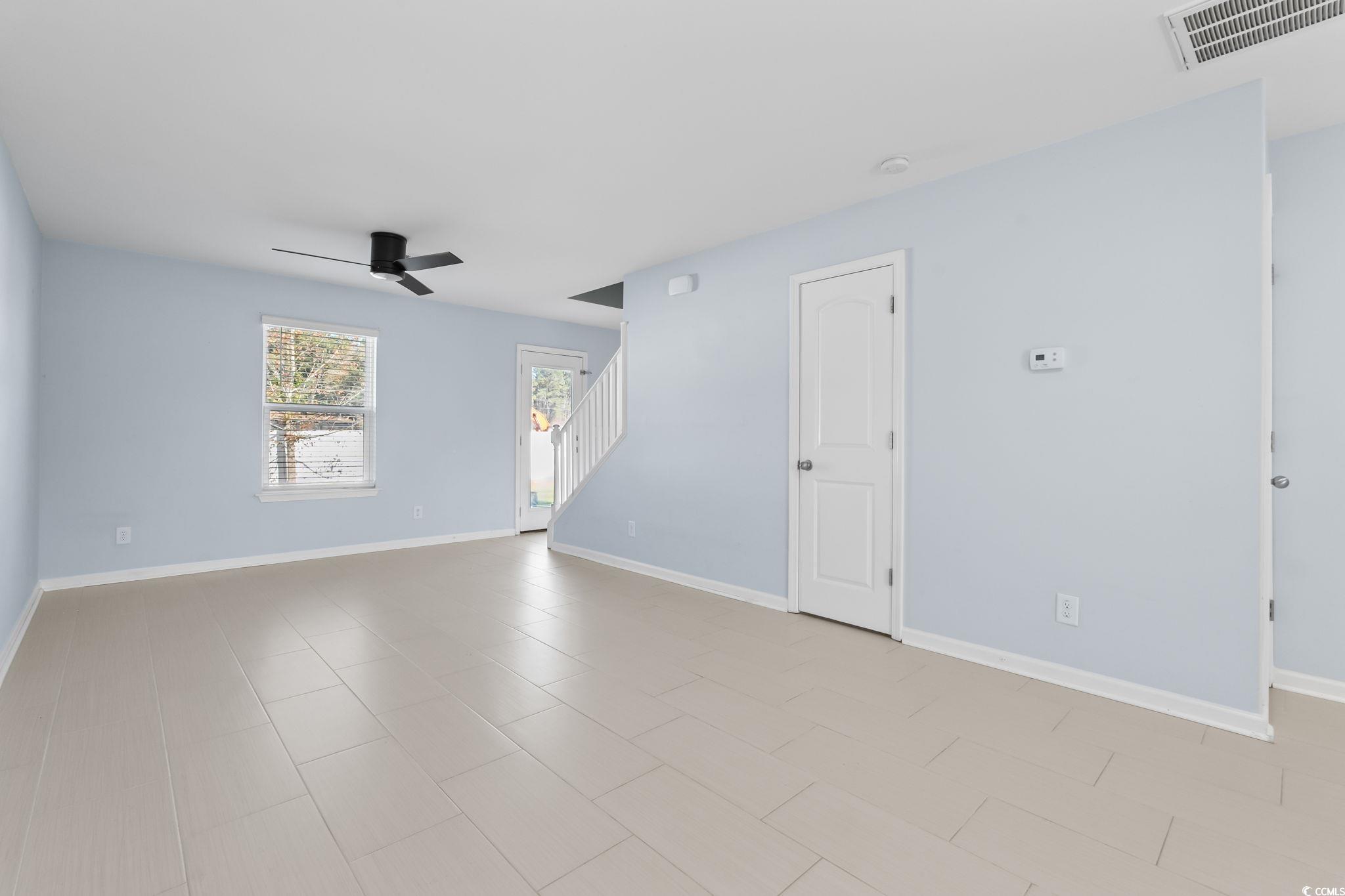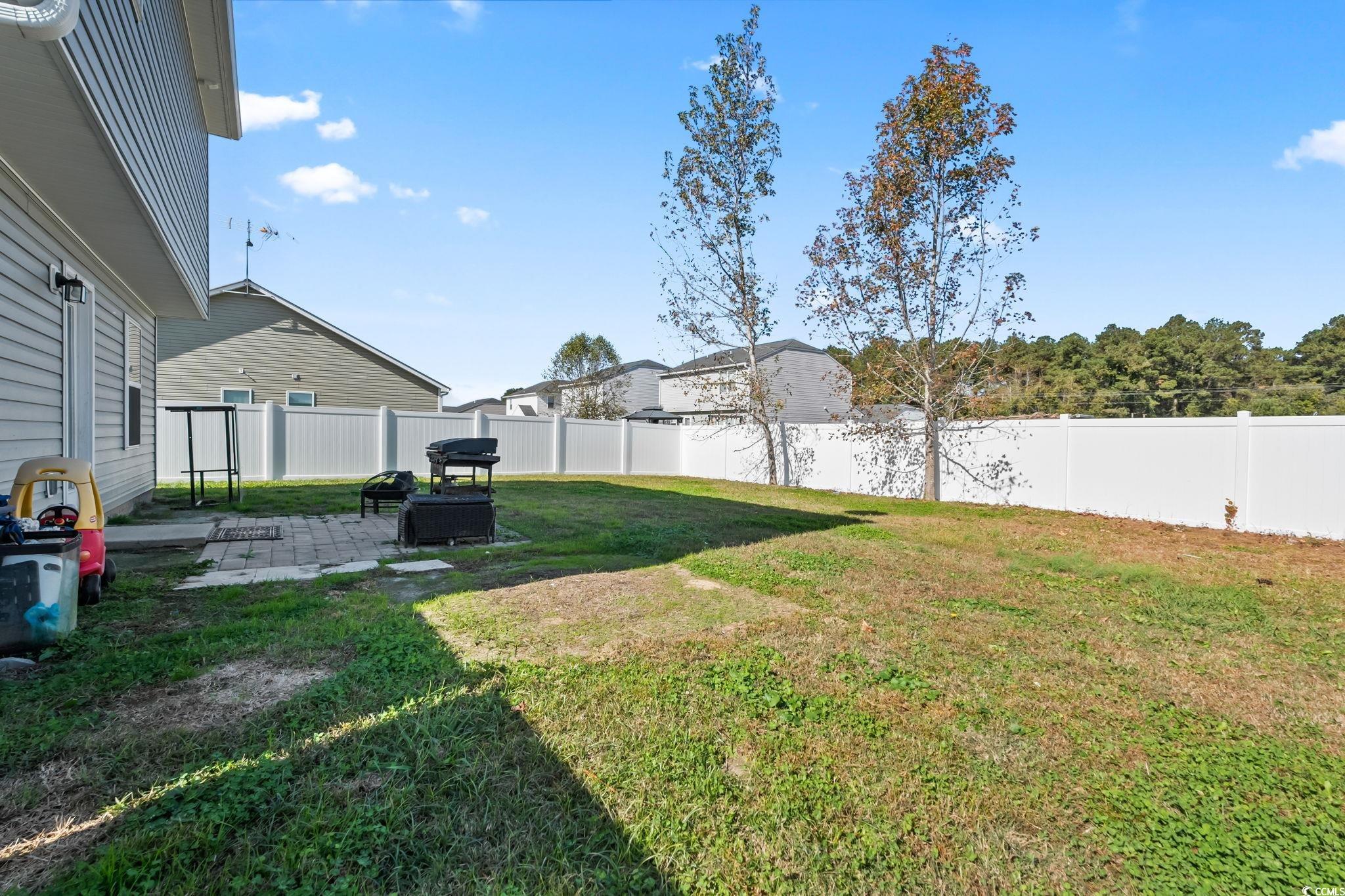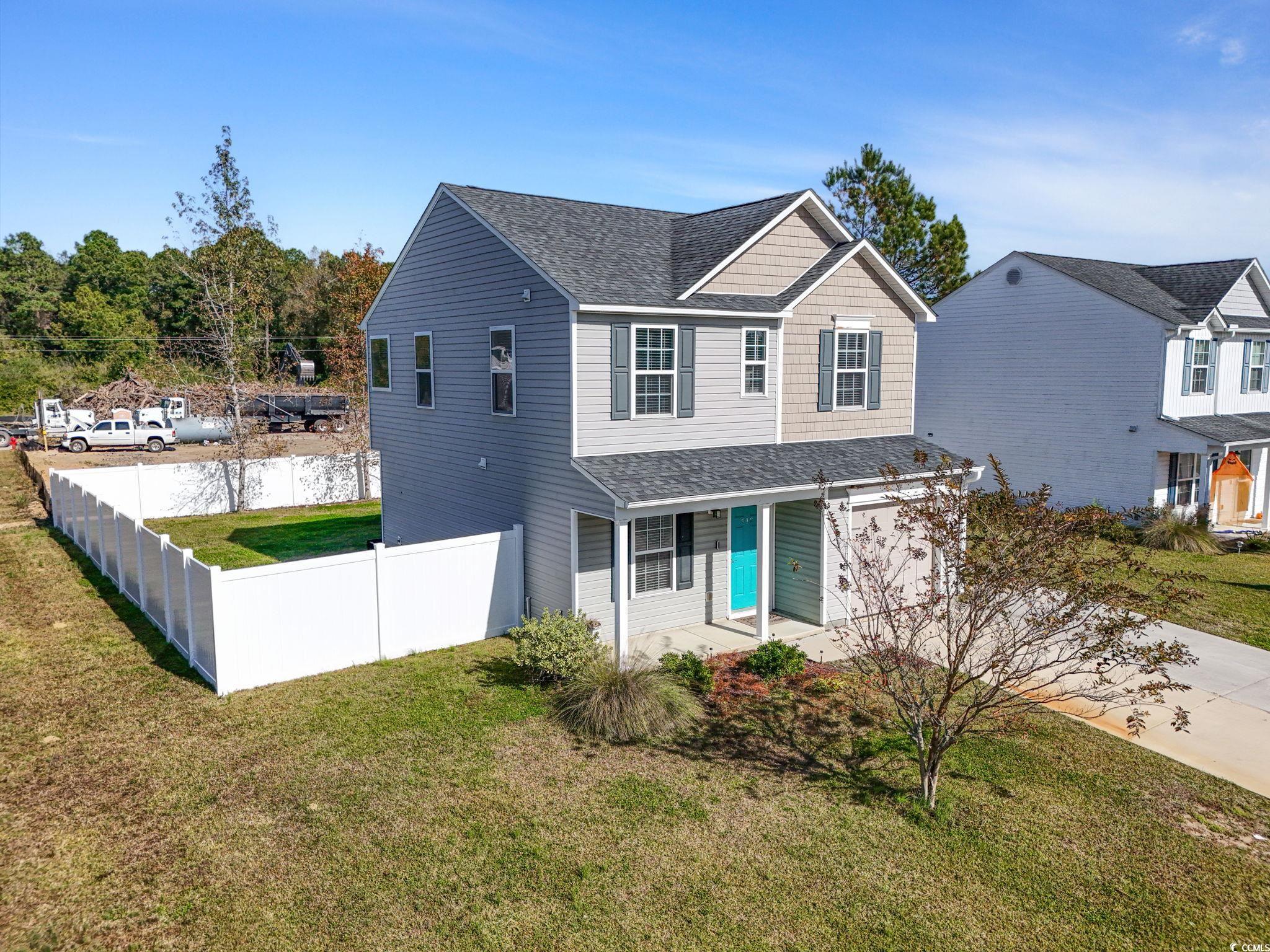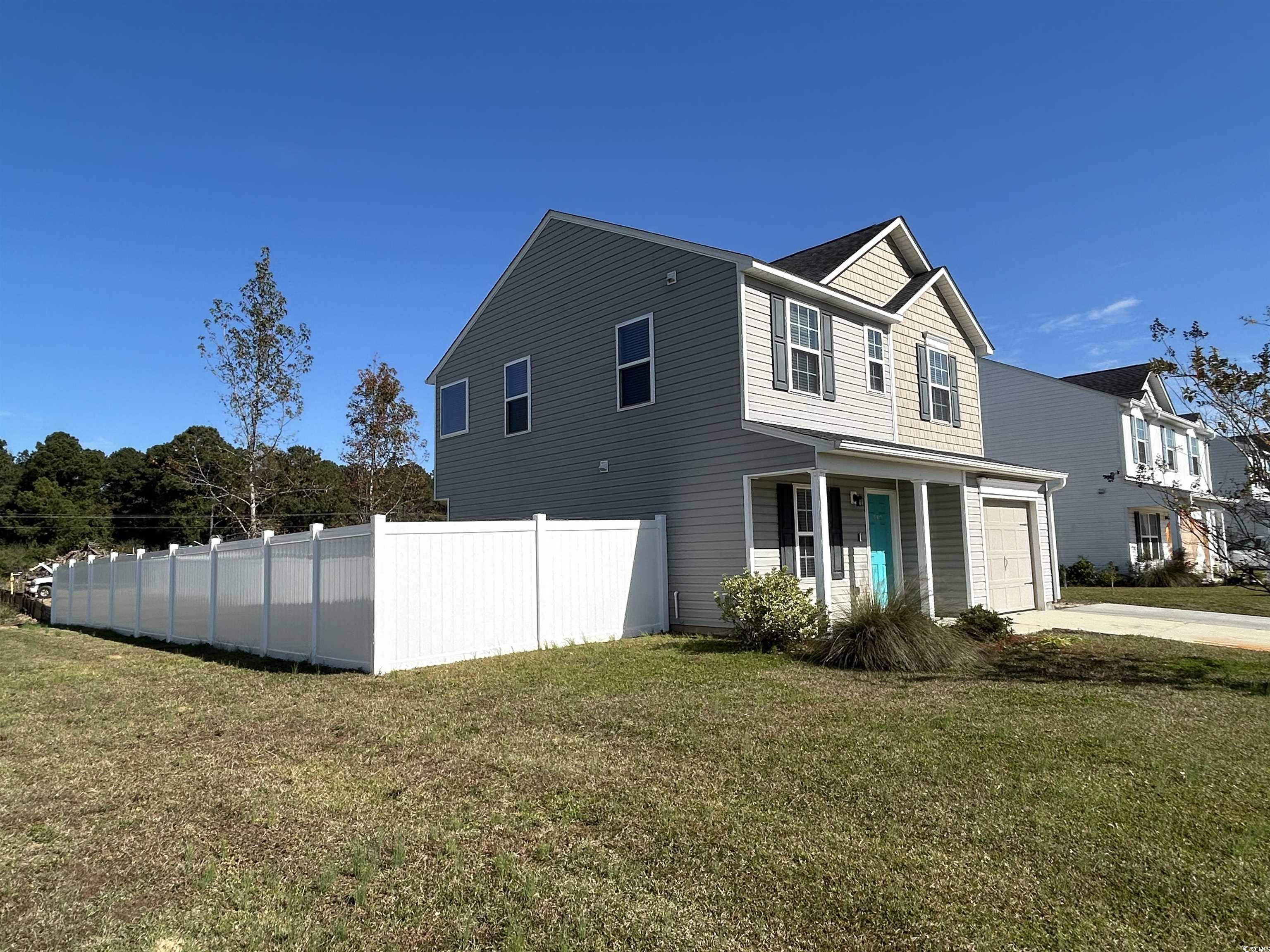 Welcome home! This beautiful 3-bedroom, 2.5-bathroom property is located in the desirable Myrtle Grove Plantation. Step through the front door into a bright living area featuring porcelain tile flooring and a convenient guest bath. The kitchen offers large granite countertops, stainless steel appliances and a spacious pantry. Upstairs you will find two additional bedrooms, a full bathroom and the primary suite complete with its own bathroom and generous closet space. A linen closet is also located in the hallway for added convenience, and the laundry room is situated upstairs as well. The attached 1-car garage includes built-in shelving to maximize storage. Enjoy the large, fully fenced backyard with vinyl privacy fencing- an ideal space for entertaining, grilling or simply relaxing!