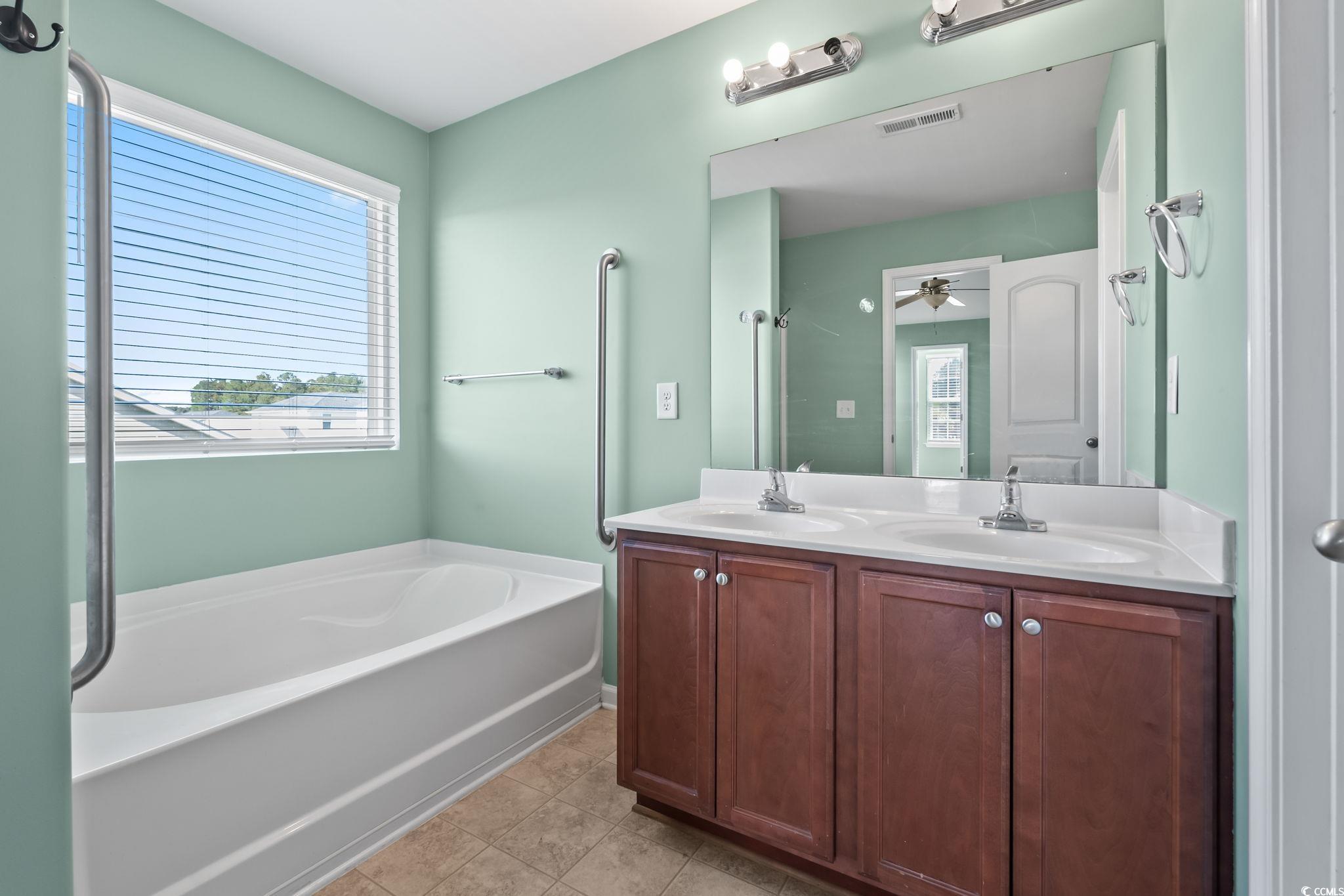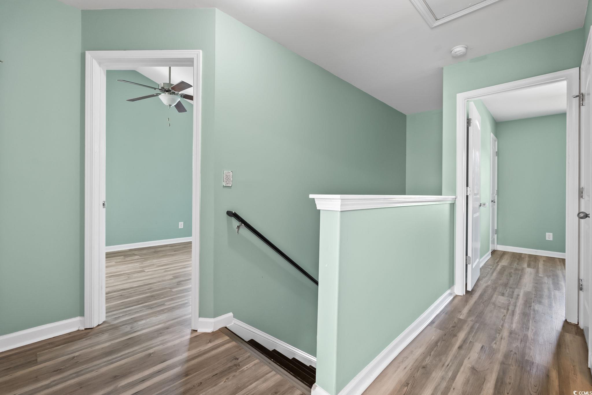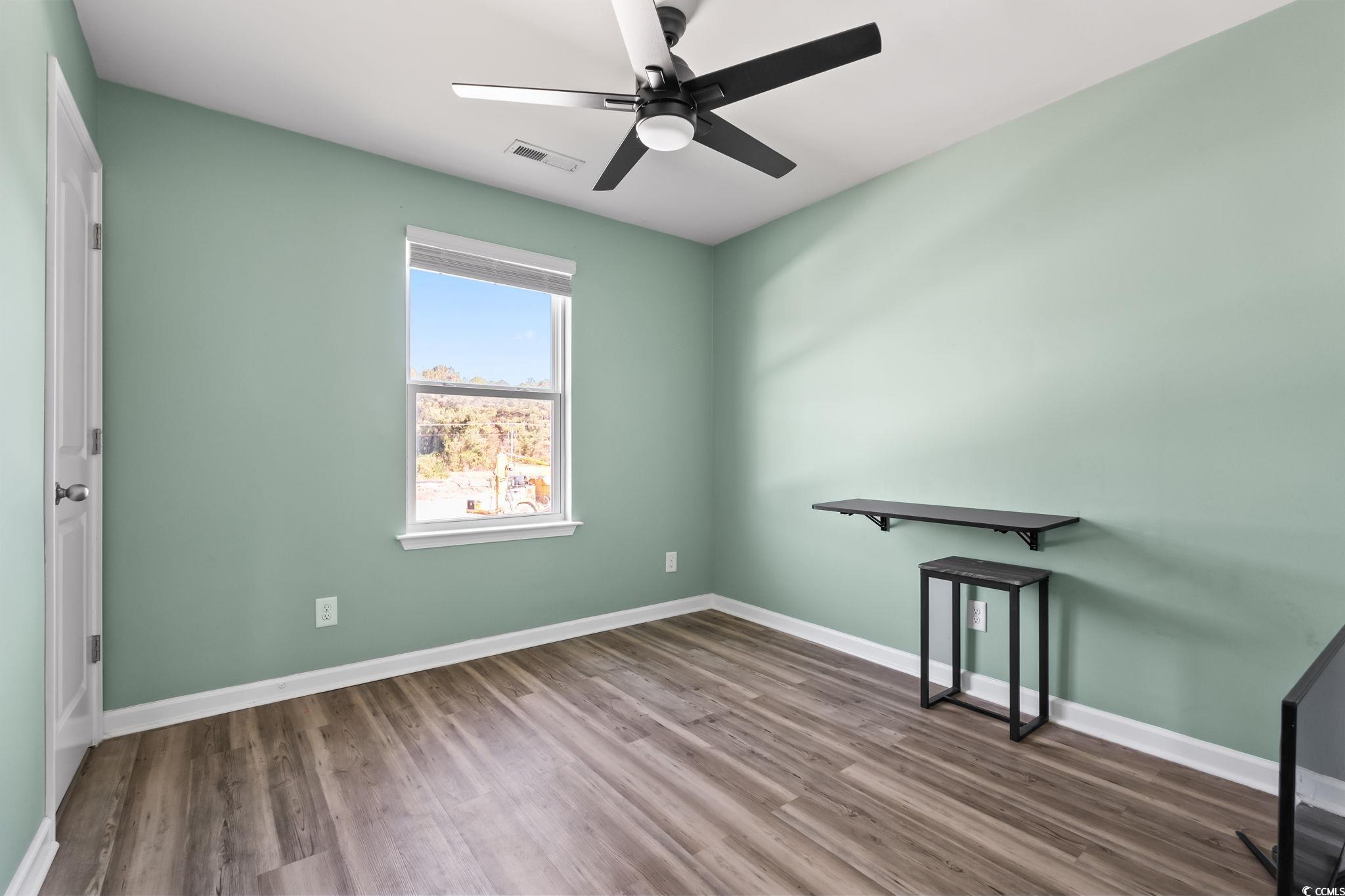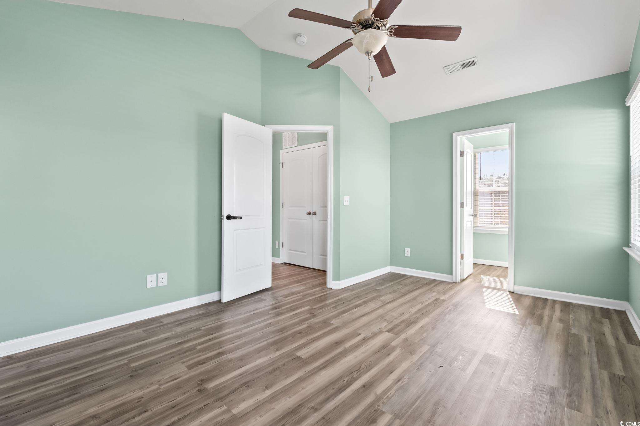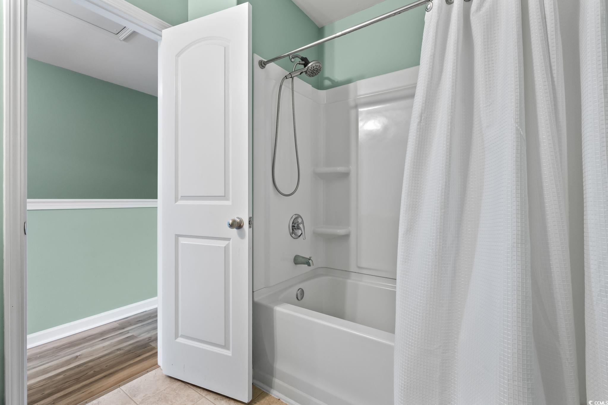 Welcome home! This beautiful 3-bedroom, 2.5-bathroom property is located in the desirable Myrtle Grove Plantation. Step through the front door into a bright living area featuring porcelain tile flooring and a convenient guest bath. The kitchen offers large granite countertops, stainless steel appliances and a spacious pantry. Upstairs you will find two additional bedrooms, a full bathroom and the primary suite complete with its own bathroom and generous closet space. A linen closet is also located in the hallway for added convenience, and the laundry room is situated upstairs as well. The attached 1-car garage includes built-in shelving to maximize storage. Enjoy the large, fully fenced backyard with vinyl privacy fencing- an ideal space for entertaining, grilling or simply relaxing!