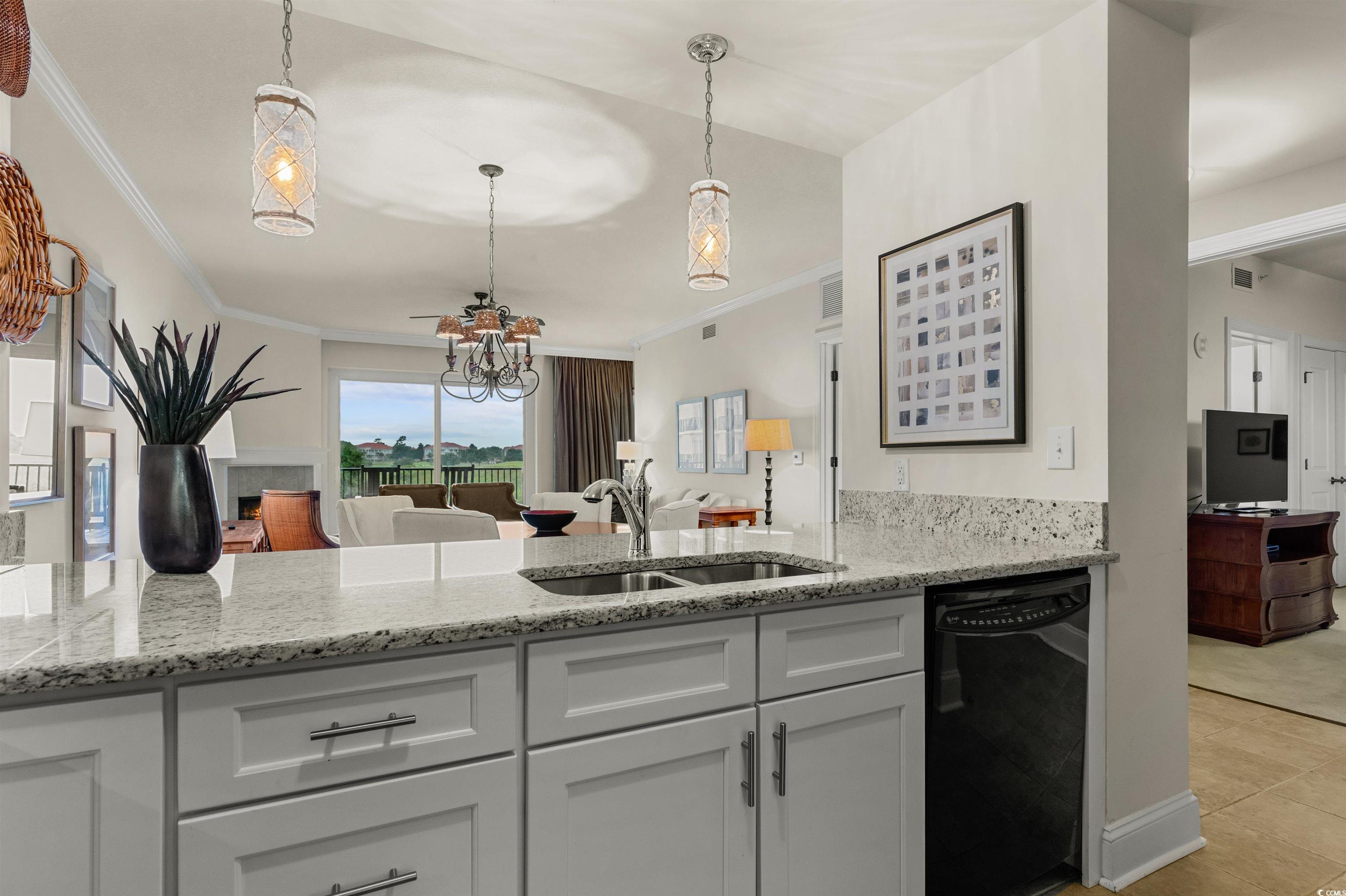 Welcome to a truly exceptional and incredibly upgraded 2-bedroom, 2-bathroom villa overlooking the beautiful Intracoastal Waterway, lush green spaces, and the prestigious Grande Dunes Resort Golf Course. Perfectly positioned in Building 4, known for its quiet setting and unbeatable views. Step inside and immediately feel the quality and care throughout. Soaring 9-foot ceilings, elegant crown molding, a cozy fireplace, and fresh, neutral paint create a welcoming atmosphere. The open-concept living space features brand-new carpet, tasteful furnishings, and two balconies, one off the living area and one off the primary suite, perfect for enjoying breathtaking sunsets over the water. The chef-inspired kitchen has been fully renovated with classic white shaker cabinetry, sleek new appliances, and neutral granite countertops. a perfect blend of style and function. The primary suite offers a spacious king-size bed, private balcony access, and a spa-like bathroom with ceramic tiled shower. The guest bedroom comfortably fits two queen-size beds, making this home ideal for entertaining family and friends. Your HOA dues cover nearly everything: Ocean Club membership, electricity, gas, water/sewer, cable, WIFI, phone, building insurance, HO6 property insurance, pool service, landscaping, security, and even elevator maintenance offering a truly hassle-free lifestyle. Enjoy resort-style amenities including: Indoor & outdoor pools, Hot tubs & sauna, Fully equipped fitness center, Business center, Onsite dining, room service, housekeeping, and restaurants including Ruth’s Chris Steakhouse and the waterfront 357 Raw Bar. You’re just one mile from the beach, where you’ll have access to the exclusive Ocean Club, featuring oceanfront dining, pools with poolside food & beverage service, and a calendar full of social events and activities. Whether you're looking for a full-time residence, a luxurious vacation escape, or a future investment property, this villa offers an unbeatable combination of location, lifestyle, and value. Don’t miss your chance to own a piece of paradise, schedule your private tour today!