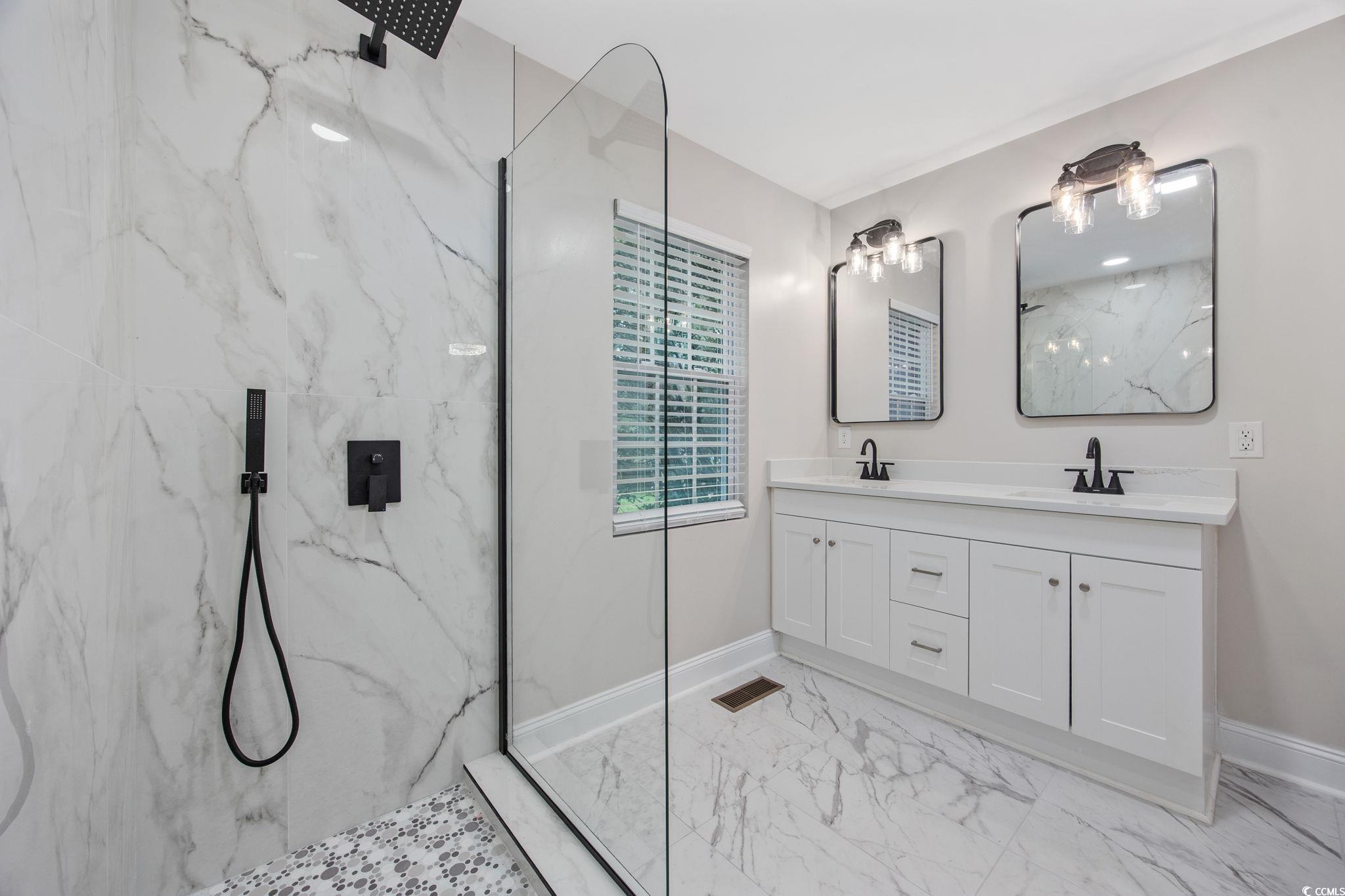 Absolutely stunning and fully remodeled from top to bottom in 2025, this home at 8123 Timber Ridge Rd. in Conway, SC offers like-new construction quality with timeless modern design. Located in the desirable Kingston Greens community, this property sits on nearly half an acre, offering privacy, space, and the perfect opportunity to add a pool or custom outdoor retreat. (Please note, the pool photo is virtually staged). Recent upgrades include a new roof, HVAC, windows, flooring, interior and exterior paint, appliances, and beautifully tiled bathrooms—all completed in 2025. This thoughtfully redesigned home features 4 spacious bedrooms and 3.5 bathrooms, including two luxurious master suites—one on each floor—ideal for multi-generational living or private guest space. The open-concept living area centers around a whitewashed brick wood-burning fireplace, flowing into a fully upgraded kitchen with quartz countertops, a waterfall island, brand-new stainless steel appliances, soft-close cabinetry, a subway tile backsplash, and sleek black finishes. Step outside to enjoy mature landscaping, a new backyard deck, and plenty of room for entertaining or future outdoor expansion. Just off the backyard, the 2-car garage has been fully enclosed and includes additional built-in storage space—perfect for tools, equipment, or hobbies. Located just minutes from Highway 501, Highway 31, Tanger Outlets, Coastal Carolina University, and Burning Ridge Golf Club, this home offers convenience without sacrificing tranquility. With a very low HOA, this home offers exceptional value in today’s Conway real estate market. If you’re searching for a fully remodeled, move-in-ready home in Conway, South Carolina, this one truly has it all. Don’t miss your chance—schedule your private showing today and experience the beauty and comfort of 8123 Timber Ridge Rd. for yourself!