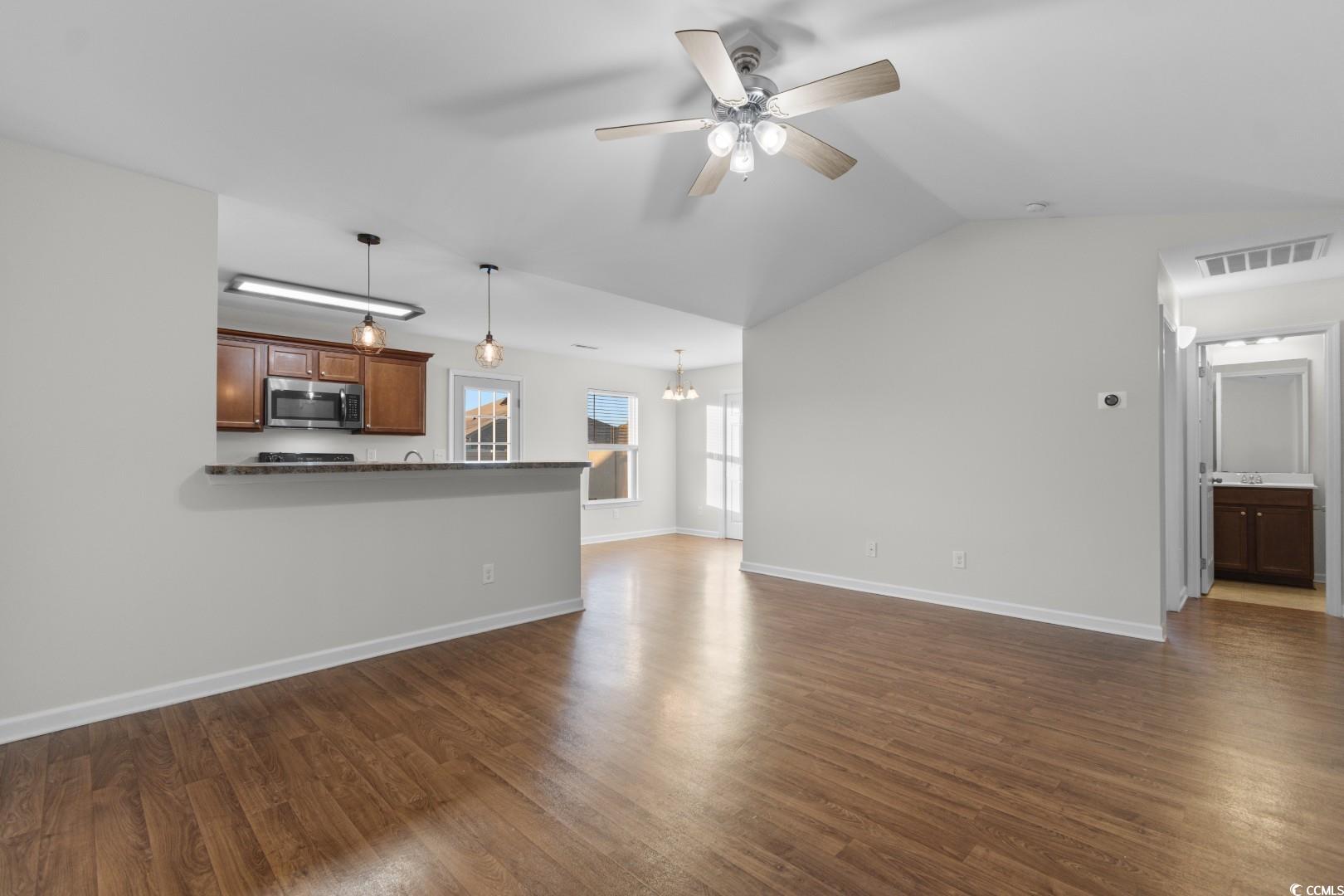 Step into this charming 3-bedroom, 2-bath home in the highly desirable St. John's Ridge community, where comfort and style meet. The open floor plan features a vaulted ceiling in the living room, filling the space with light and creating an airy, welcoming atmosphere. Two bedrooms sit on one side of the foyer, while a private master suite rests on the other -- perfect for both family life and quiet retreats. Outside, the oversized backyard patio is ready for morning coffee, evening dinners, or relaxing weekends with friends and family. Inside, recent updates make moving in easy, including a new air handler (2021), freshly painted interior, and a brand-new microwave and garbage disposal (2025). An attached two-car garage adds everyday convenience, and the location couldn't be better -- just minutes from shopping, restaurants, and entertainment, with easy access to Highways 501 and 378. This isn't just a house; it's a home ready for your next chapter!