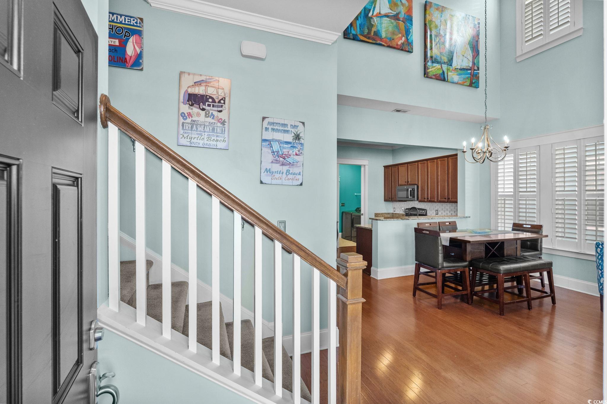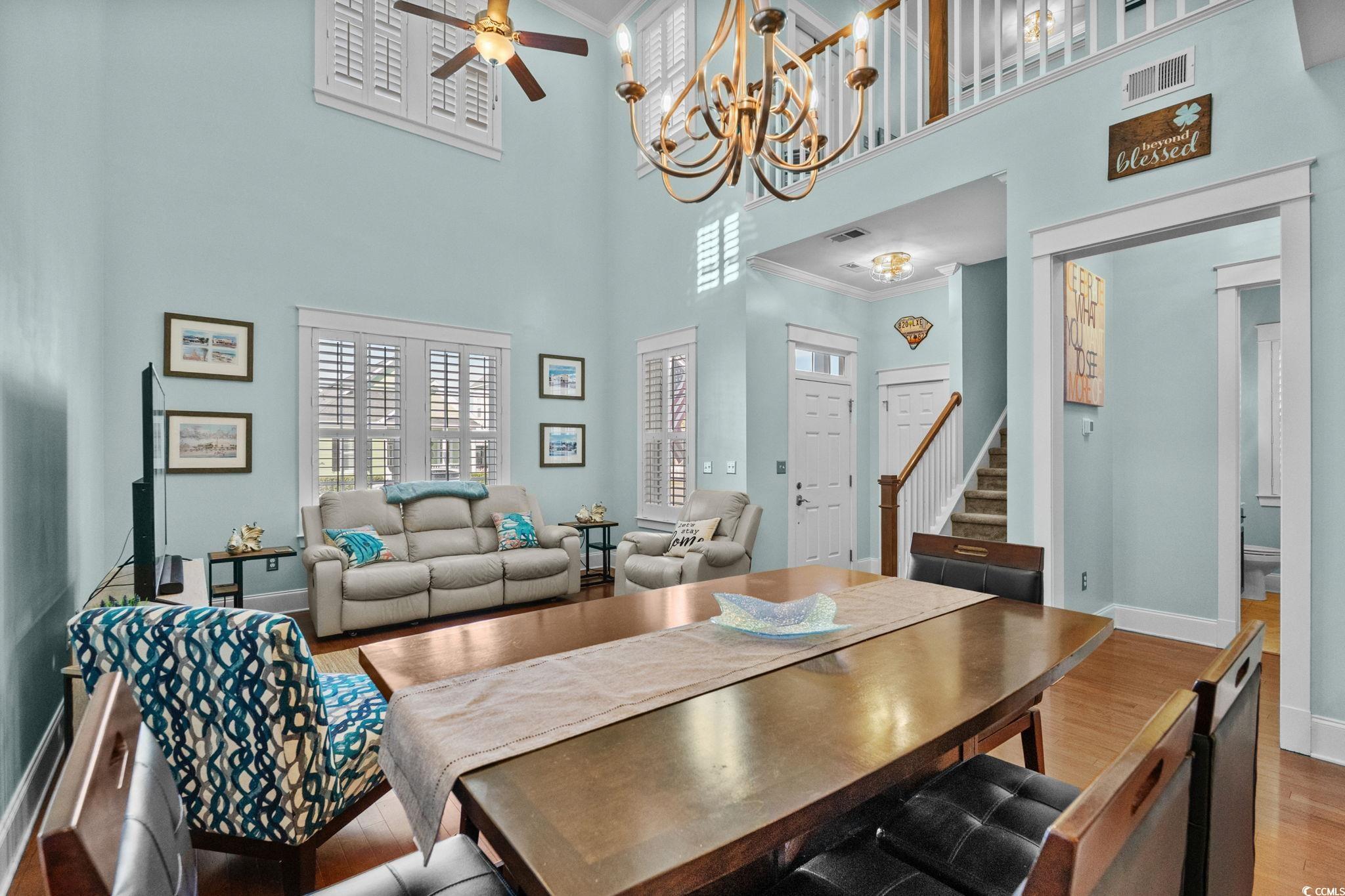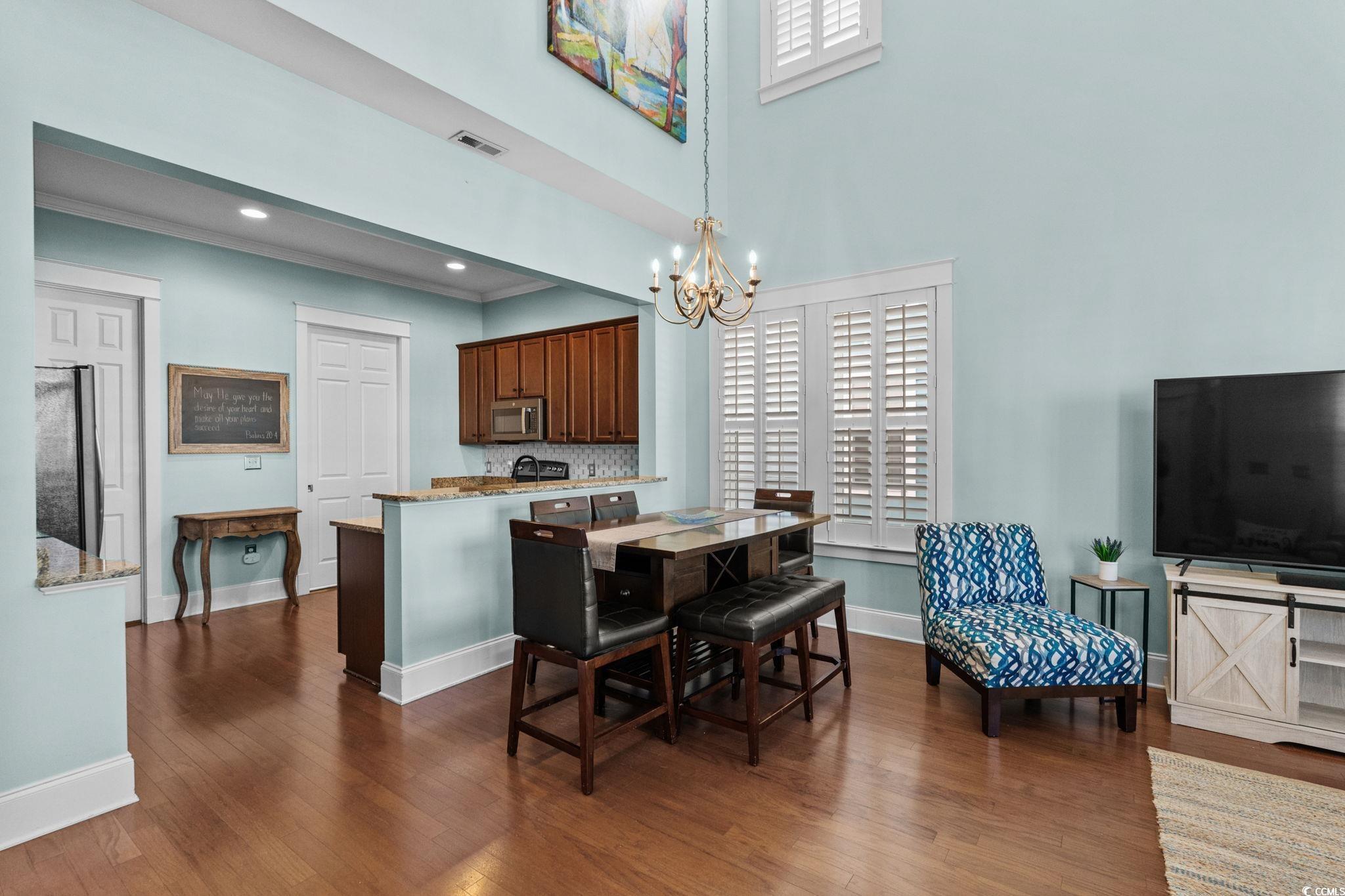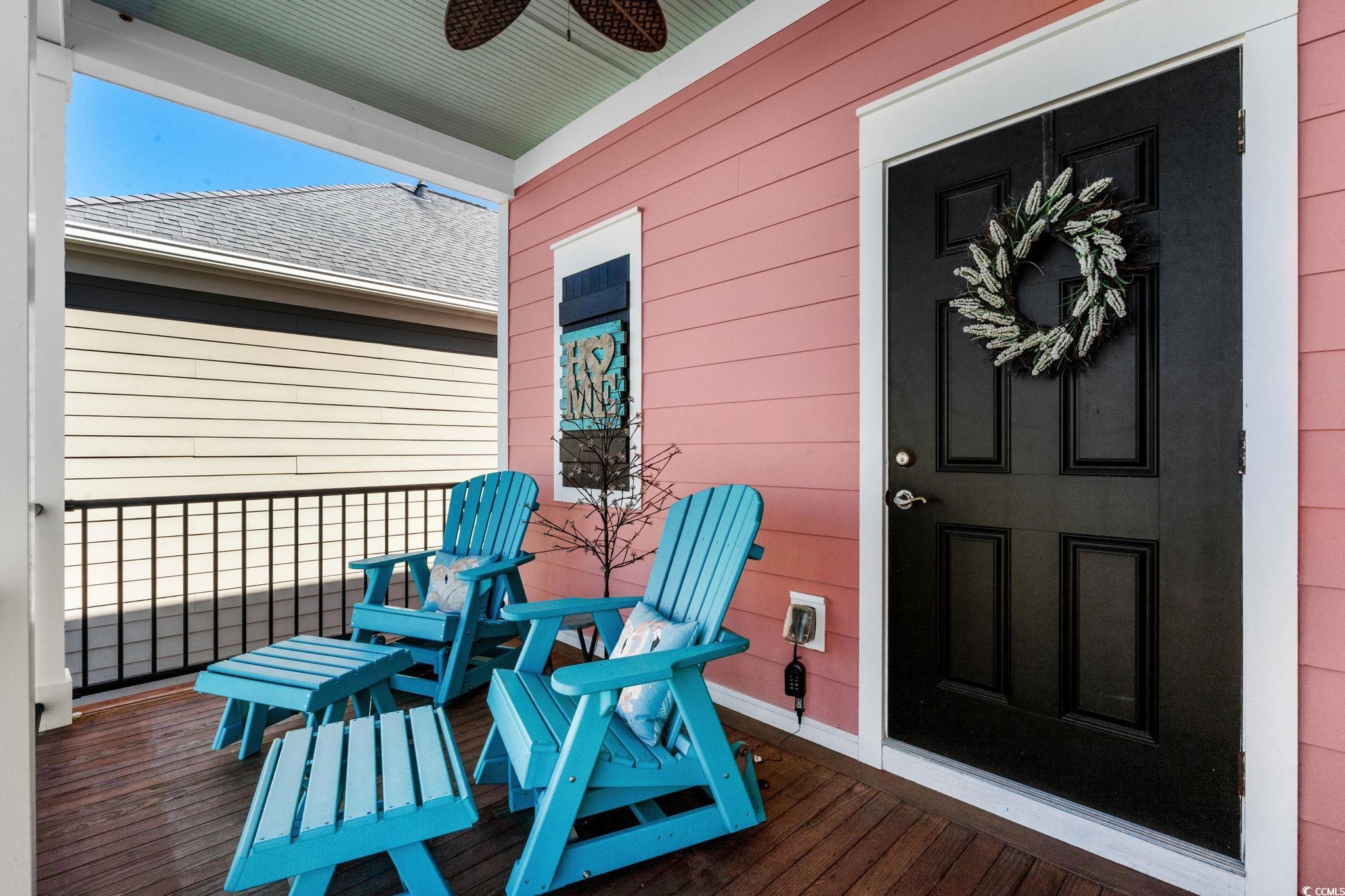 Charleston Charm Meets Coastal Lifestyle – Welcome to Sweetgrass Square in Market Common. Experience the timeless beauty of Charleston-style living just a mile from the sparkling Atlantic in the sought-after community of Sweetgrass Square. Nestled within Market Common, one of Myrtle Beach’s most vibrant and walkable neighborhoods, this 3-bedroom, 2.5-bath gem offers the perfect blend of charm, comfort, and convenience. Step onto the iconic double front porches—perfect for morning coffee or evening cocktails—and into approximately 2,300 square feet of thoughtfully designed living space. A spacious front yard welcomes you, while a private, fenced side yard offers a quiet retreat for grilling, gardening, or letting pets play. Sellers have replaced the HVAC system earlier this year along with fencing, curbscaping and concrete paving in the courtyard. Inside, the first-floor primary suite is a rare find—ideal for those seeking main-level living without sacrificing style. Soaring ceilings greet you with lots of natural sunlight. Two additional bedrooms upstairs and full bath offer flexible options for guests, home office, or hobbies. Sweetgrass Square is a natural gas community, and everything you love is just steps or a short golf cart ride away. Stroll to upscale shops, local boutiques, and a wide variety of restaurants. Catch the latest movie, challenge friends to a game of bowling, or linger over coffee at the beloved Barnes & Noble café. Life in Market Common is more than a home—it’s a lifestyle. Enjoy miles of walking and biking trails, year-round art festivals, and the state-of-the-art Crabtree Gym. Families and visitors alike appreciate Savannah’s Playground—an inclusive, autism-friendly park—and nearby, your furry friends will love the dog park. Additional perks include the 84,000 sq. ft. Veteran’s Clinic, easy access to top-rated medical facilities, and the Myrtle Beach International Airport just minutes away. Whether you’re looking for your forever home, a vacation getaway, or a smart investment, this home in Sweetgrass Square offers the perfect blend of elegance, location, and Lowcountry charm. Come live where every day feels like a getaway. Welcome home!