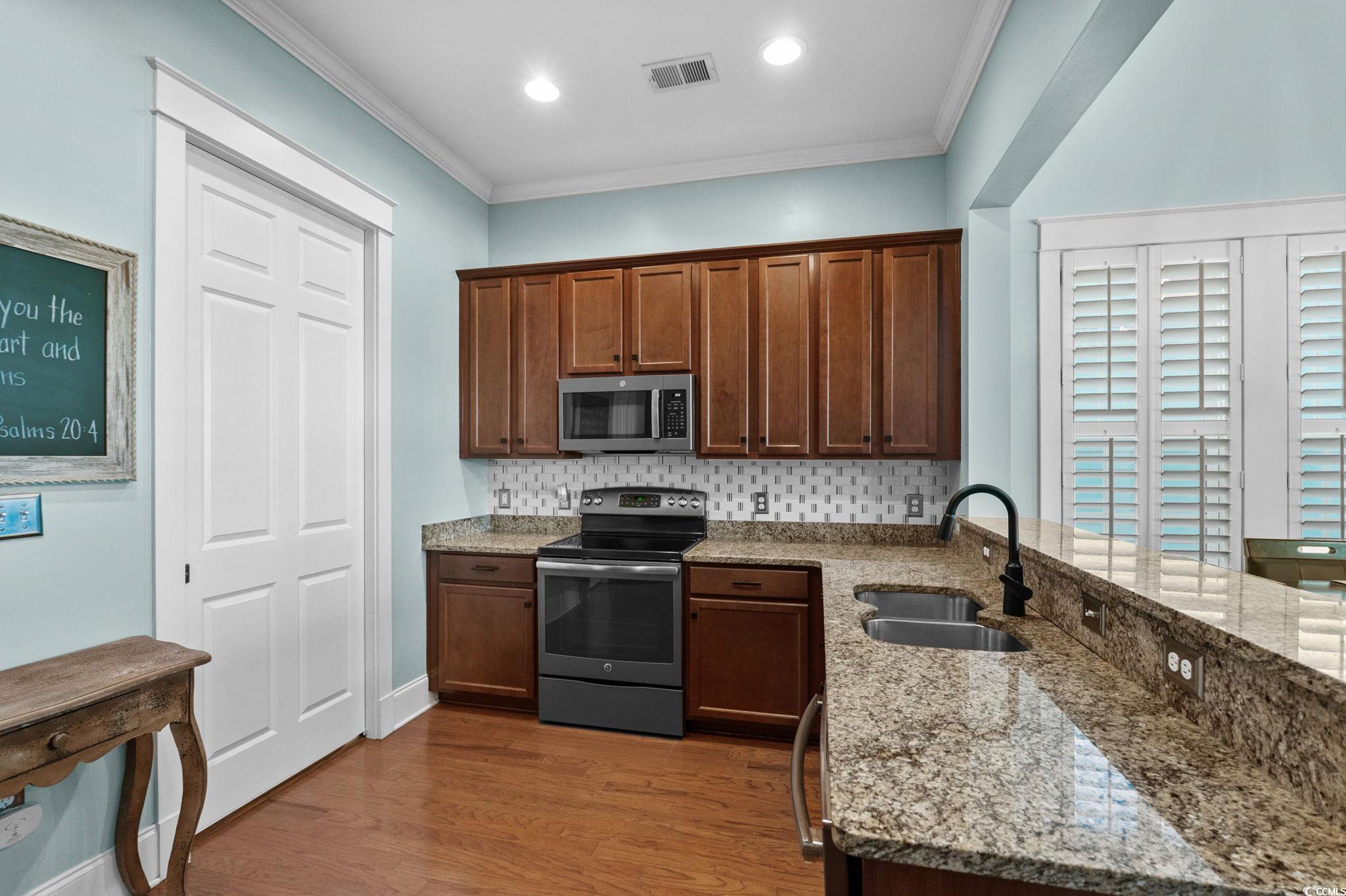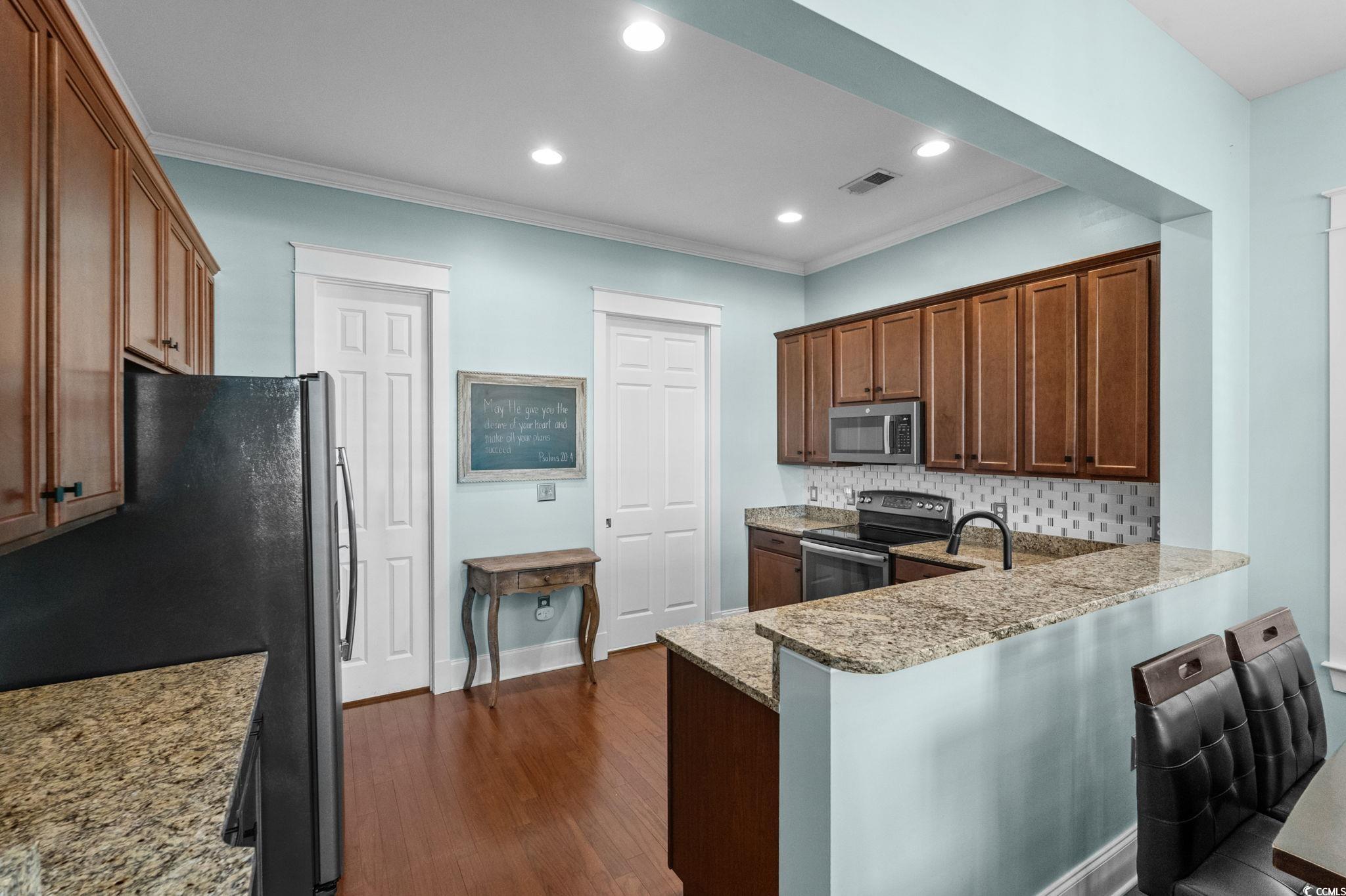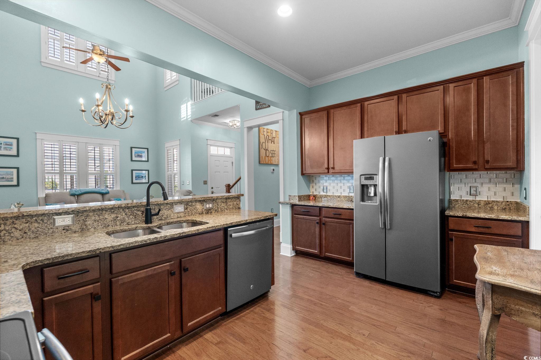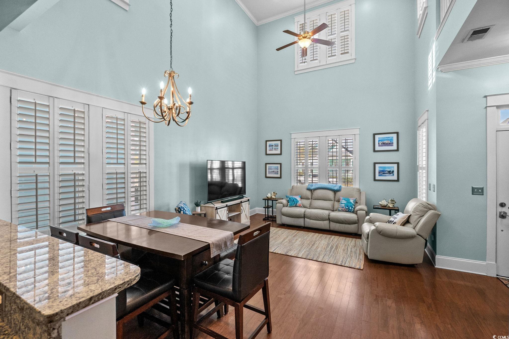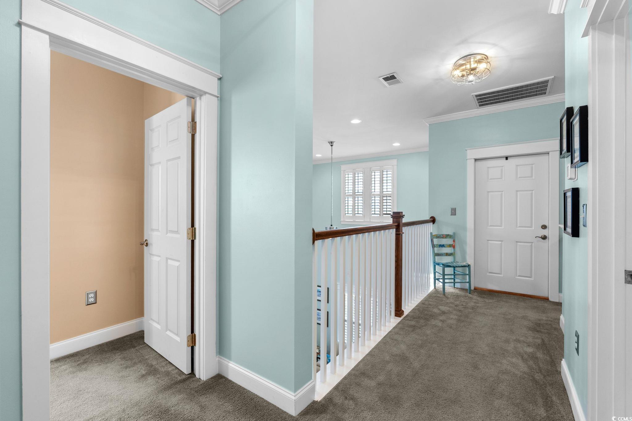 Charleston Charm Meets Coastal Lifestyle – Welcome to Sweetgrass Square in Market Common. Experience the timeless beauty of Charleston-style living just a mile from the sparkling Atlantic in the sought-after community of Sweetgrass Square. Nestled within Market Common, one of Myrtle Beach’s most vibrant and walkable neighborhoods, this 3-bedroom, 2.5-bath gem offers the perfect blend of charm, comfort, and convenience. Step onto the iconic double front porches—perfect for morning coffee or evening cocktails—and into approximately 2,300 square feet of thoughtfully designed living space. A spacious front yard welcomes you, while a private, fenced side yard offers a quiet retreat for grilling, gardening, or letting pets play. Sellers have replaced the HVAC system earlier this year along with fencing, curbscaping and concrete paving in the courtyard. Inside, the first-floor primary suite is a rare find—ideal for those seeking main-level living without sacrificing style. Soaring ceilings greet you with lots of natural sunlight. Two additional bedrooms upstairs and full bath offer flexible options for guests, home office, or hobbies. Sweetgrass Square is a natural gas community, and everything you love is just steps or a short golf cart ride away. Stroll to upscale shops, local boutiques, and a wide variety of restaurants. Catch the latest movie, challenge friends to a game of bowling, or linger over coffee at the beloved Barnes & Noble café. Life in Market Common is more than a home—it’s a lifestyle. Enjoy miles of walking and biking trails, year-round art festivals, and the state-of-the-art Crabtree Gym. Families and visitors alike appreciate Savannah’s Playground—an inclusive, autism-friendly park—and nearby, your furry friends will love the dog park. Additional perks include the 84,000 sq. ft. Veteran’s Clinic, easy access to top-rated medical facilities, and the Myrtle Beach International Airport just minutes away. Whether you’re looking for your forever home, a vacation getaway, or a smart investment, this home in Sweetgrass Square offers the perfect blend of elegance, location, and Lowcountry charm. Come live where every day feels like a getaway. Welcome home!