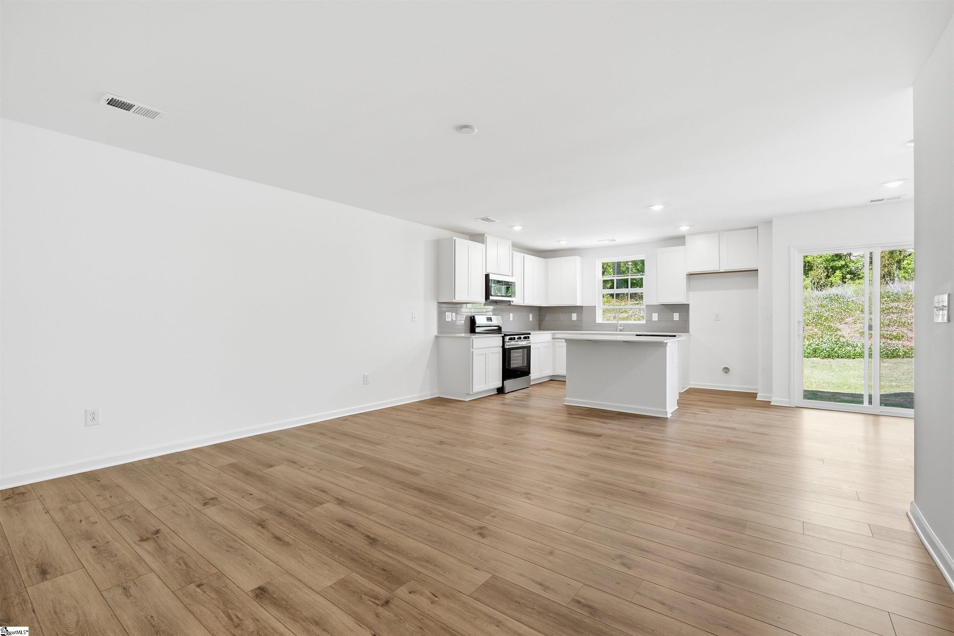 The Chestnut floorplan at Mahaffey Place in Spartanburg, SC. We are excited to introduce you to the Chestnut Floorplan – a delightful 3-bedroom, 2.5-bathroom, 1423 square foot, 2-story townhouse that epitomizes modern craftsman style living. Upon entering, you'll be greeted by beautiful crisp white shaker cabinets, a stylish tile backsplash, and stainless steel appliances. The large smooth surface island is perfect for gathering with family and friends, making it an ideal spot for food, fun, and lively interaction. The open concept design ensures that entertaining is a breeze, as the kitchen seamlessly flows into the breakfast room and spacious great room. Imagine sipping your morning coffee on your back covered patio, enjoying the tranquility of your new home. Upstairs, you'll find a generous master bedroom with a walk-in shower en suite. Additionally, this charming home offers two other bedrooms, a full bath, and a convenient laundry room.