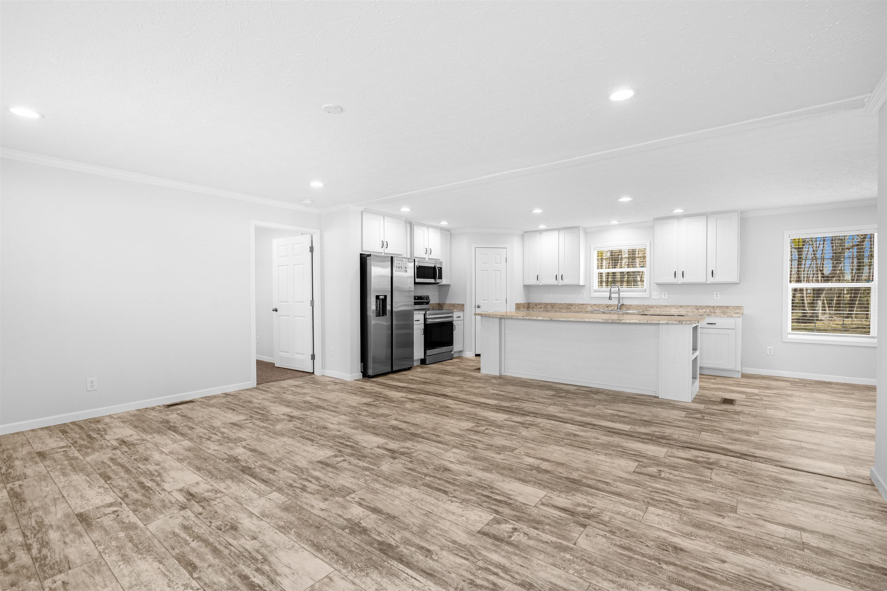 2024 double wide mobile home with approximately 1.75 acres on the Midway Highway. Mobile home has never been lived in and has brick underpinning and comes with kitchen appliances. Town water and septic. Johnsonville Schools District Five.