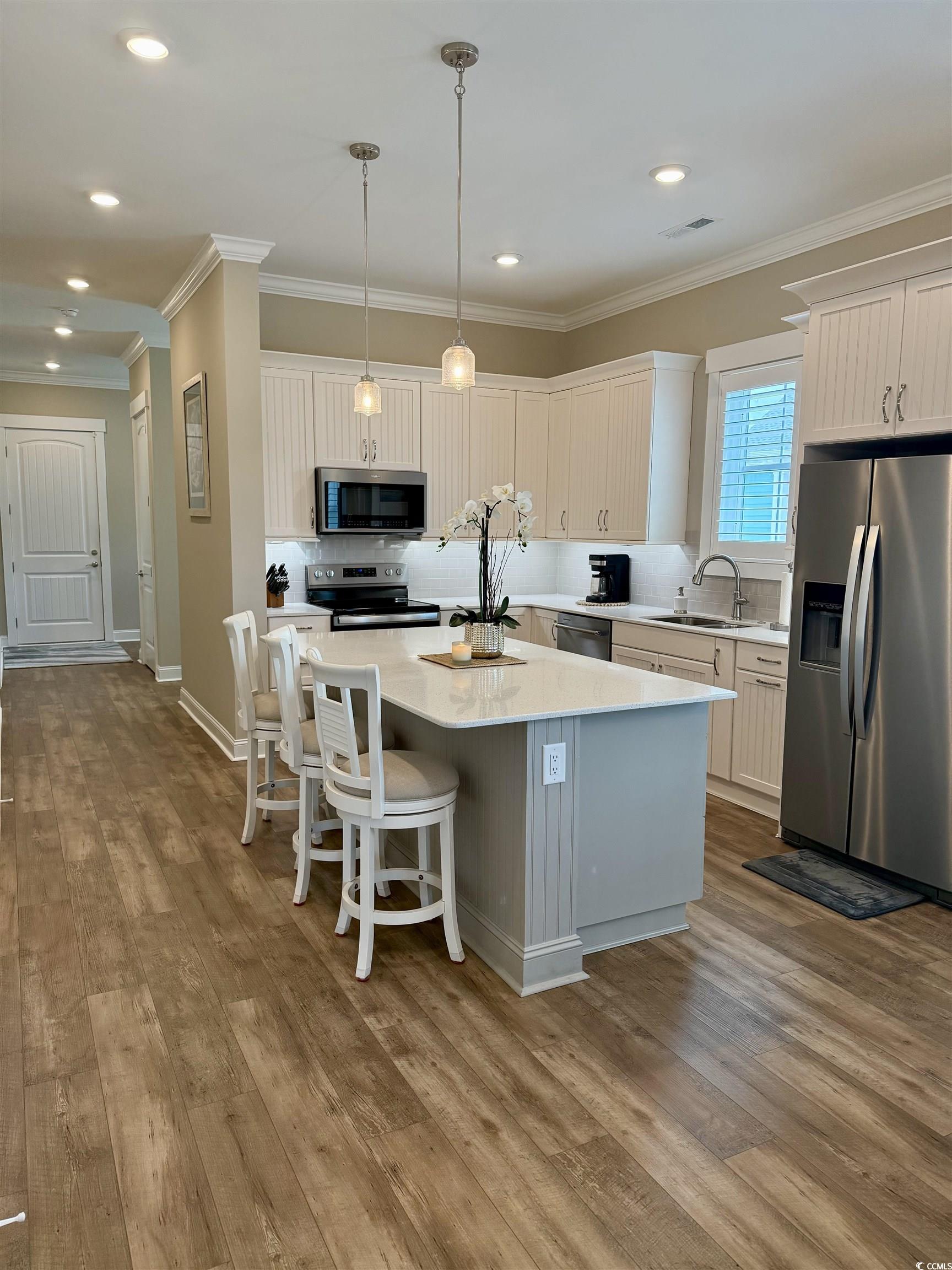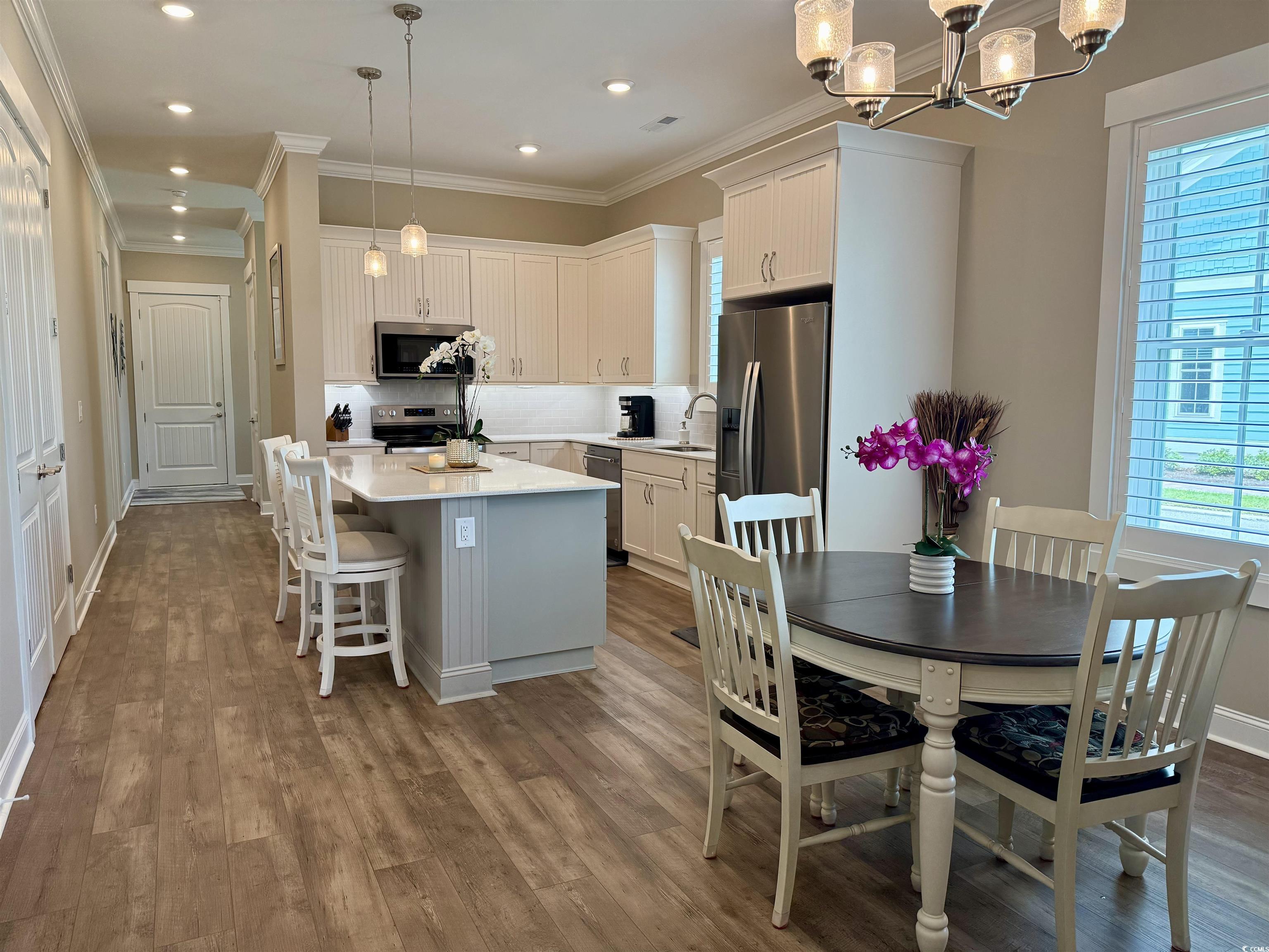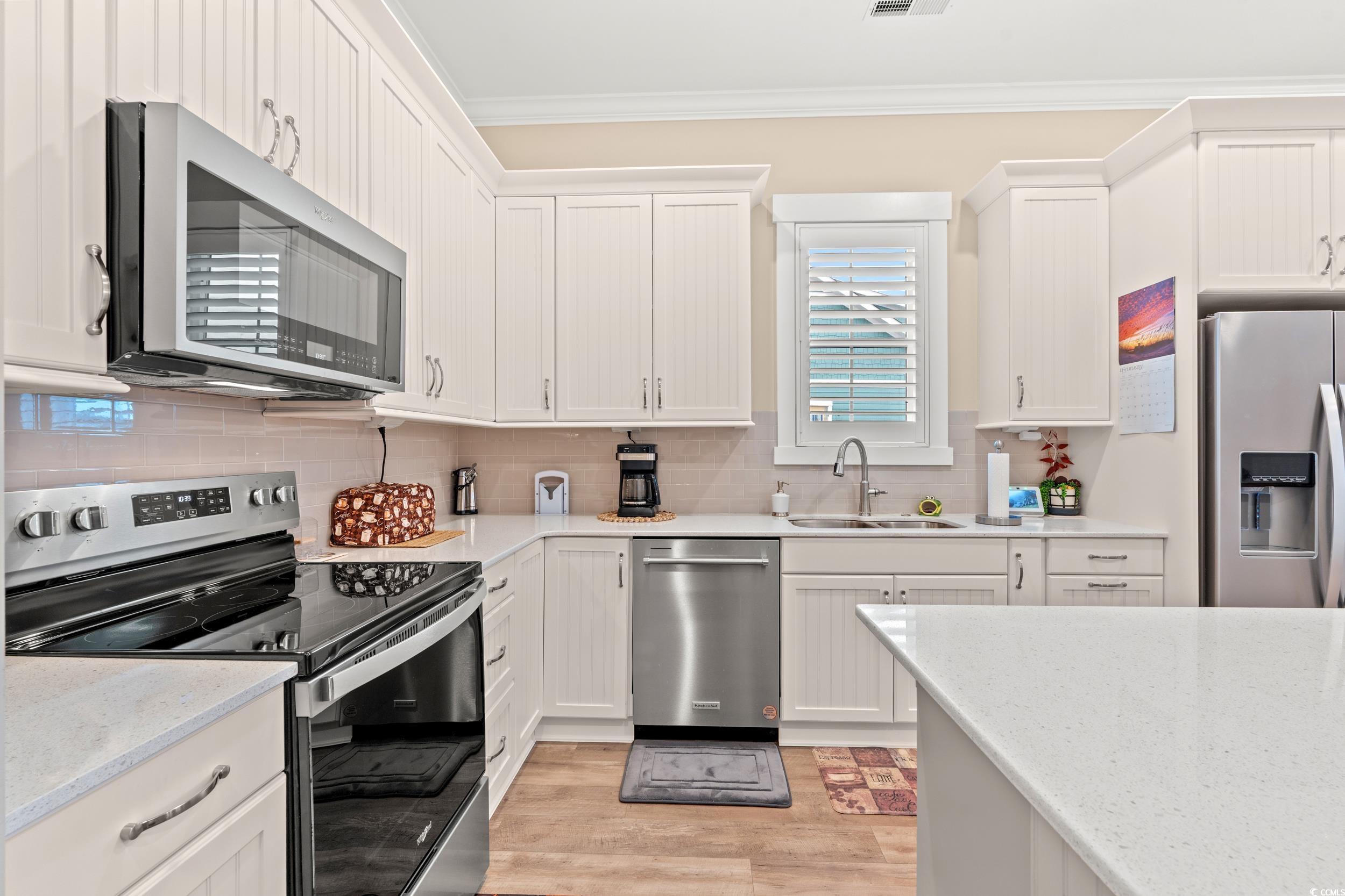 This “better than new” Southport plan features 3 bedrooms and 2 ½ baths all on one level and sits on a premium lot with privacy/pond views from the back porch. You’ll enjoy luxurious finishes such as quartz countertops, tile backsplash, stainless steel appliances, designer cabinetry, with soft close doors and drawers and under cabinet LED lighting. All appliances are like new and will convey with the property- including the refrigerator and washer/dryer with pedestals. This home boasts an abundance of closet space along with an oversized pantry that is no longer offered by the builder. Other upgrades include solid surface flooring throughout, plantation shutters and screened front and rear porches allowing you to enjoy the beautiful sunsets without the bugs! The attached 2 car garage has been upgraded with epoxy finish, generator/electric car outlet, utility sink, and premium storage cabinets. The addition of a HALO, whole house filtration system allows you to safely enjoy water straight from the tap. This beautiful home was constructed using elevated building materials such as 2 x 6 construction, impact resistant windows, natural gas, Rinnai tankless water heater, and Icynene spray foam insulation providing energy efficiency and savings on homeowners insurance. You will also enjoy cutting-edge technology with exceptionally fast internet connection, and integrated Smart Home Technology. Living Dunes provides superior on-site amenities with a zero-entry swimming pool, well-appointed clubhouse, miles of walking trails, 10 acres of lakes, and green spaces. The community’s location offers convenient access to the beach, Grande Dunes Ocean Club, Marina, golf courses, and several major marketplaces with groceries, pharmacies, shopping, dining, fitness, health care, salons, and more. Don’t let this one slip away! This property is in South Carolina’s premier coastal community in Myrtle Beach; Grande Dunes. Stretching from the Ocean to the Carolina Bays Preserve, this 2600-acre development is amenity-rich and filled with lifestyle opportunities unrivaled in the market. Owners at Grande Dunes enjoy a 25,000 square foot Ocean Club that boasts exquisite dining, oceanfront pools with food & beverage service, along with meeting rooms and fun activities. Additionally, the community has two 18-hole golf courses along with several on-site restaurants, deep water marina, Har-tru tennis facility and miles of biking/walking trails! Inviting. Comfortable. Within Reach. Grande Dunes. Please contact the listing agent for the most current information.