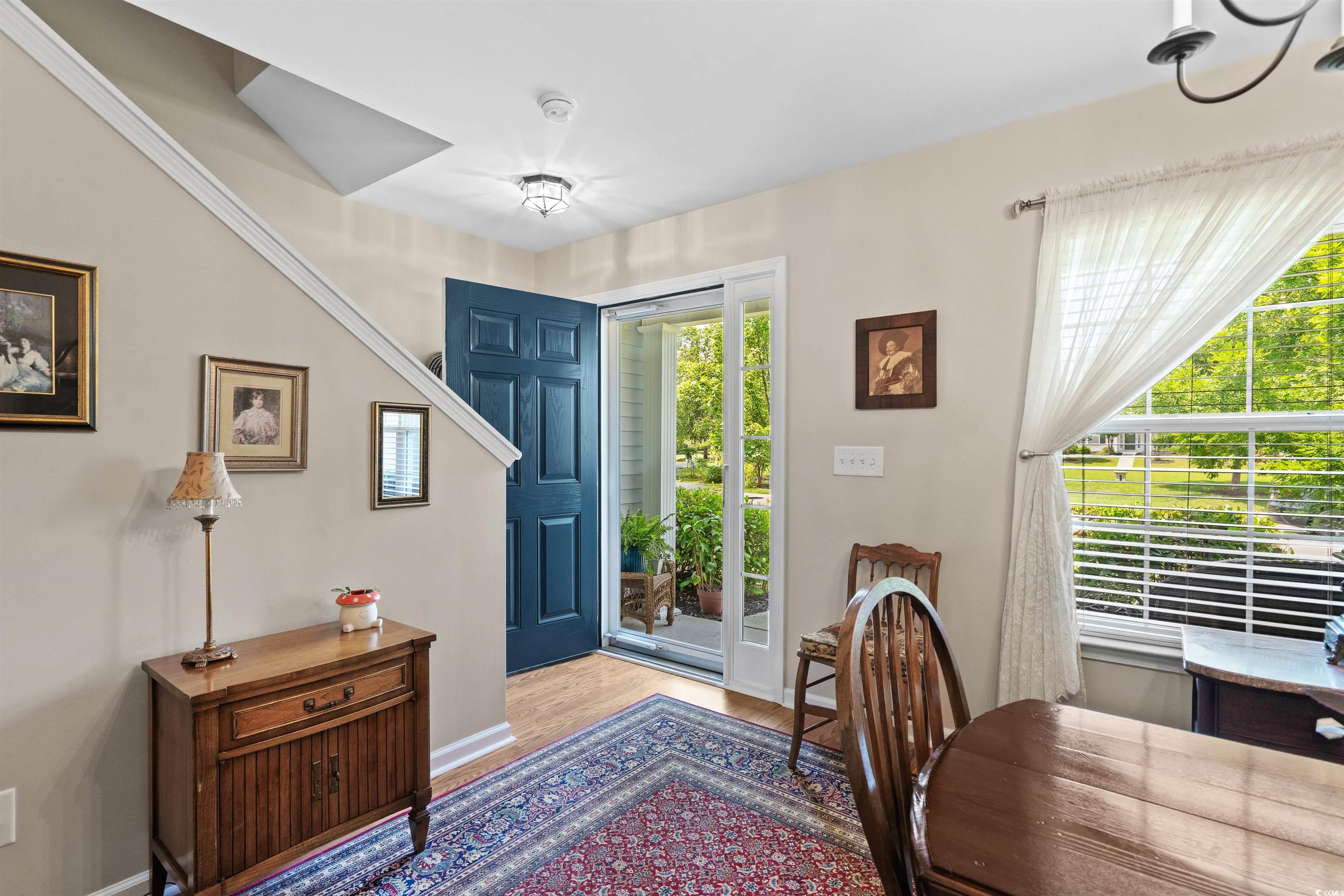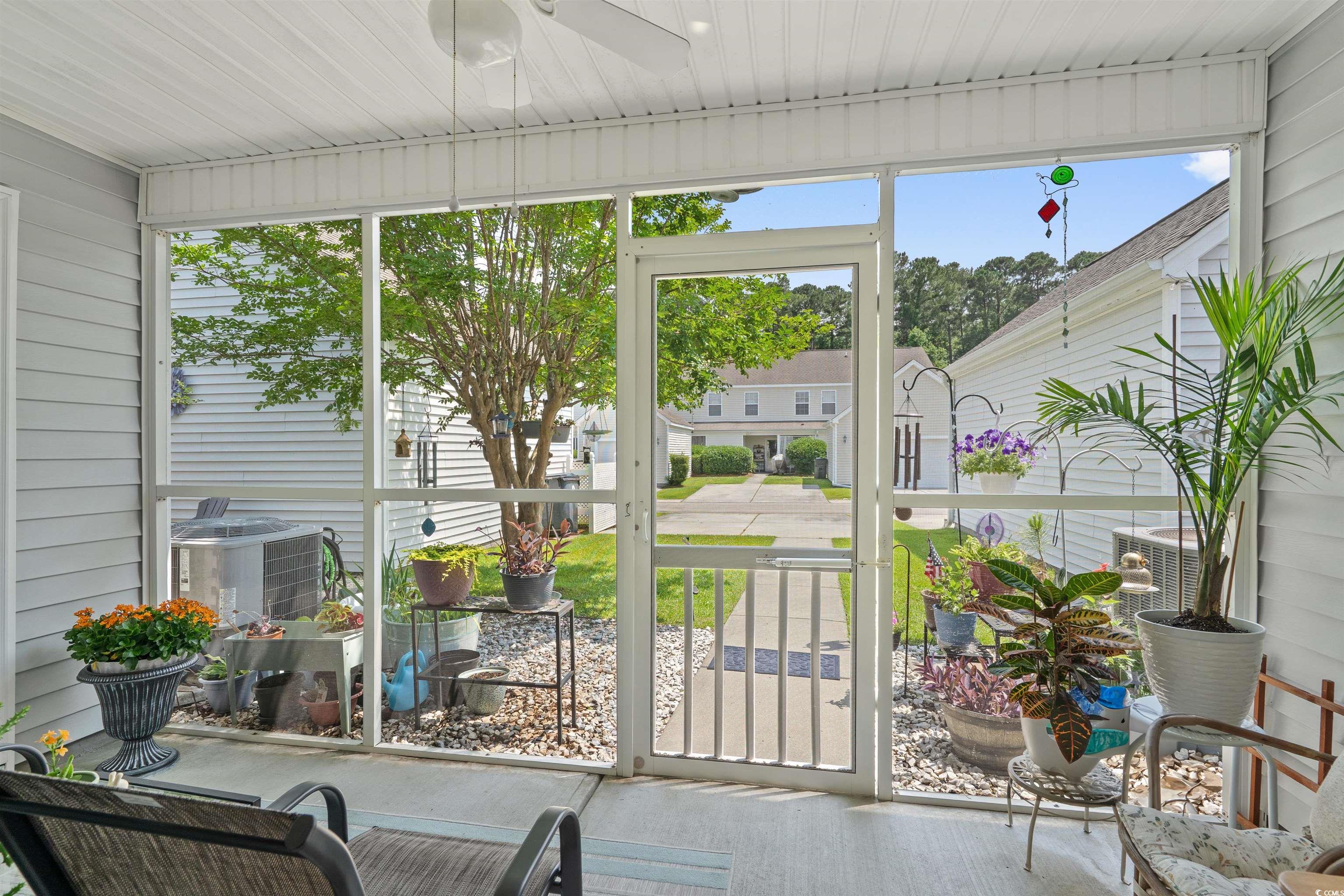 Welcome to your charming new townhome in The Orchards at Carolina Forest! This delightful two-story townhome features two spacious bedrooms and two and a half bathrooms. As you enter, you will discover a bright and airy formal dining room, where you can enjoy meals with a picturesque view of the green, lush landscaping that adorns the community. The dining area provides a serene atmosphere, allowing you to gaze onto the beautifully maintained greenery, complete with a sidewalk, perfect for a leisurely stroll. The thoughtfully designed first floor also includes the kitchen equipped with a range, dishwasher, refrigerator, built in microwave, pantry and bar stool seating area. A convenient half bathroom is also located downstairs. The large living area seats plenty, and a cheery screened in porch at the rear of the home is ideal for relaxing evenings or morning coffee. Attached to the porch, a handy storage room provides extra space for all your belongings. Upstairs, the well-appointed bedrooms each include their own full bathroom. The owner’s suite has vaulted ceilings, a ceiling fan and two closets. The primary bath includes a stand-up shower and garden tub. The laundry closet is conveniently located upstairs and separates the bedrooms. The guest bedroom also has a vaulted ceiling and includes a closet, ceiling fan, and a full bathroom with a tub/shower combo. Your new townhome also offers a private driveway for two cars, with additional parking in the front of the home, ensuring easy access for you and your guests. Conveniently located a short distance away from the community’s wonderful amenities, which include refreshing pools, fun playground, basketball courts, and a gym to keep you fit and active. The community also includes sidewalks throughout. If sandy beaches and ocean breezes are your style, you'll love being just a short 15-minute drive from the beautiful coastline. Enjoy the best of both worlds with peaceful suburban living and quick access to all the excitement and relaxation the beach has to offer. The neighborhood is conveniently located near grocery stores, medical facilities, schools, and area restaurants and shopping. Don't miss the chance to make this wonderful community your new home!