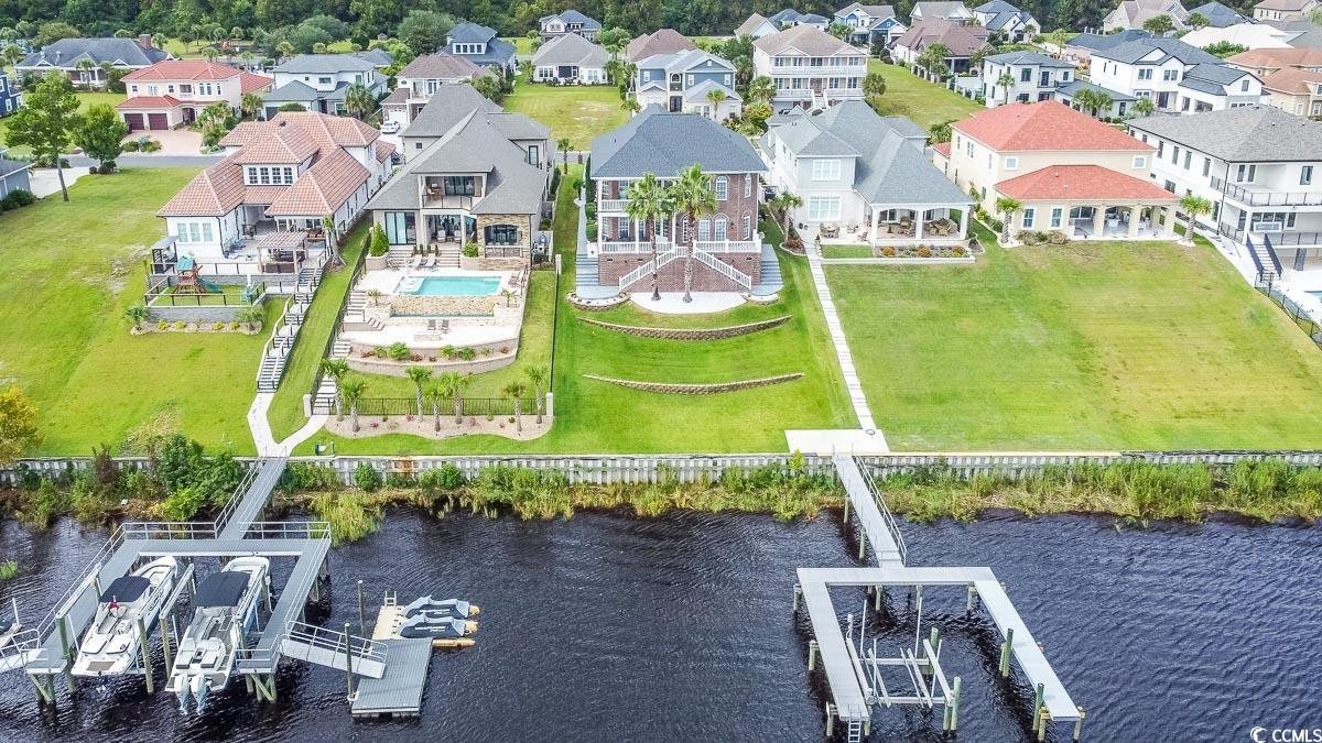 Experience luxury waterfront living in this exquisite all-brick home located in the sought-after gated community of Carolina Waterway Plantation! Perfectly positioned on the Intracoastal Waterway, this residence offers breathtaking views from both levels, framed by expansive windows that flood the home with natural light. Designed with comfort and convenience in mind, the open floor plan is enhanced by an elevator for easy access between floors. The gourmet kitchen is a true chef’s dream, featuring stainless steel appliances, custom cabinetry, and a seamless flow for entertaining. With 4 spacious bedrooms and 4.5 bathrooms, there’s plenty of room for family and guests alike. Step outside to multiple porches where you can relax and enjoy the stunning waterway views, or head to your private boat dock with lift to watch passing boats or set out on your own adventure. Built with handicap accessibility and a raised foundation, this home also offers exceptional storage space—rarely found in the community. Carolina Waterway Plantation residents enjoy top-tier amenities including a community pool, clubhouse, tennis courts, boat ramp, day dock, and optional boat/trailer storage. All of this is just 6 miles from the sandy shores of the Atlantic Ocean and minutes from premier golf, dining, shopping, entertainment, and award-winning schools. Don’t miss the opportunity to call this waterfront paradise your home!