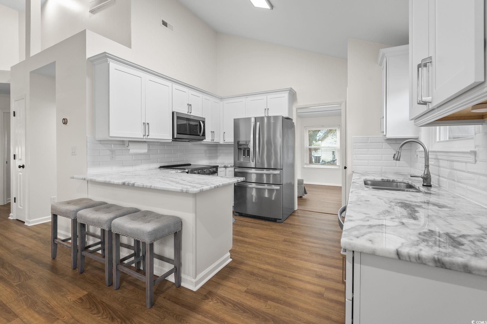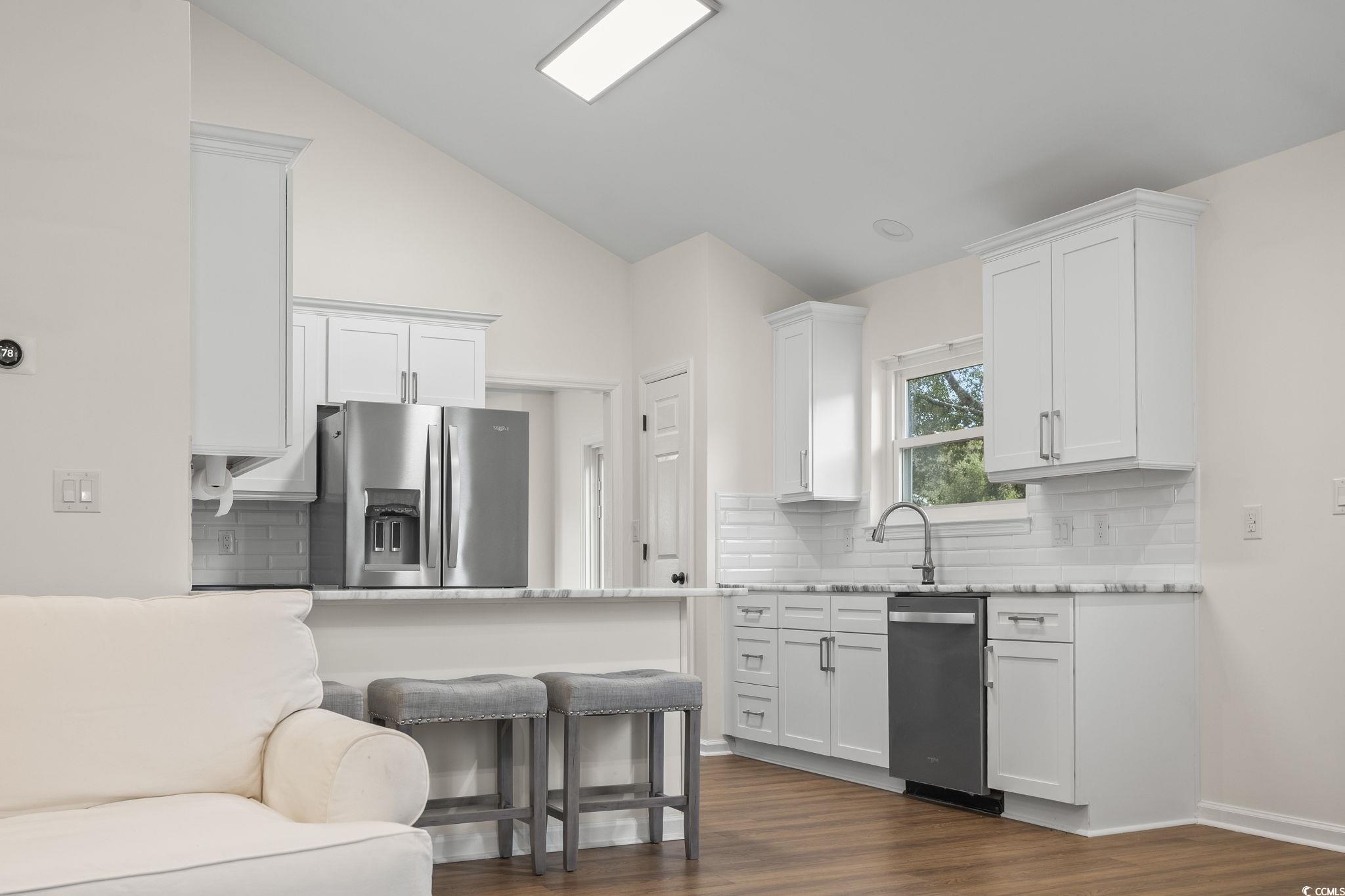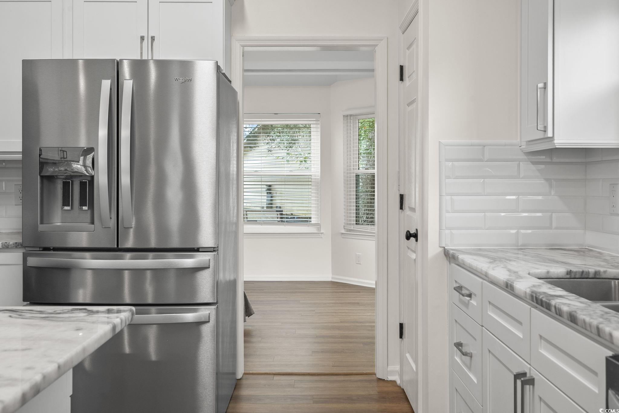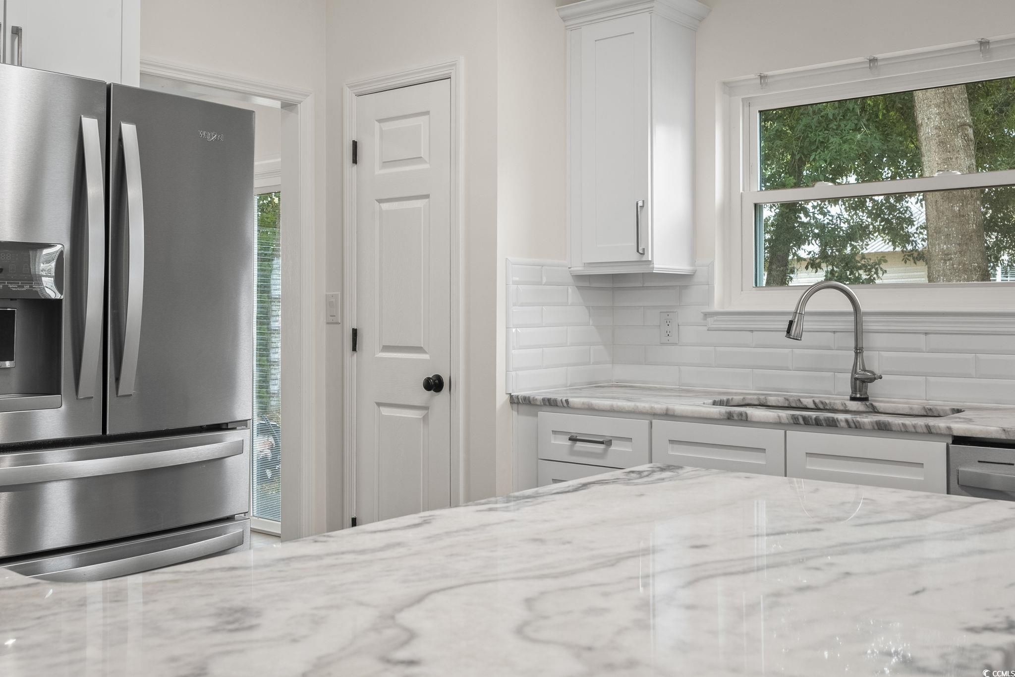 Meticulously maintained coastal cottage in Salters Cove . Welcome to this beautifully remodeled one floor home east of Highway 17 in the desirable Salters Cove community, just a few short minutes from the ocean . Move in ready and fully furnished this property offers the perfect blend of comfort convenience and coastal charm . Step inside you'll find a bright open floor plan featuring a stunning remodeled kitchen with granite counter tops , stainless steel appliances , plenty of cabinet space , and everything you'll need. The updates continue throughout with new interior paint , sleek ceilings , new siding , new windows, and a brand new AC system in 2024 . Both the kitchen and bathrooms boast upgraded counter tops ensuring style and function for years to come . The living room features a cozy fireplace and an abundance of natural light , while the bedrooms provide ample space for family and guests . Located in a friendly neighborhood with resort style amenities , this low HOA community offers a community pool , playground, tennis courts , picnic tables , a club house , and easy access towards the beach . Hop over to the Marsh walk and enjoy live music and the freshest seafood around - this "Must visit" remains one of trip advisors bucket list towns years in a row ! Whether you're looking for a vacation home or a permanent residence where everyday feels like a VaCay this one is worth a look !!!