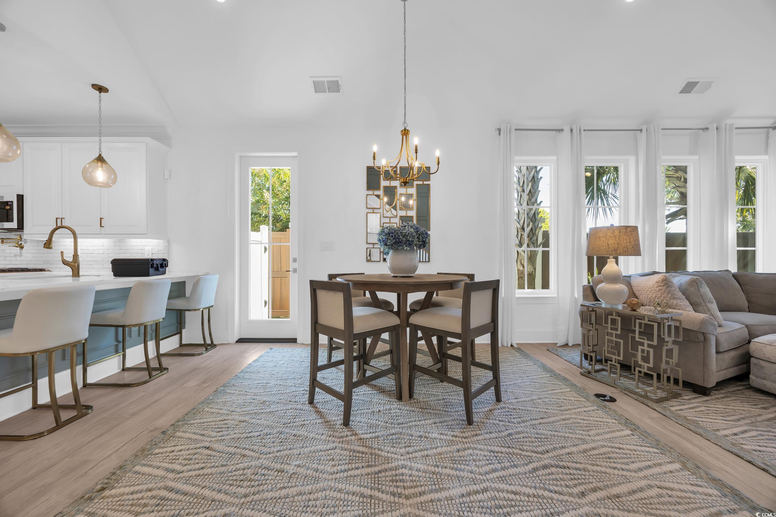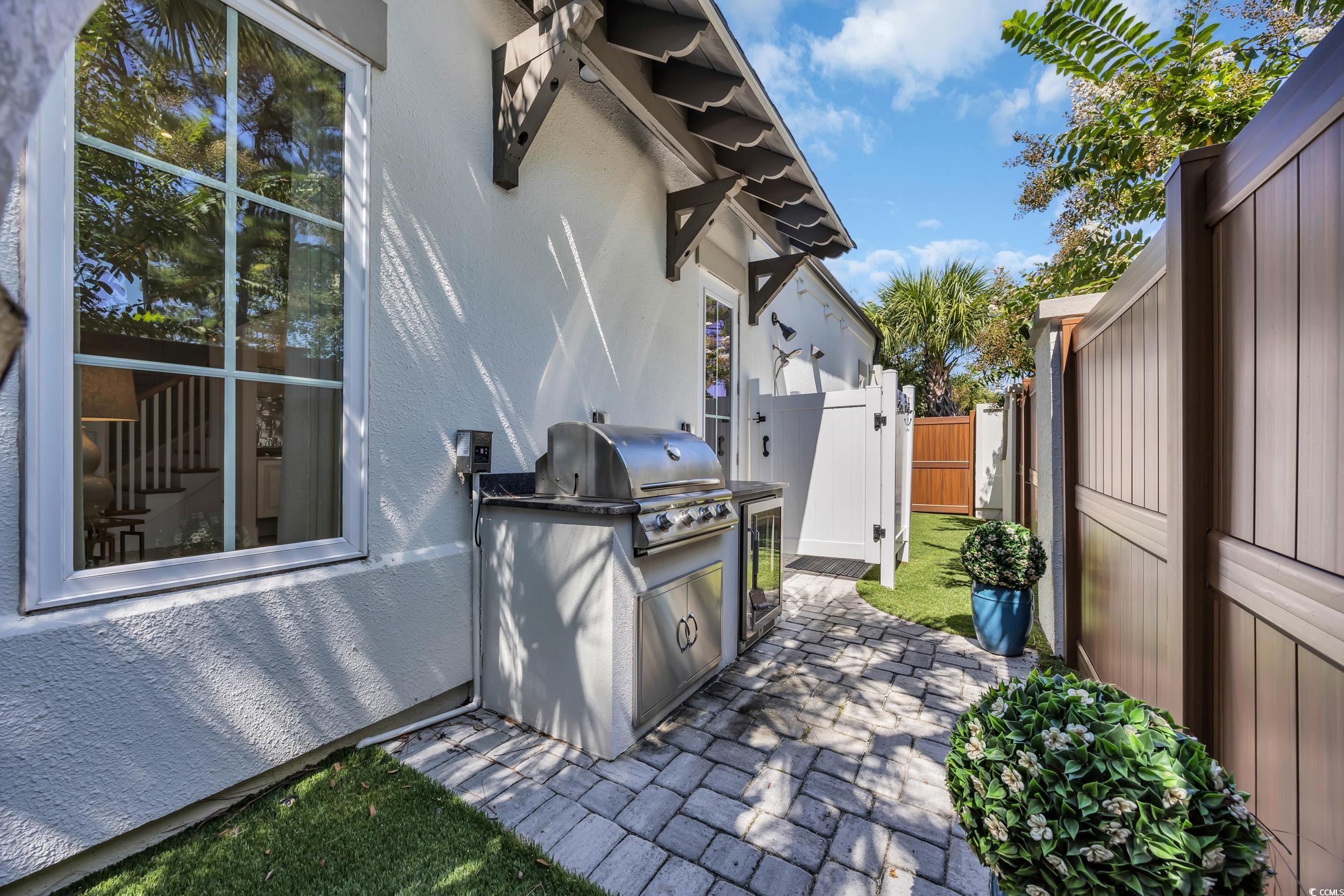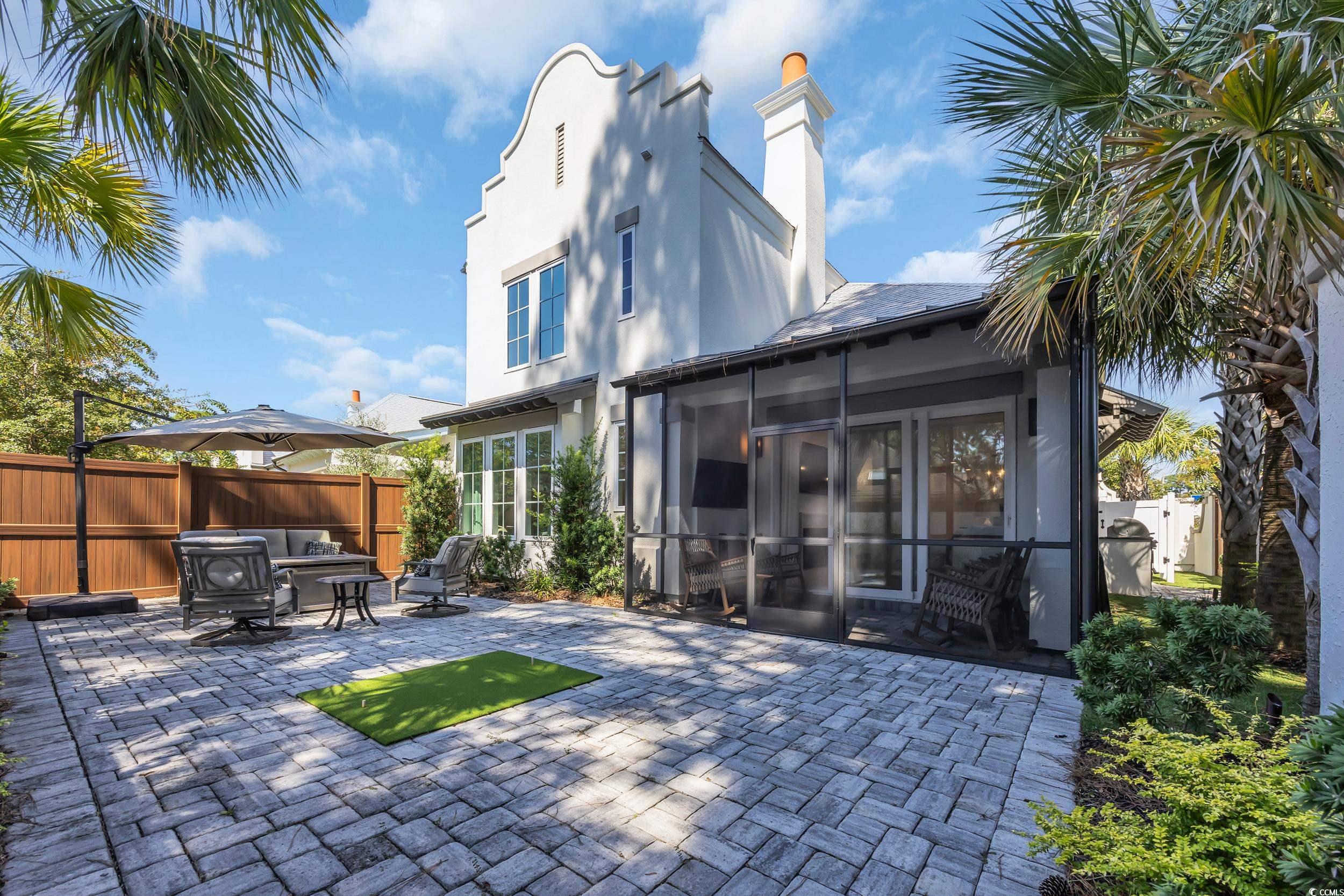 A rare opportunity awaits in 82 Dunes - This furnished home offers 3 spacious bedrooms, each with its own en suite bath, plus a loft and an additional half bath for convenience. Designed with both comfort and style in mind, the home showcases modern Dutch West Indies architecture and an open-concept layout with vaulted ceilings, abundant natural light, and a fireplace as the centerpiece. The kitchen is a true showpiece with quartz countertops, a large island, dual ovens, white stainless steel Café GE appliances, and soft-close cabinetry. A wet bar, recessed lighting, and porcelain wood-look tile flooring add to the upscale appeal. The primary suite is a private retreat featuring a spa-like bath with double vanities, soaking tub, walk-in shower, and custom melamine closet. Upstairs, the oversized loft provides flexibility for a media room, home office, or secondary living space, alongside two additional bedrooms with private baths. Step outside to a beautifully landscaped backyard with turf grass, a screened porch, paver patio, and an outdoor kitchen complete with gas grill—perfect for year-round entertaining. Additional upgrades include dual laundry, tankless water heater, rolled edge walls, and a large two-car garage. 82 Dunes is ideally located just a short walk or golf cart ride from the beach, golf, the marina, dining, shopping, and medical facilities. This home combines refined living with an unbeatable location—your personal coastal oasis at the heart of the Grand Strand.