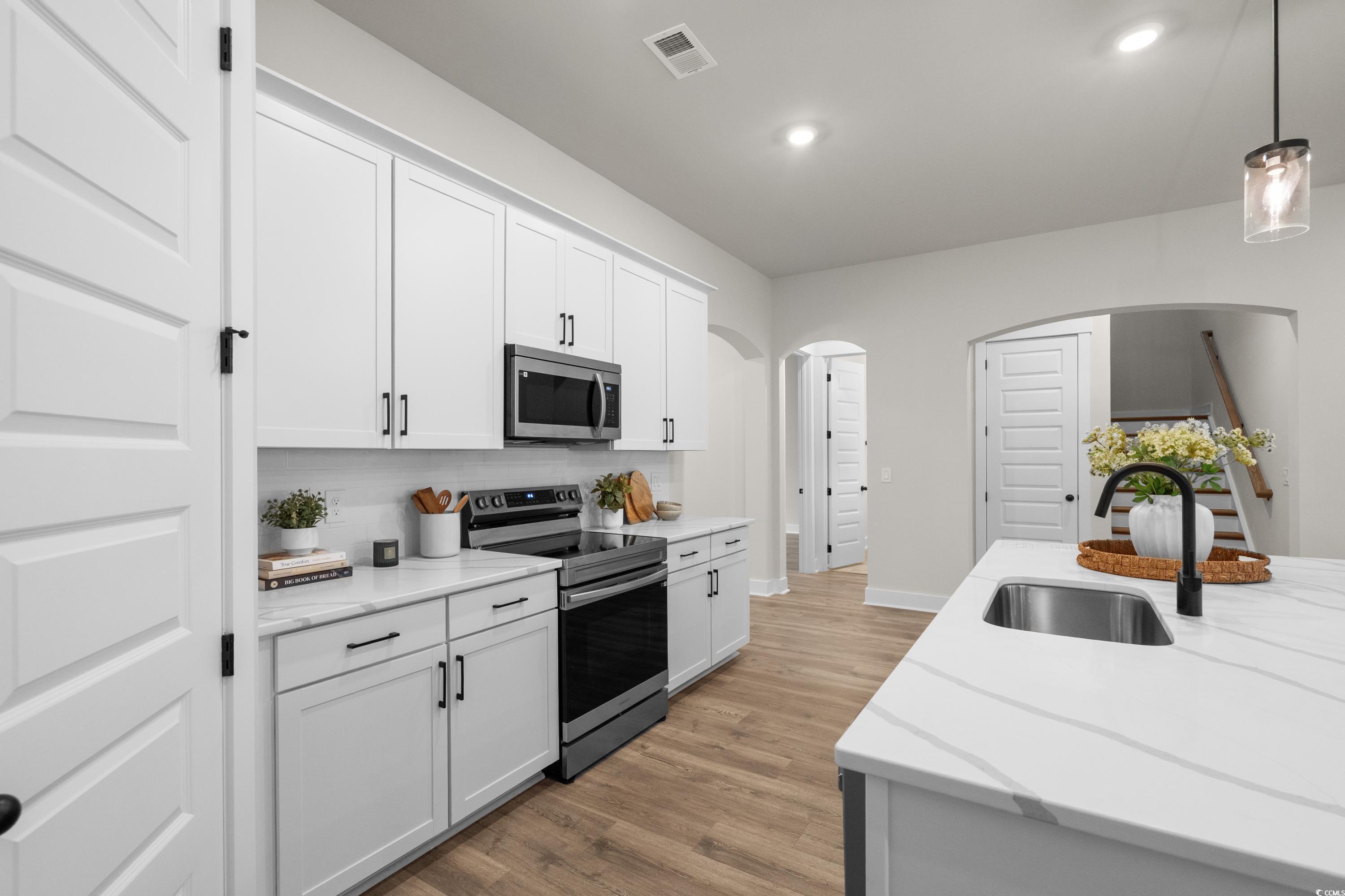 Introducing Harmony Township—where coastal living and nature take center stage. This move-in ready, new construction home by Hunter Quinn Homes is ideally located in the scenic waterfront community of Harmony Township, offering an exceptional setting for water and boating enthusiasts. The community features Friendfield Marina, which includes a day dock and community boat landing located on the Sampit River, providing deep-water access with the ability to navigate to the Intracoastal Waterway and onward to the Atlantic Ocean—perfect for boating, fishing, and coastal exploration. The Stono floor plan is thoughtfully designed to enhance everyday living with a layout that balances convenience and flexibility. The first floor serves as the heart of the home and features both the owner’s suite and a private guest suite, offering comfort and accessibility. An open-concept kitchen overlooks the spacious living area, creating an ideal space for entertaining and gathering. The second level includes two additional bedrooms, a shared bathroom, and a generously sized loft—perfect as a secondary living area, media space, or quiet retreat away from the main living areas. Surrounded by natural beauty, Harmony Township offers a peaceful Lowcountry setting with mature landscapes and abundant wildlife—ideal for those who appreciate privacy and a connection to nature. Located in Georgetown, South Carolina, this home offers easy access to historic downtown Georgetown and is conveniently situated approximately one hour from Charleston and within 20 minutes of the beaches of Pawleys Island, providing the perfect balance of coastal lifestyle and accessibility. With its desirable floor plan, waterfront amenities, and quality new construction, this home is ready for you to move in and enjoy the Lowcountry lifestyle. Private Boat Slip Available