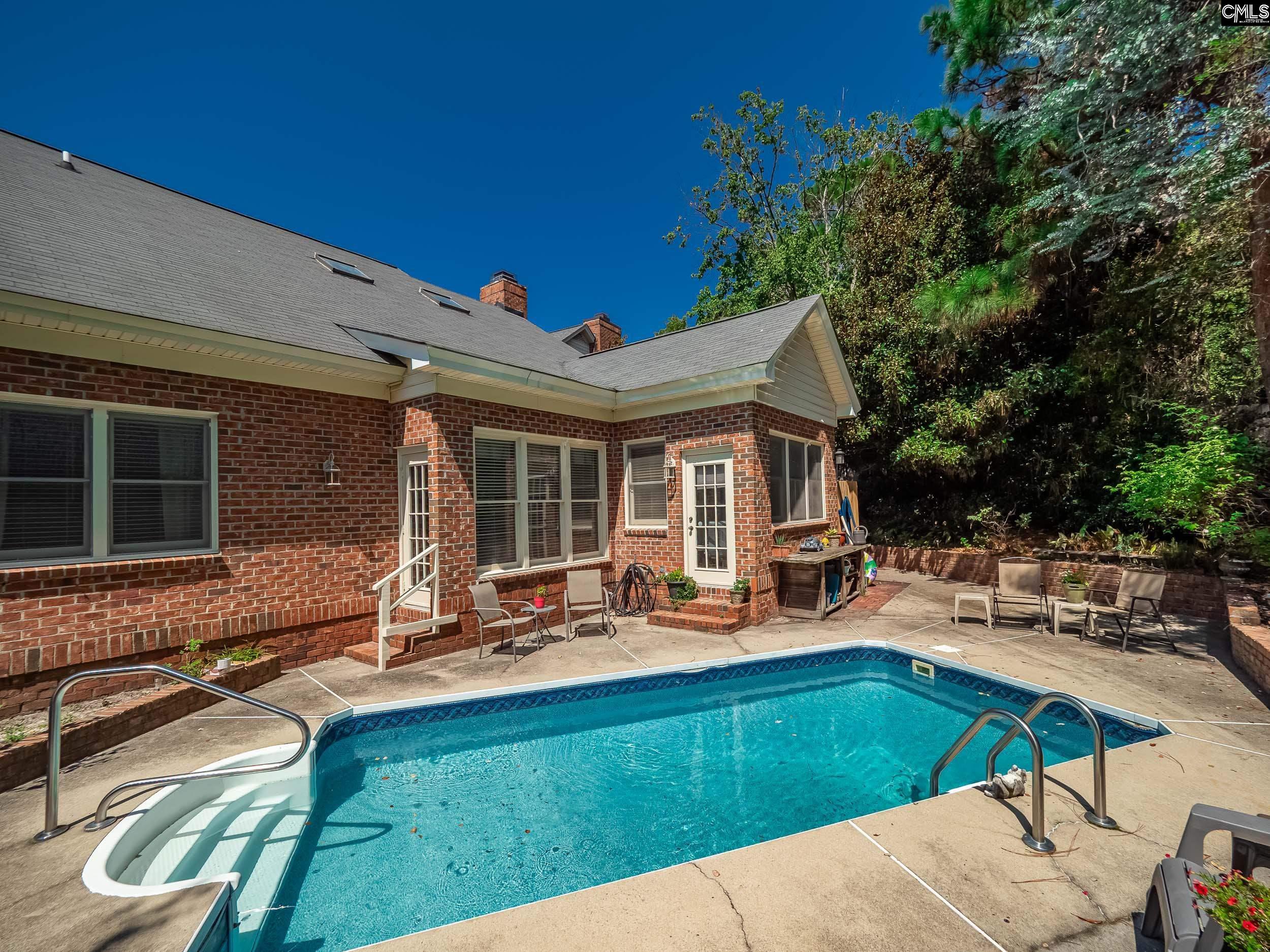 Easy to maintain, all brick 3BR home with 2 car garage for sale in established neighborhood - Polo Ridge. Spacious with formal living, dining, sunroom and living room. Eat-in kitchen with stainless steel appliances, wood cabinets, tiled backsplash and island. Owners' suite on main level with private bathroom. Third bedroom on second floor with skylight and built-in bookshelves. Entertaining space with inground pool and patio. Private backyard with wood fencing and trees. Disclaimer: CMLS has not reviewed and, therefore, does not endorse vendors who may appear in listings.