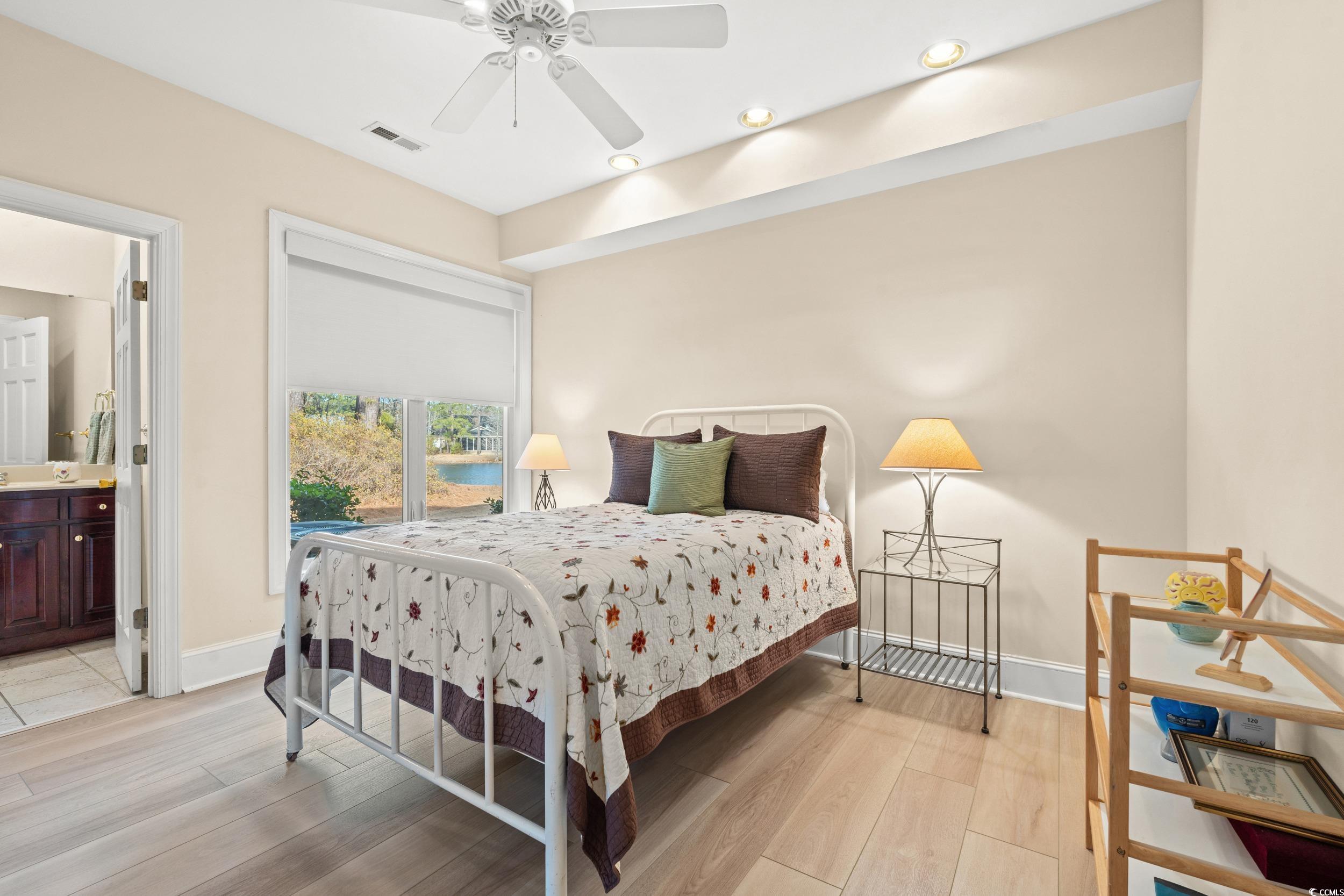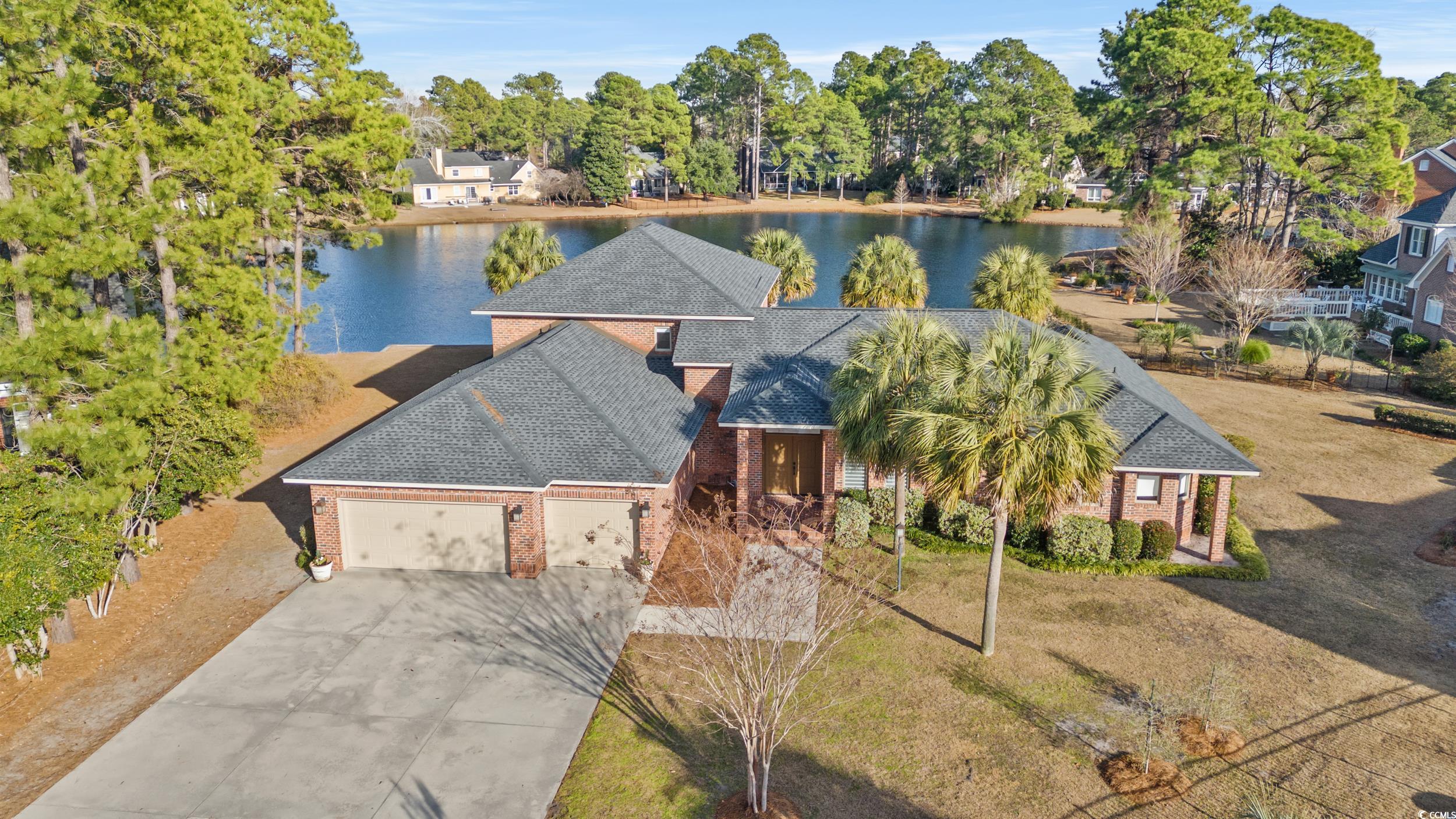 Welcome to this exquisite all brick home located in the highly desirable Forest Lake Estates, nestled within the Burning Ridge Golf Club. Set on a 0.45-acre lot with picturesque lake views, this spacious 5-bedroom, 4 ½-bathroom home offers the perfect blend of comfort, style, and convenience. As you enter the home, you’ll immediately be greeted by the inviting atmosphere, accentuated by 9-foot ceilings throughout. The first-floor primary suite serves as your private retreat, featuring a cozy sitting area, an expansive walk-in closet, and a luxurious en-suite bath complete with dual sinks, a jetted tub, a separate shower, and plenty of storage. Also on the main floor, you'll find an additional bedroom with its own private bathroom, and a convenient half-bath for guests. The heart of the home is the well-appointed kitchen, which boasts classic white cabinetry, a pantry, and a bright breakfast area perfect for casual dining. Adjacent to the kitchen is the den, offering built-in shelves and a separate sitting area — all showcasing panoramic views of the lush backyard and serene lake. Upstairs, there are three more bedrooms, including one with a private bath and two sharing a Jack-and-Jill bath. A versatile flex space is also located on this level, providing endless possibilities as an office, craft room, or workout area. The home has been updated with new LVP flooring in many areas and fresh window treatments, offering a modern, neutral backdrop throughout. For added convenience, there is a spacious laundry room and a 3-car garage with an EV charger. The location offers the best of both worlds: a peaceful, lakefront setting, yet just minutes away from Conway Medical Center, Coastal Carolina University, and downtown Conway. Myrtle Beach is also within easy reach, making this home ideal for both relaxation and accessibility.