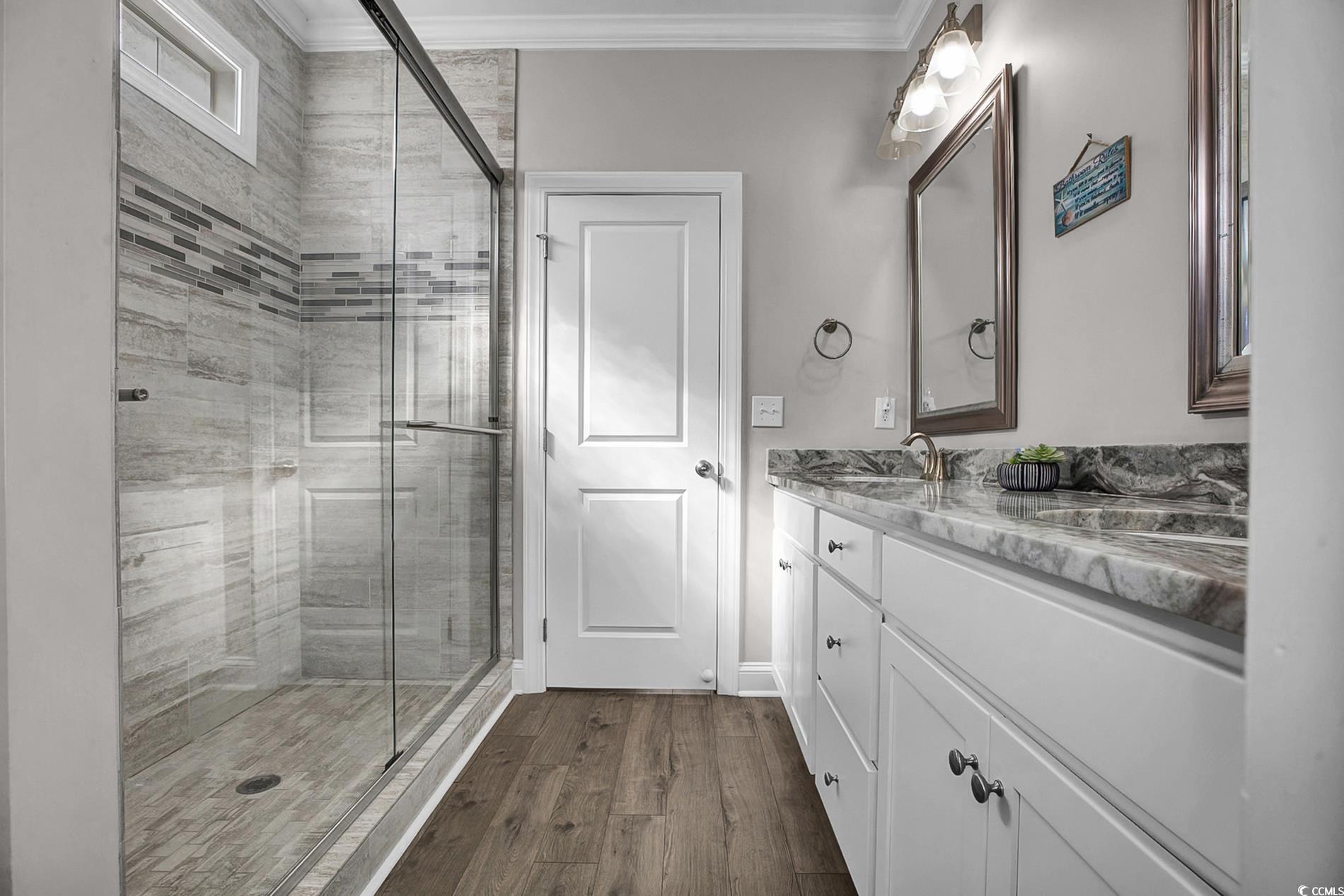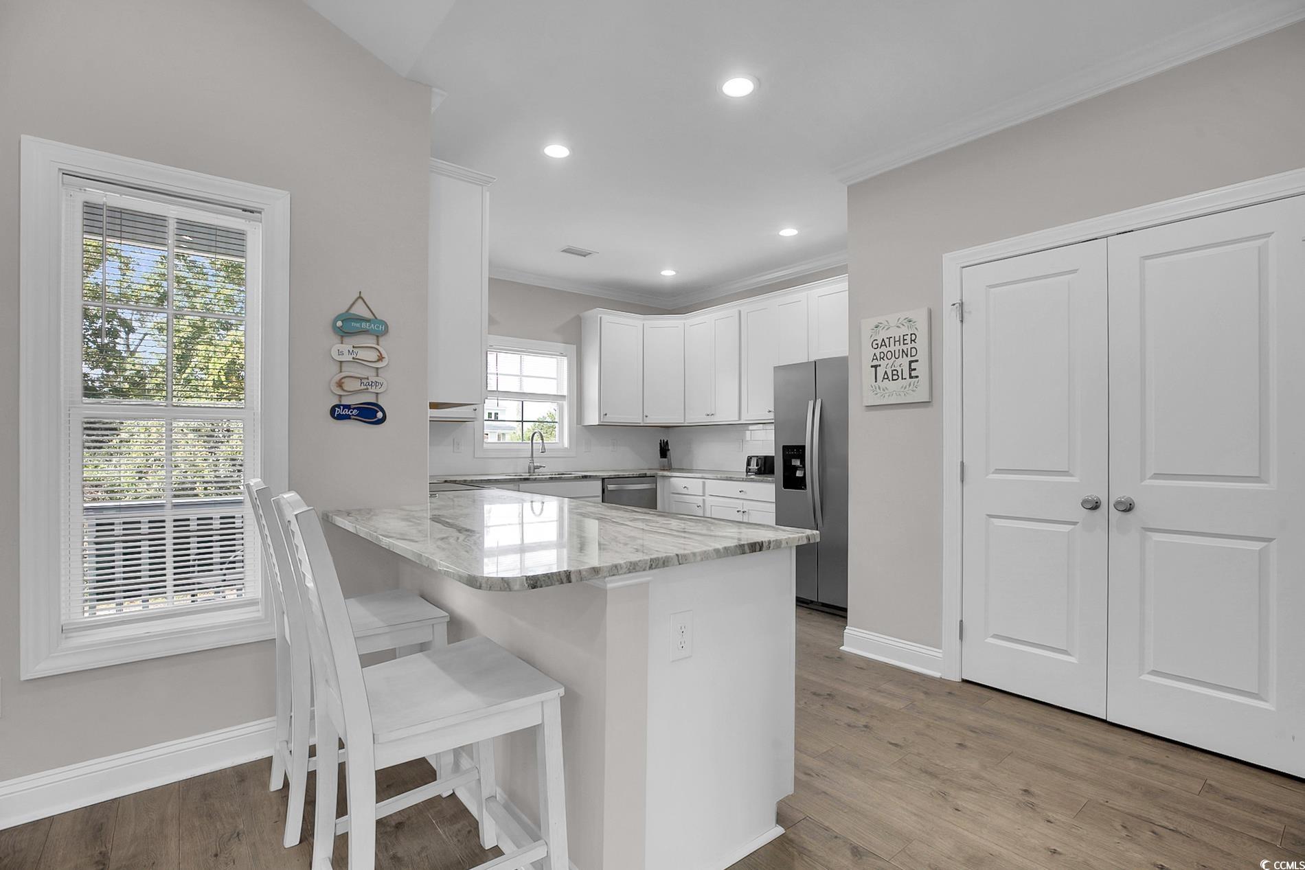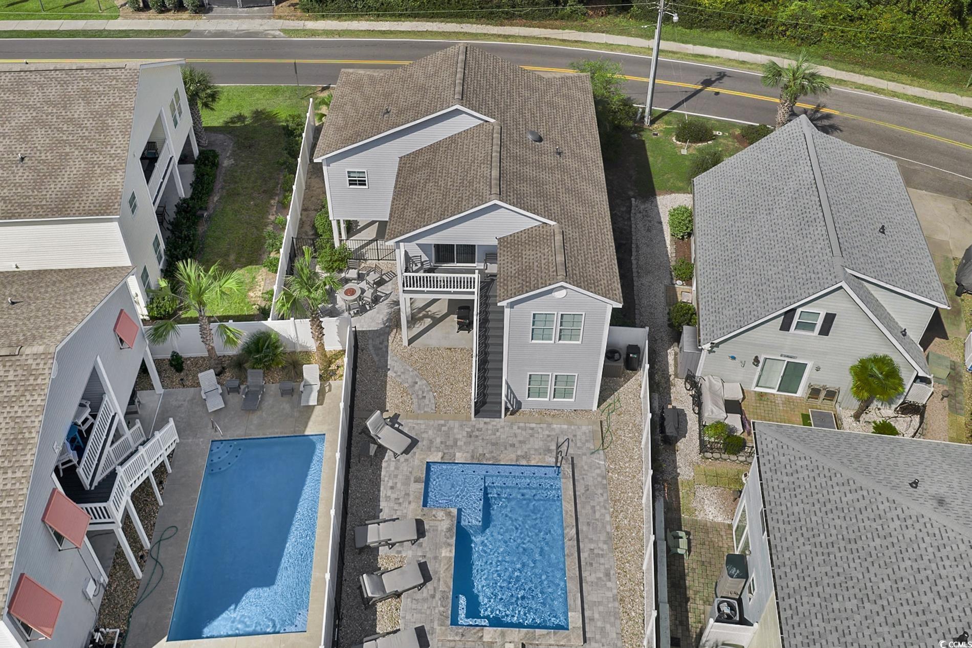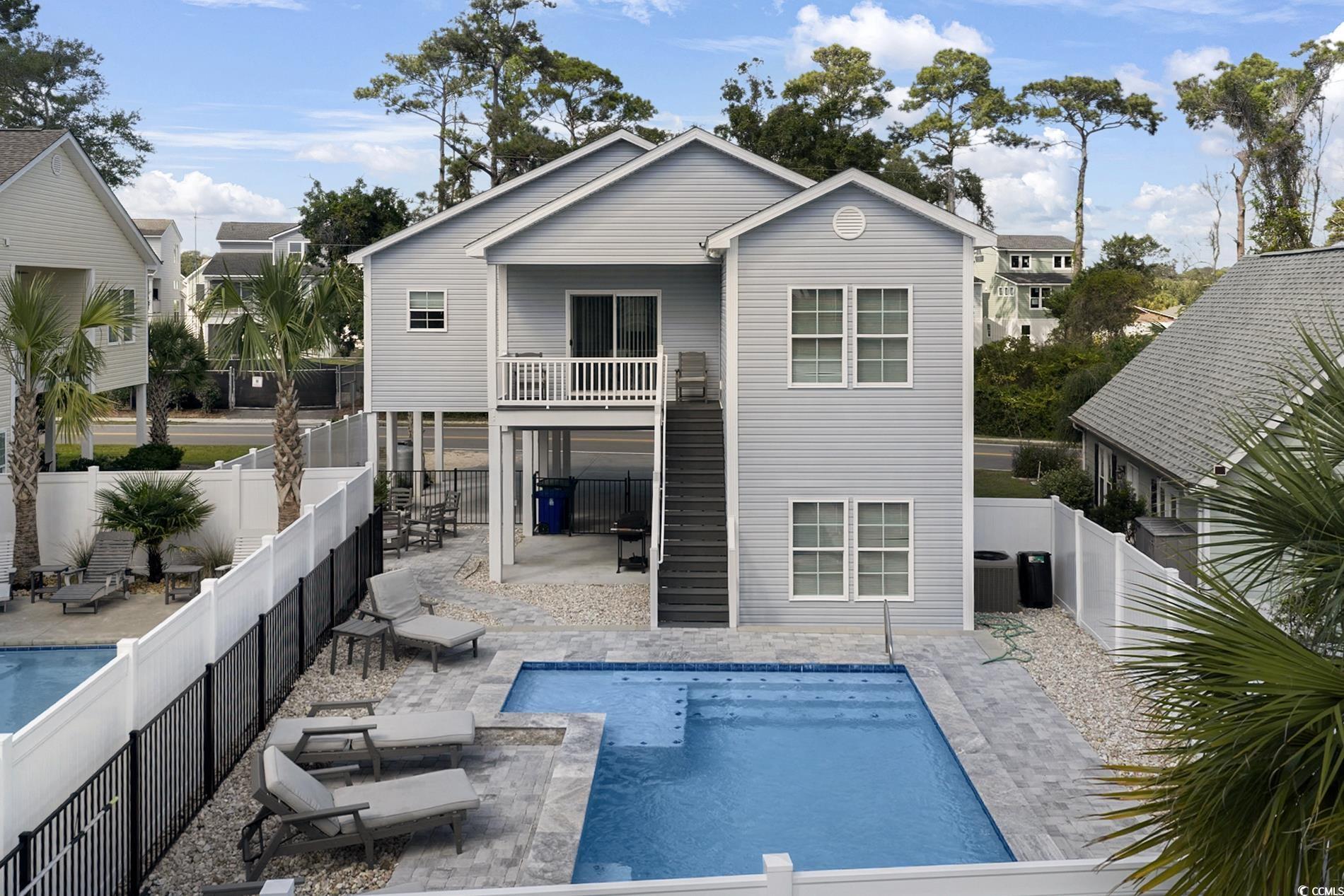 Your beachside dream begins at 825 Hillside Drive, just two blocks from the ocean in the heart of Crescent Beach, North Myrtle Beach. This raised beach home features 4 bedrooms and 3 baths, offering a flexible layout with 2 bedrooms and 2 baths upstairs, plus 2 bedrooms and 1 bath downstairs perfect for guests or generating rental income. Inside, you'll find high-end finishes like granite countertops, crown molding, tile showers, and stainless-steel appliances. The spacious design is ideal for both relaxing and entertaining. Step outside to your private oasis, complete with a beautiful inground pool, cozy fire pit, and inviting sitting area. Enjoy the coastal breeze from the front and rear porches, and take advantage of ample parking with room for your boat or golf cart. Located just a short walk or ride to the beach and minutes from Barefoot Landing, top dining, golf, and entertainment, this home checks every box—whether you're looking for a vacation retreat, investment property, or your forever home.