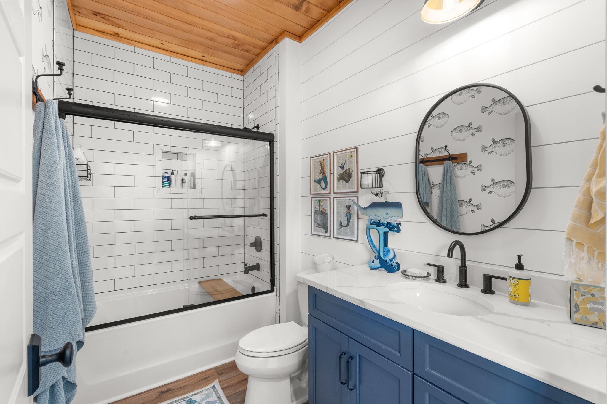 Beautiful Lowcountry 4 bedroom 3 and half bathroom with study style home, offering the perfect blend of modern comfort and timeless coastal charm. Nestled on a spacious homesite with mature trees and a welcoming circular drive, this property features a classic wraparound porch with inlet views!!! Ideal for relaxing mornings and evening gatherings. Inside, you’ll find an open, light-filled floor plan with warm wood flooring, shiplap accents, and a stunning coffered ceiling in the living area. The chef’s kitchen showcases quartz countertops, custom cabinetry, stainless steel appliances, gas range, farmhouse sink, and designer finishes throughout. Each room has been carefully curated with stylish finishes, neutral tones, and quality craftsmanship, providing a move in ready home that feels both elevated and comfortable. From cozy living spaces to practical storage and thoughtful upgrades, every detail has been considered. Conveniently located close to shopping, dining, schools, and just a short drive to the beach, this home offers the perfect combination of privacy and accessibility. Enjoy the charm of Lowcountry living with all the modern amenities you’ve been looking for. Don’t miss the opportunity to make this exceptional property your own.