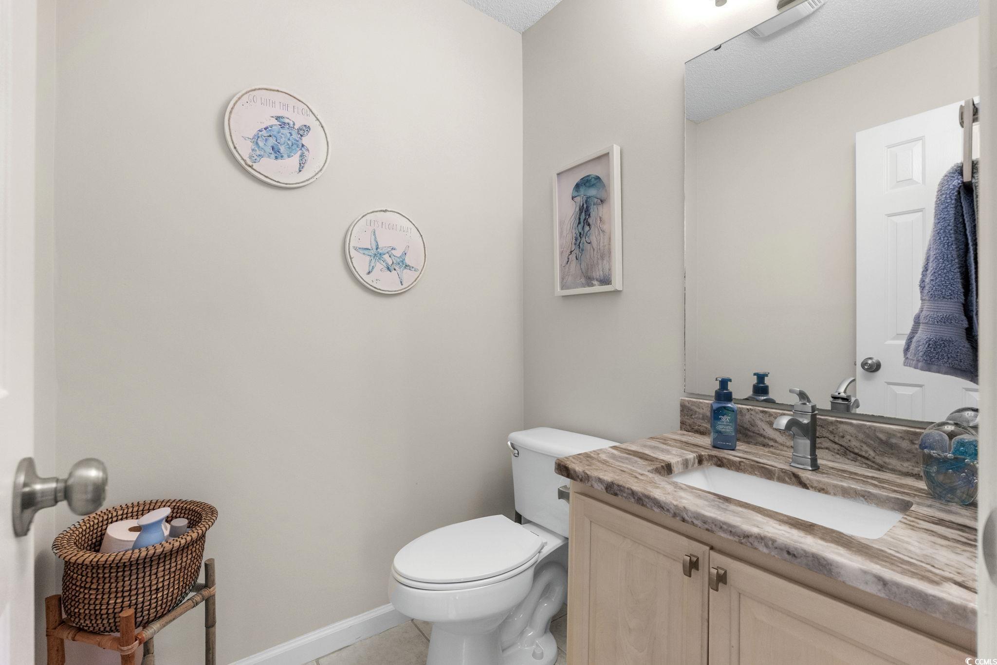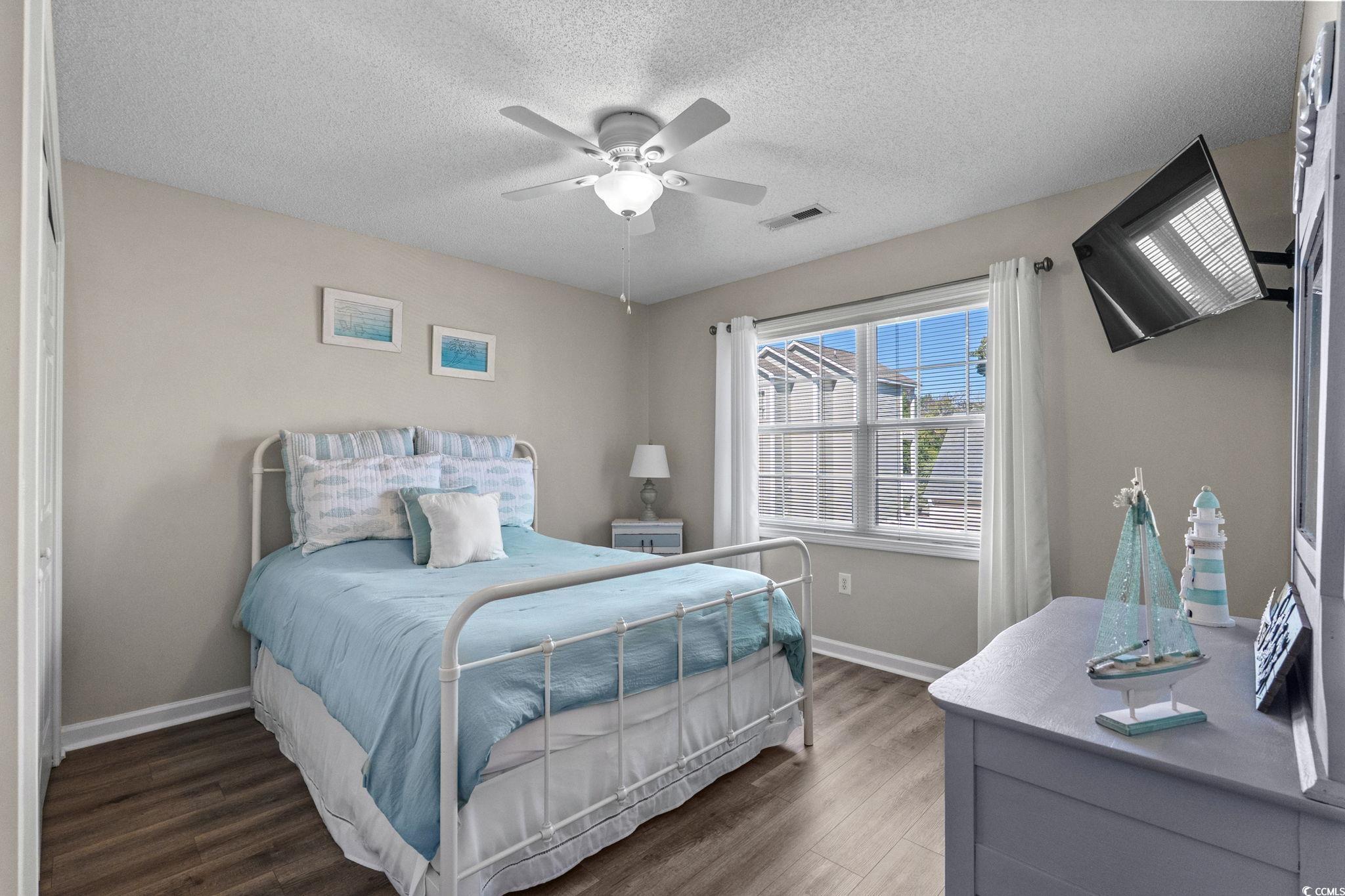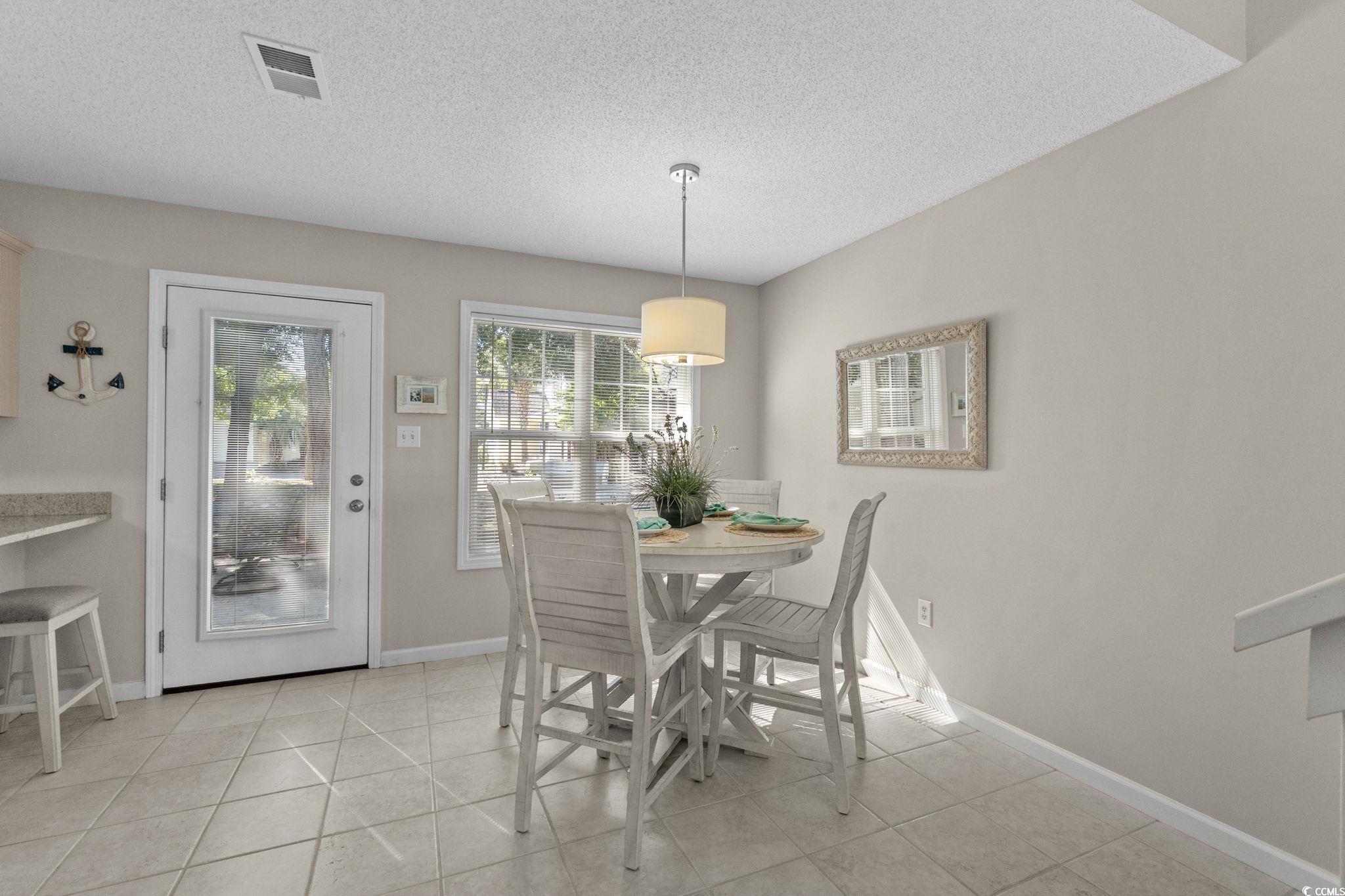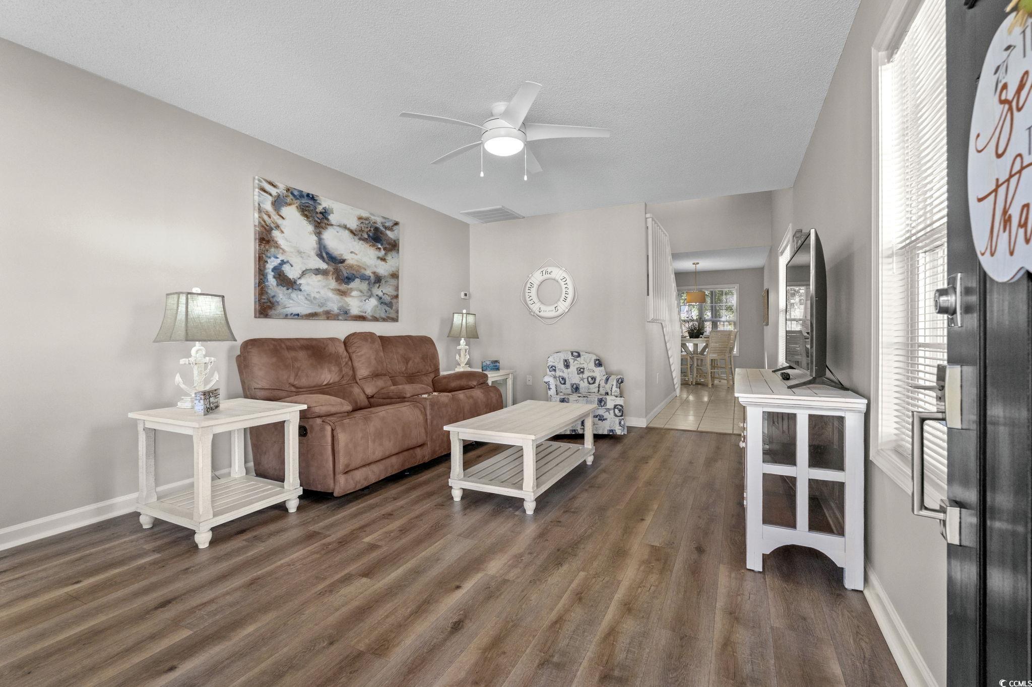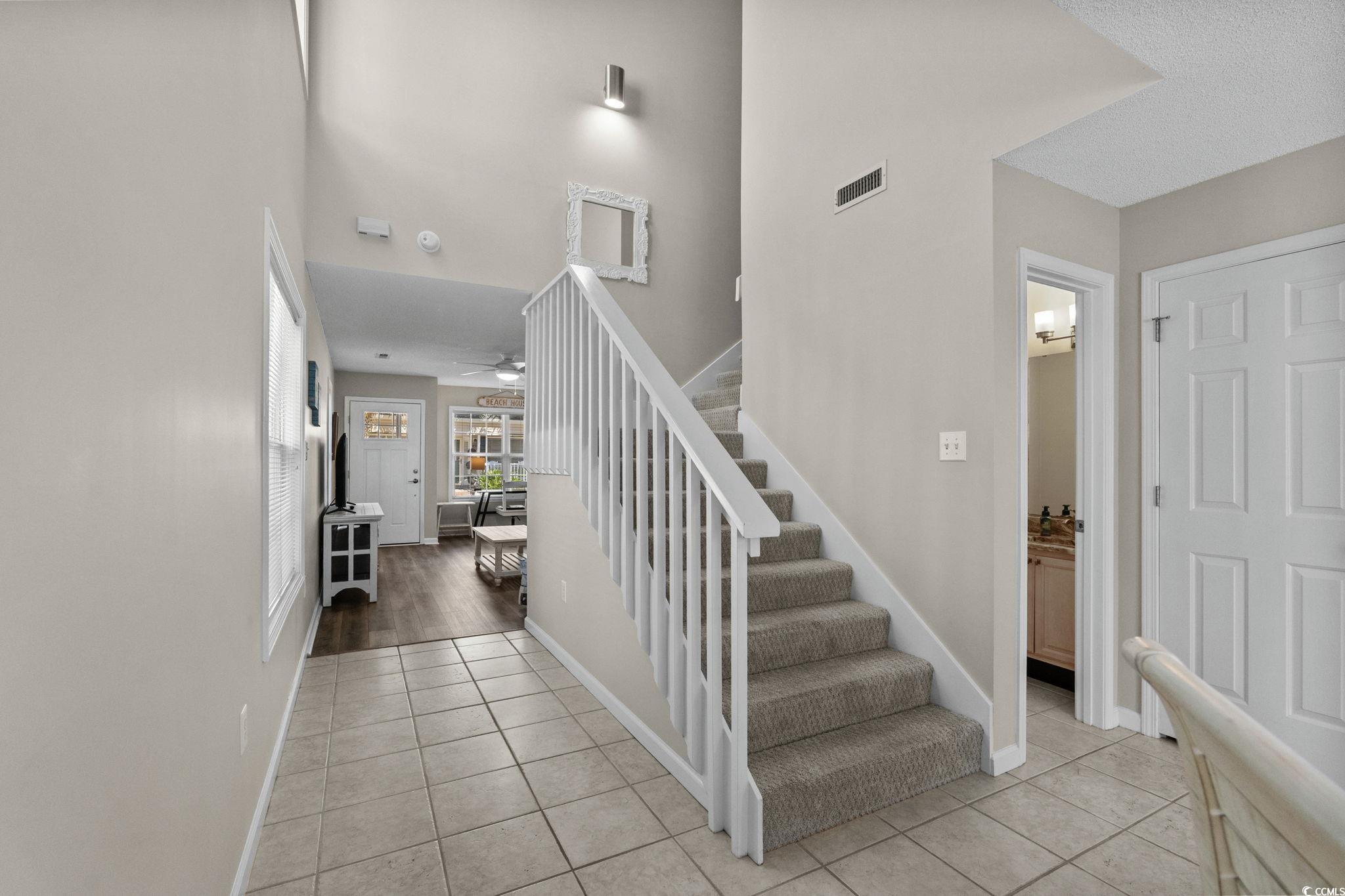 Well-maintained 3 bedroom, 2 ½ bath home in Palmwood Estates located east of Hwy 17 in the Ocean Drive section of North Myrtle Beach. With approximately 1,629 heated square feet, this two-story property features an attached one-car garage with a mounted TV and driveway space for 2 more cars. Home is being sold mostly furnished, making it a great opportunity for buyers seeking a primary residence, vacation home, or investment property. Home is conveniently located a few blocks from the beach allowing for a short walk or quick golf cart ride to the ocean. Recent updates include two new heating and air units installed in 2021 and a new roof completed by Monarch Roofing in 2023. The home has upgraded luxury vinyl plank throughout the family room, dining area and bedrooms, with tile in the kitchen, laundry and bathrooms. The first floor features a nice sized 11’9” x 22’8” family room with a ceiling fan and lots of windows for abundant natural light. The kitchen offers granite countertops with an undermount sink, ample cabinetry including a pantry cabinet, and stainless steel appliances which include a refrigerator, a new dishwasher (2025), and smooth top stove with microwave above. The adjacent dining area (11’3” x 11’) provides a comfortable space overlooking the backyard, ideal for everyday meals or entertaining. The nice-sized laundry room accommodates a side-by-side washer and dryer (2020), shelving storage above, utility sink, and an additional storage closet. All appliances convey with the home. Upstairs, the spacious primary suite (16’7” x 14’5”) includes two closets, a ceiling fan, and an updated bathroom with a double-sink granite vanity, a linen closet, and a recently installed 5’ walk-in shower (2022) with modern glass sliding doors. Two additional guest bedrooms, each with ceiling fans, are also located on the 2nd level, along with a guest bathroom that includes updated lighting, granite countertop, and a tub/shower combination. Additional features include a transferable termite bond from MidSouth Pest Control, outdoor shower, and access to a community clubhouse and large pool. Owners are allowed golf carts and pets. No short term rentals. The low HOA fee includes common area maintenance, pool and clubhouse maintenance and basic yard maintenance (grass mowing). Come see this beautiful home so close to everything North Myrtle Beach has to offer: shopping, restaurants, fishing, golfing, entertainment…and don’t forget the amazing Intracoastal Waterway and nearby sandy beaches of the Atlantic Ocean! Come see your new beach home today!