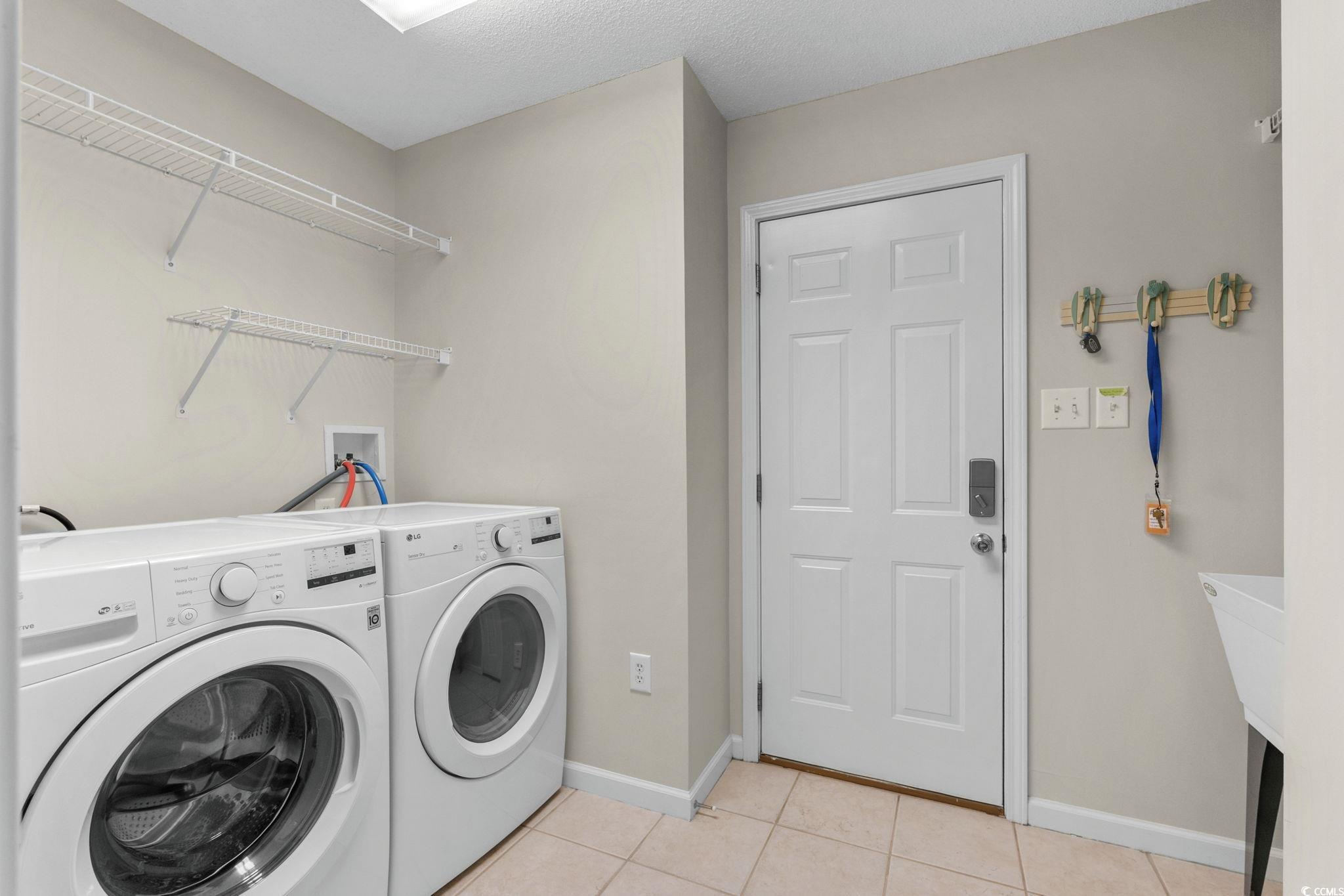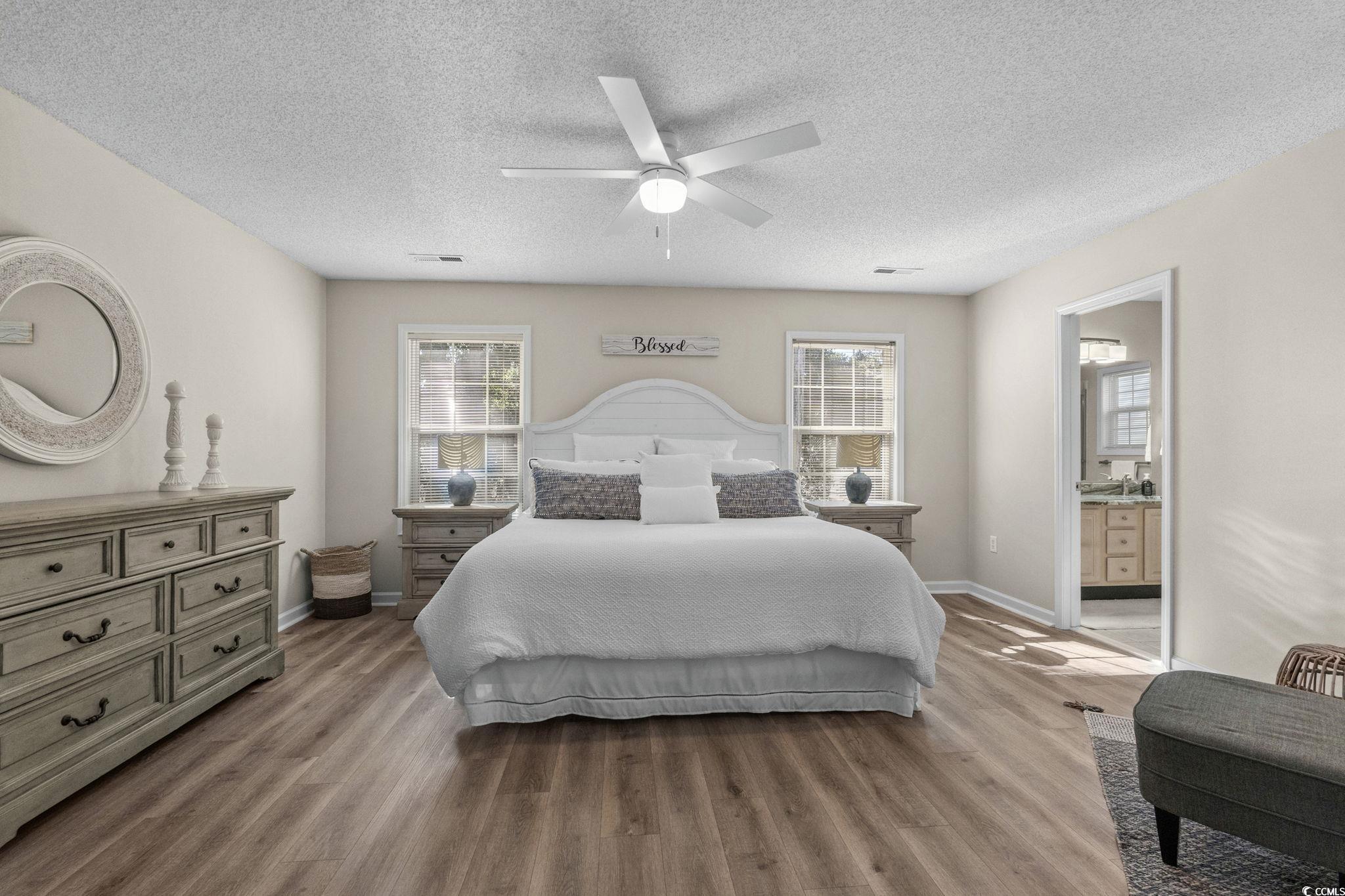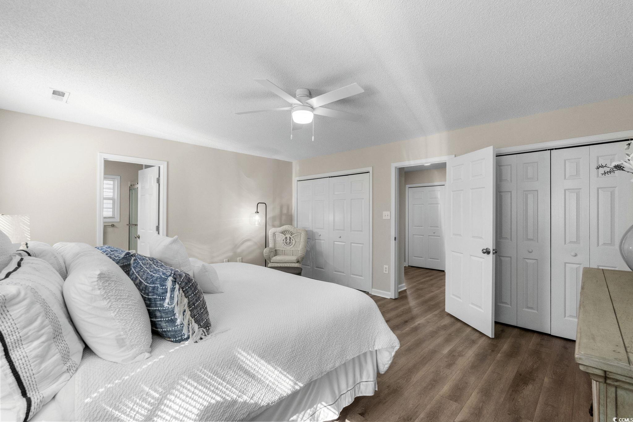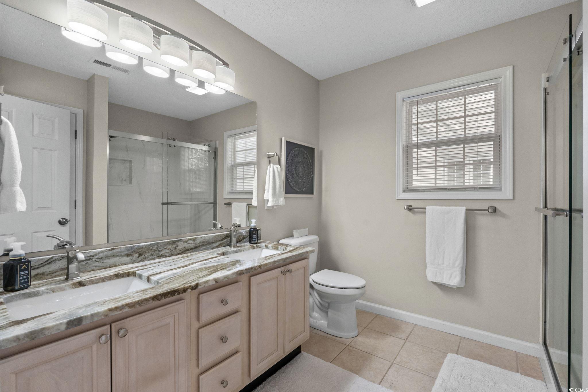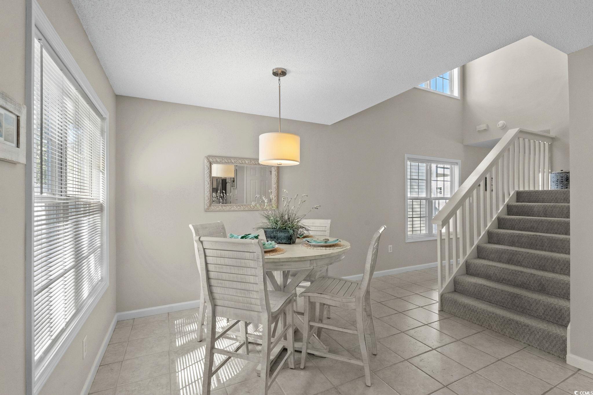 Well-maintained 3 bedroom, 2 ½ bath home in Palmwood Estates located east of Hwy 17 in the Ocean Drive section of North Myrtle Beach. With approximately 1,629 heated square feet, this two-story property features an attached one-car garage with a mounted TV and driveway space for 2 more cars. Home is being sold mostly furnished, making it a great opportunity for buyers seeking a primary residence, vacation home, or investment property. Home is conveniently located a few blocks from the beach allowing for a short walk or quick golf cart ride to the ocean. Recent updates include two new heating and air units installed in 2021 and a new roof completed by Monarch Roofing in 2023. The home has upgraded luxury vinyl plank throughout the family room, dining area and bedrooms, with tile in the kitchen, laundry and bathrooms. The first floor features a nice sized 11’9” x 22’8” family room with a ceiling fan and lots of windows for abundant natural light. The kitchen offers granite countertops with an undermount sink, ample cabinetry including a pantry cabinet, and stainless steel appliances which include a refrigerator, a new dishwasher (2025), and smooth top stove with microwave above. The adjacent dining area (11’3” x 11’) provides a comfortable space overlooking the backyard, ideal for everyday meals or entertaining. The nice-sized laundry room accommodates a side-by-side washer and dryer (2020), shelving storage above, utility sink, and an additional storage closet. All appliances convey with the home. Upstairs, the spacious primary suite (16’7” x 14’5”) includes two closets, a ceiling fan, and an updated bathroom with a double-sink granite vanity, a linen closet, and a recently installed 5’ walk-in shower (2022) with modern glass sliding doors. Two additional guest bedrooms, each with ceiling fans, are also located on the 2nd level, along with a guest bathroom that includes updated lighting, granite countertop, and a tub/shower combination. Additional features include a transferable termite bond from MidSouth Pest Control, outdoor shower, and access to a community clubhouse and large pool. Owners are allowed golf carts and pets. No short term rentals. The low HOA fee includes common area maintenance, pool and clubhouse maintenance and basic yard maintenance (grass mowing). Come see this beautiful home so close to everything North Myrtle Beach has to offer: shopping, restaurants, fishing, golfing, entertainment…and don’t forget the amazing Intracoastal Waterway and nearby sandy beaches of the Atlantic Ocean! Come see your new beach home today!