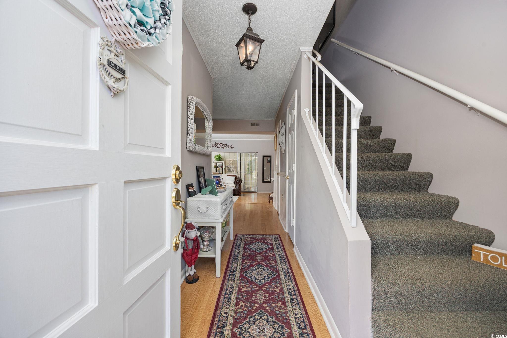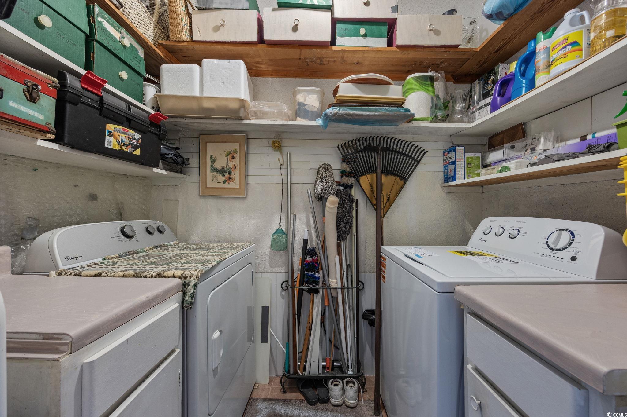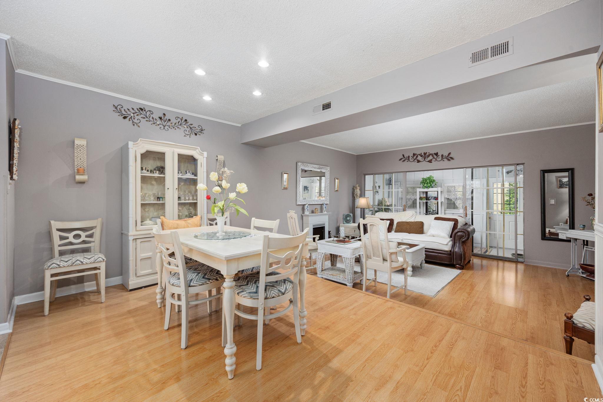 Welcome Home to 829 Villa Dr. in North Myrtle Beach! Discover a rare opportunity to own in the highly coveted community of Robbers Roost Villas, located east of Highway 17 in North Myrtle Beach. This beautifully decorated townhome-style condo offers the perfect coastal lifestyle, just a short golf cart ride away from the sandy shores. SHORT-TERM RENTALS ARE ALLOWED, making this property ideal for personal enjoyment or investment purposes! Step inside this meticulously maintained open floor living and thoughtful charming features. The kitchen features tile flooring, white cabinets and white appliances for a clean modern appearance. The laminate flooring on the main level adds both elegance and durability. The Carolina Room is not just a sunlit retreat but also home to the laundry closet, which includes a washer and dryer, cabinets/counter space and shelving. On the main level, a convenient half bathroom ensures guest comfort and accessibility. Step outside to the back patio, where lush landscaping creates a private oasis—ideal for relaxing with a good book or hosting outdoor gatherings. Upstairs, you'll find two inviting bedrooms, each with its own ensuite bathroom. The primary bedroom features a private bathroom with a tub/shower combination. A highlight of the primary suite is the private deck, enjoy your morning coffee or evening sunset. The second bedroom also offers its own full bathroom with a tub/shower combo, providing added convenience and privacy for family or guests. Robbers Roost Villas further enhances your living experience with a community pool, providing a refreshing retreat during warm summer days. This prime North Myrtle Beach location is just minutes from top-rated schools, dining hotspots, shopping destinations, and, of course, the beach! With its partially furnished interior, this home is truly turn-key, ready for use as a primary residence, vacation getaway, or investment property. The HOA covers essential services such as basic cable/internet, trash, pool access, common area lawn care/maintenance, and building insurance—offering excellent value and convenience. Schedule your private tour today and start living the North Myrtle Beach lifestyle!