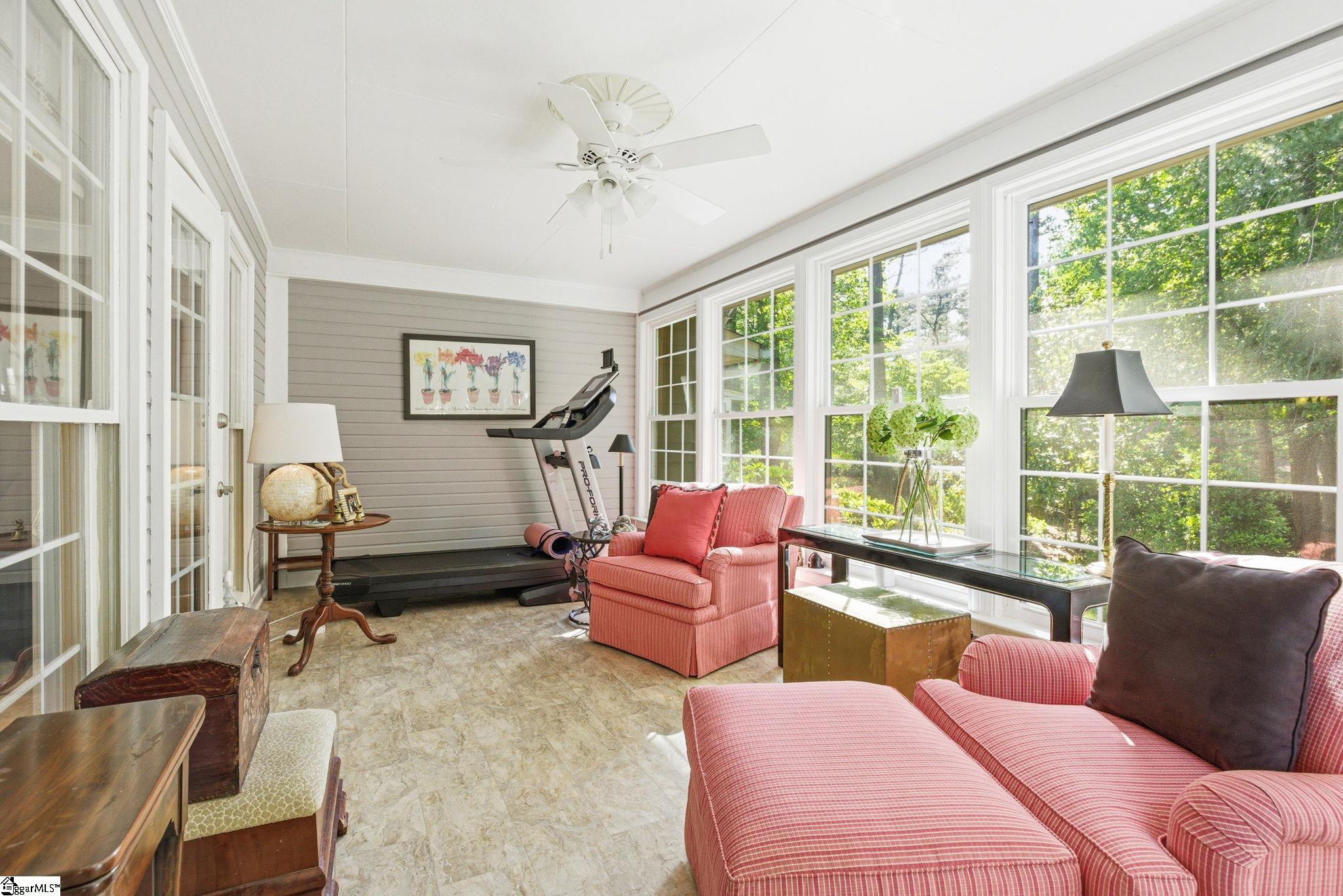Welcome home to your ground level 2BR 2BA condo in Spartanburg's best kept 55+ secret. Enjoy maintenance free living in this updated condo featuring granite countertops and stainless steel appliances. The cozy breakfast nook looks out to a beautiful wooded yard with all the spring beauty coming to life. A large great room has space for your dining furniture and lots of seating options in your living space with gas logs. Beautiful sunroom with tilt-out windows can be a flex space for exercise, office, or additional entertaining space. The guest room has a large walk in closet and close proximity to hall bath. The owners suite is oversized and has 2 large closets and an en-suite bath. Conveniently located near Hillcrest for shopping and restaurants.