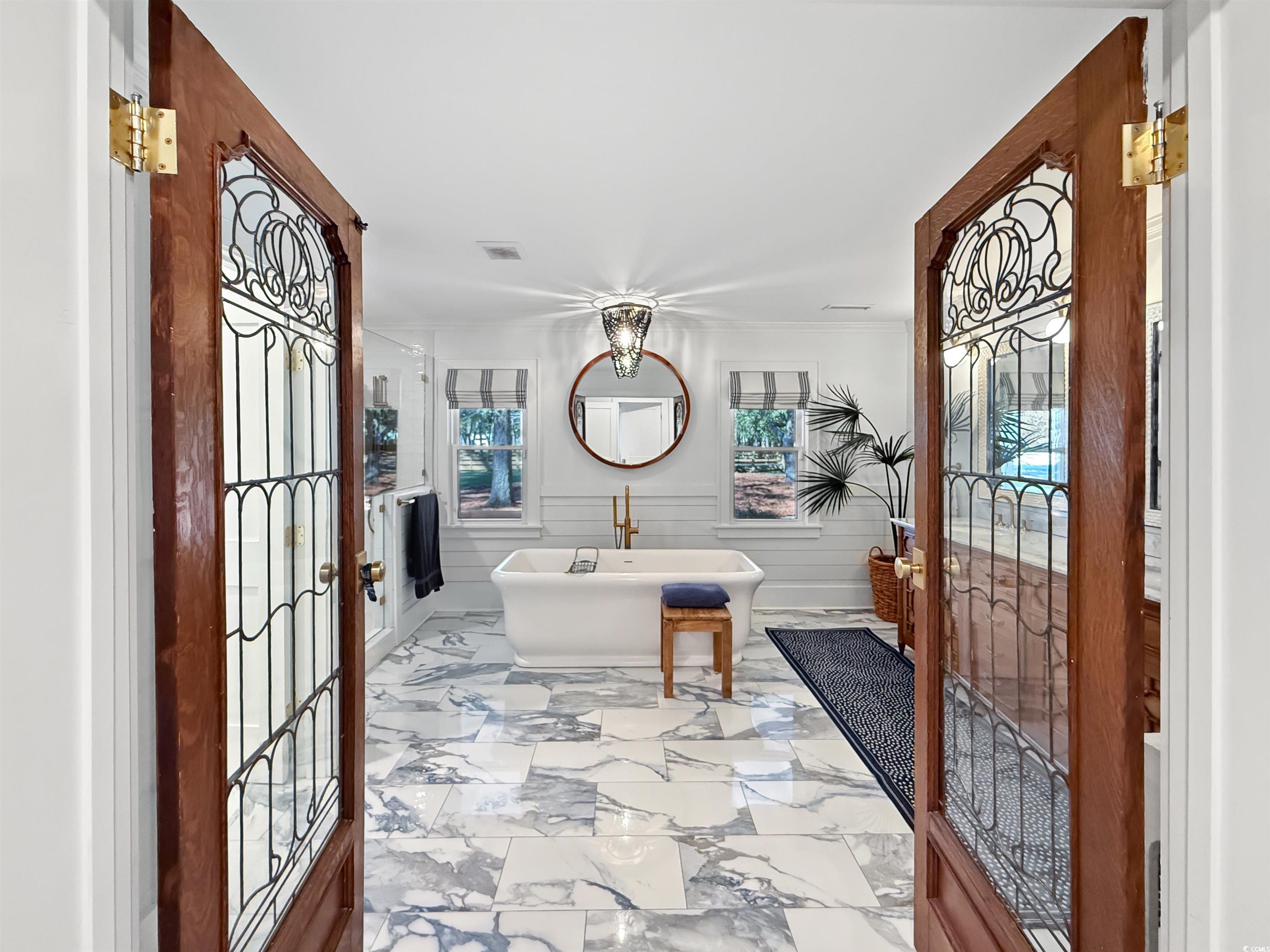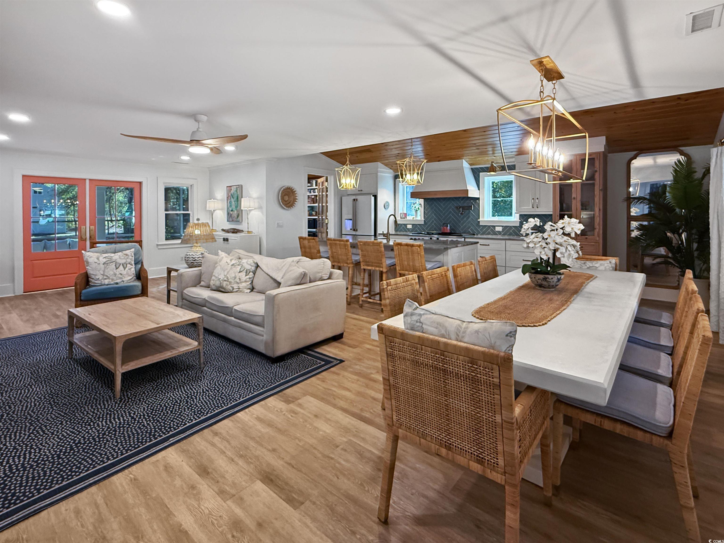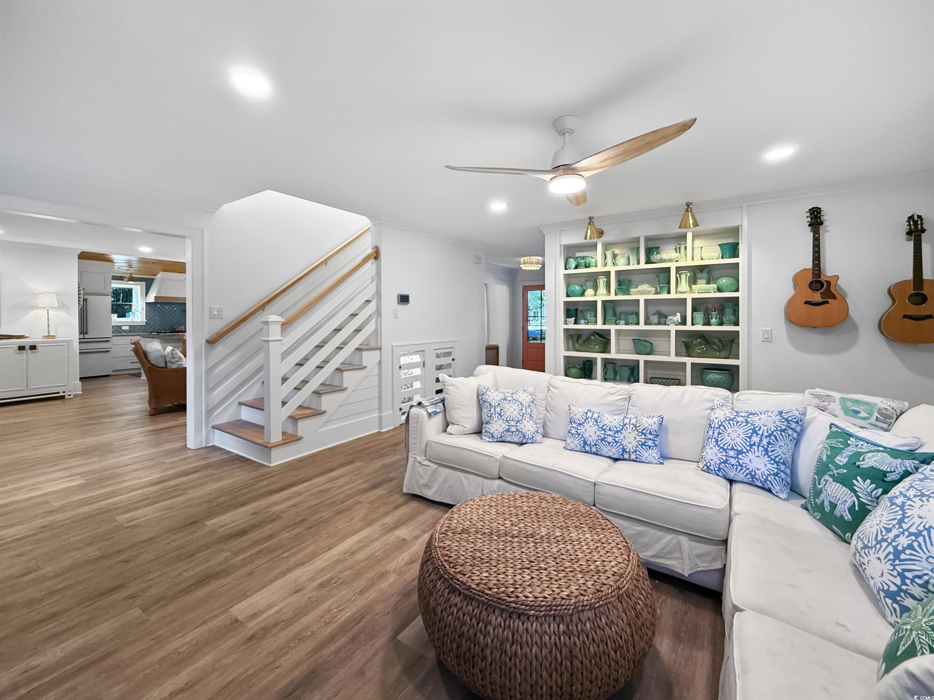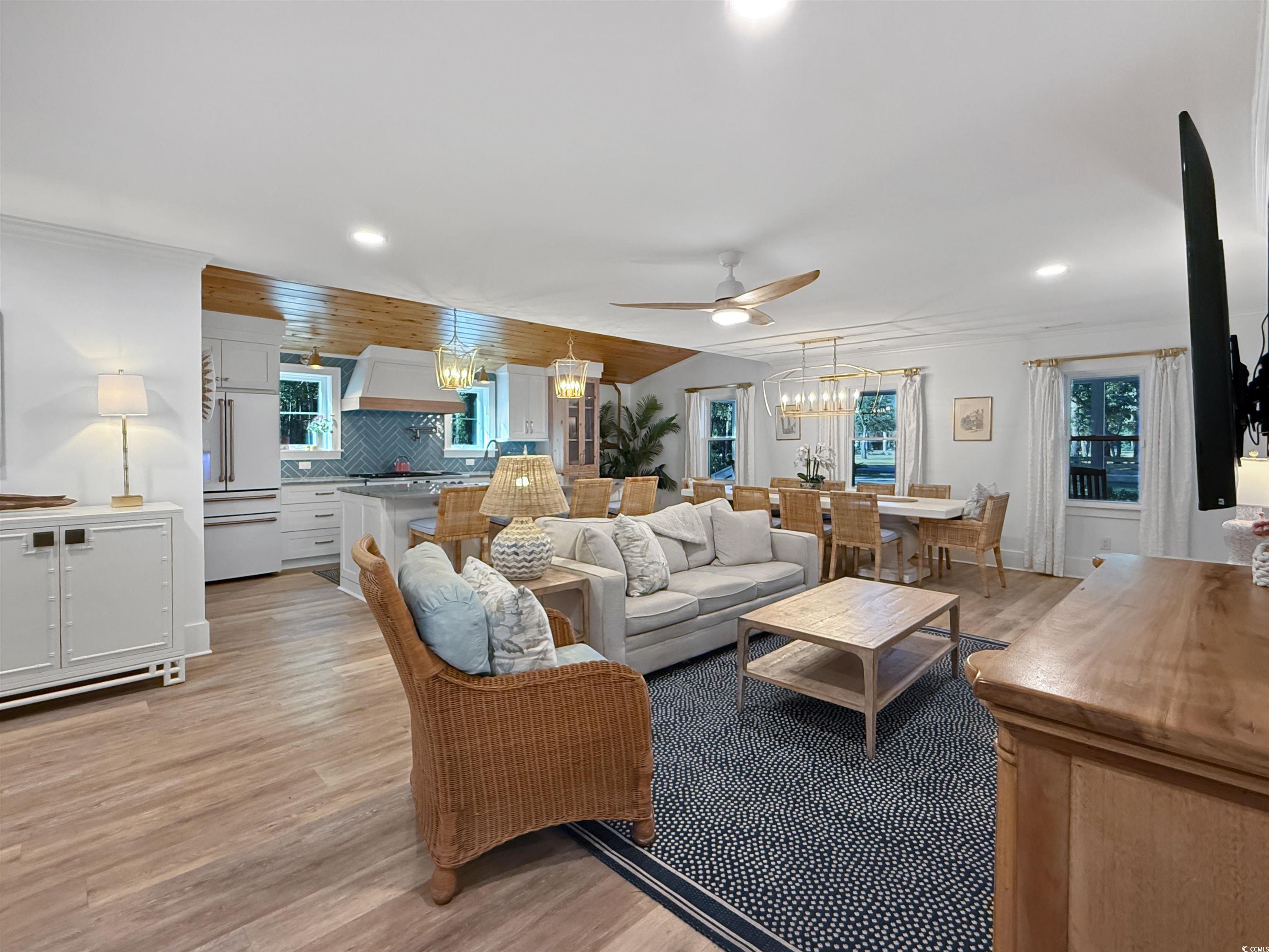 Discover rare privacy at 83 Hammock Ave. Set on a private one-acre lot with NO HOA, this 3,400 sq ft home was completely renovated to the studs in 2023. This 4-bed, 2.5-bath residence showcases quality, modern finishes throughout. The main floor features an open layout and a main-floor primary suite with a beautiful en-suite bath, including a freestanding tub and custom-tiled shower. Upstairs, find 3 additional bedrooms and a large landing. The full-acre lot offers unparalleled freedom. Add a pool, build a workshop, or park your boat with ease. Located just a golf cart ride from the beach or Waccamaw River landing, this property is the perfect blend of thoughtful design and ultimate freedom.