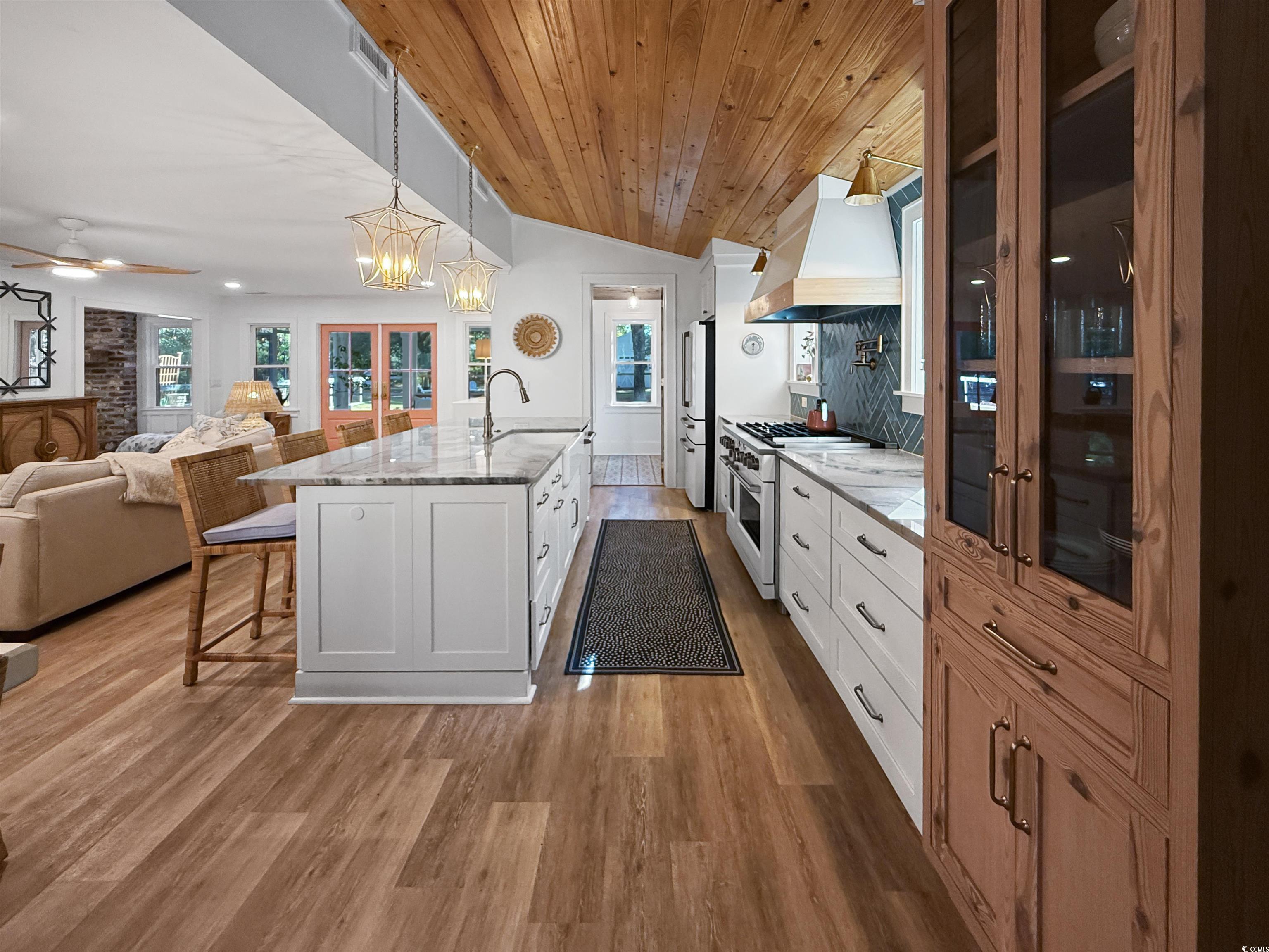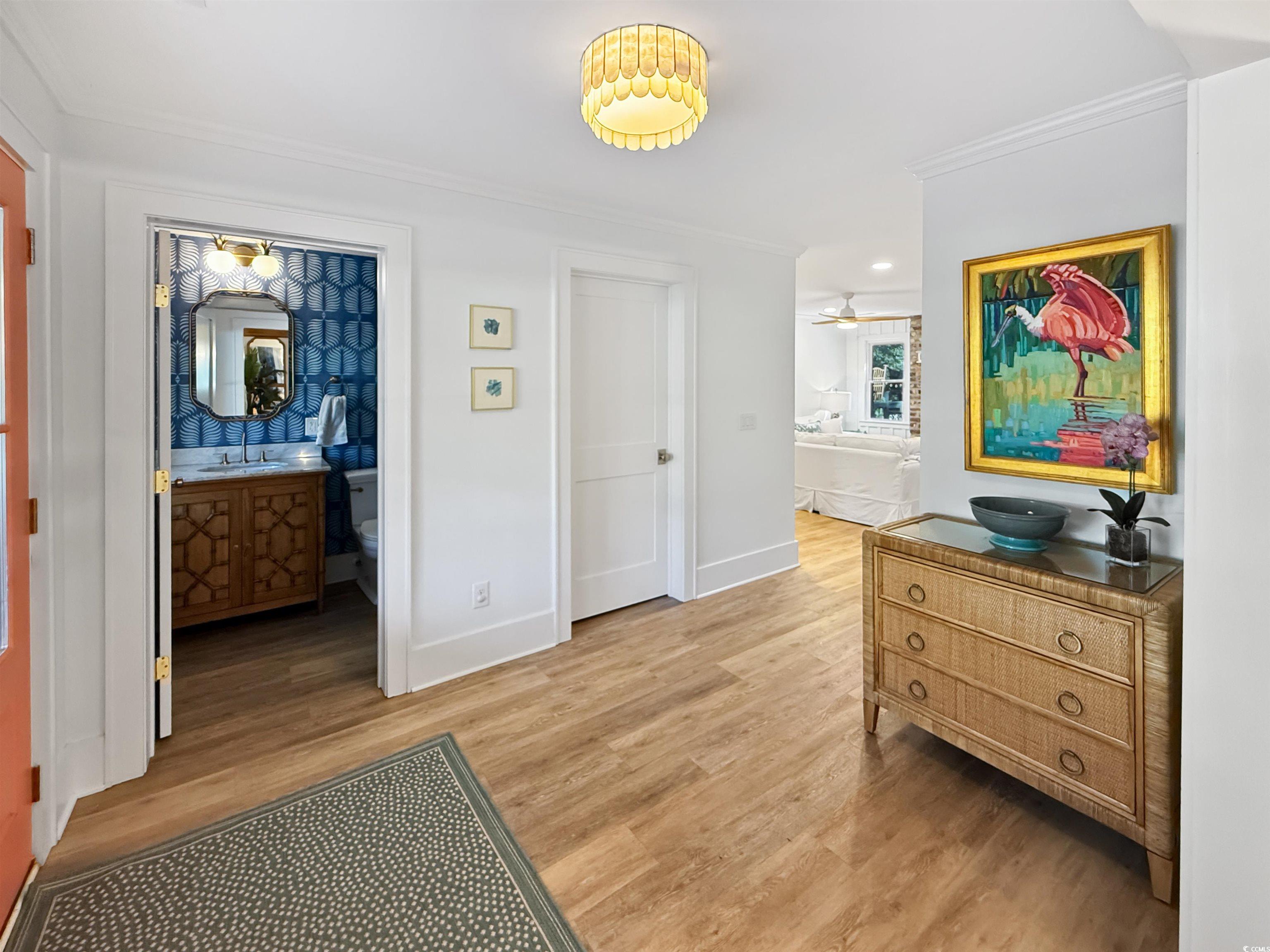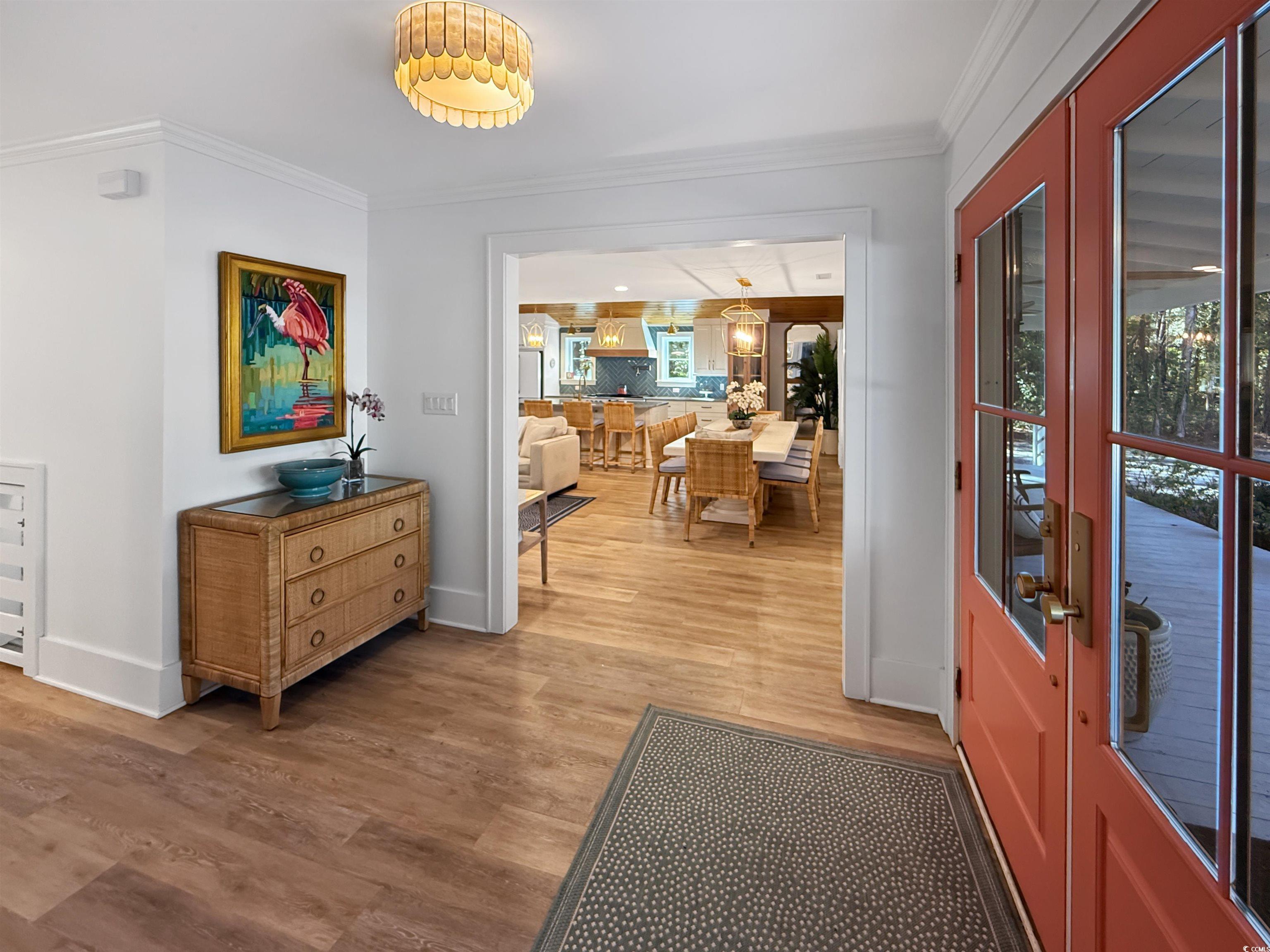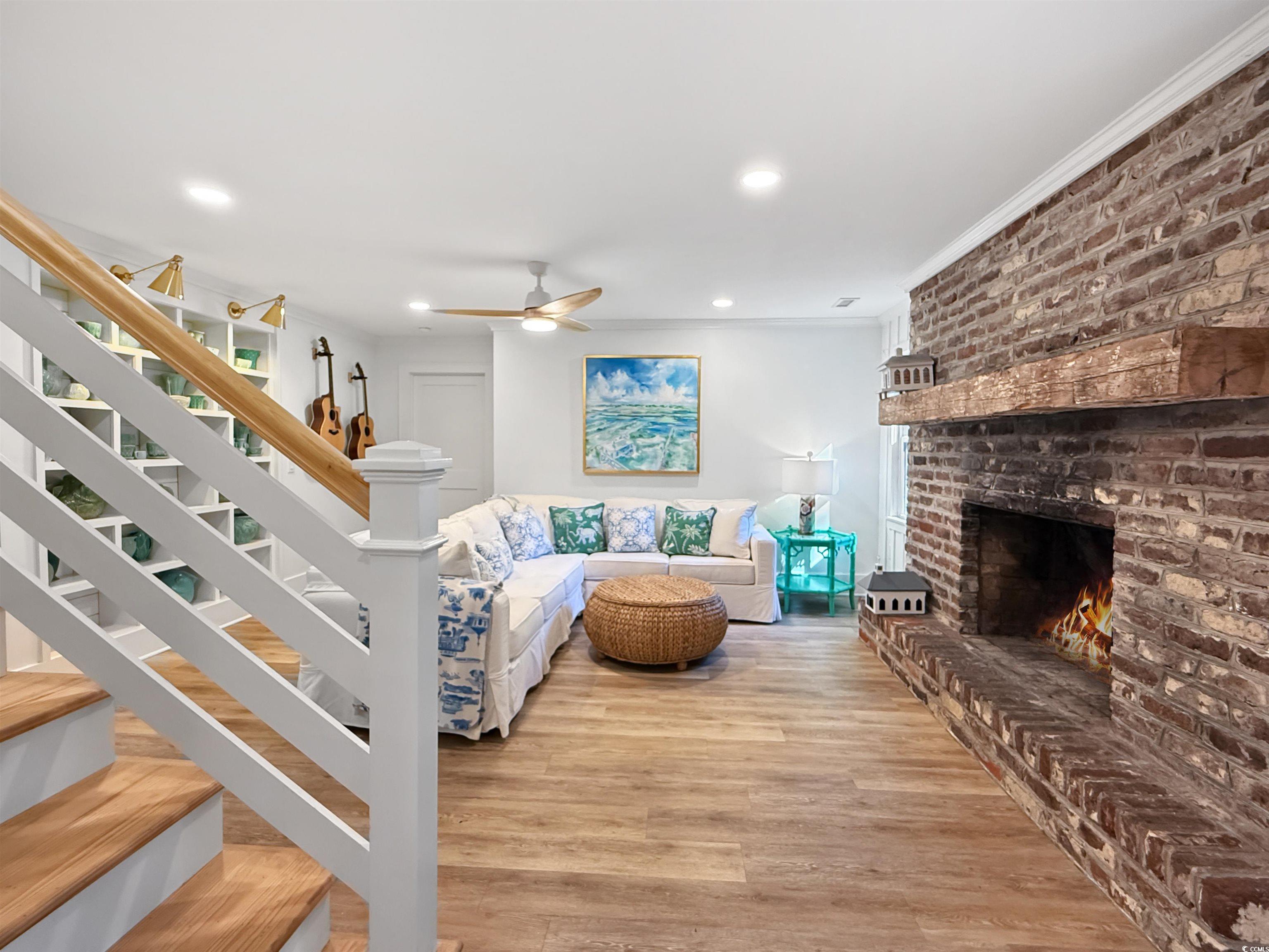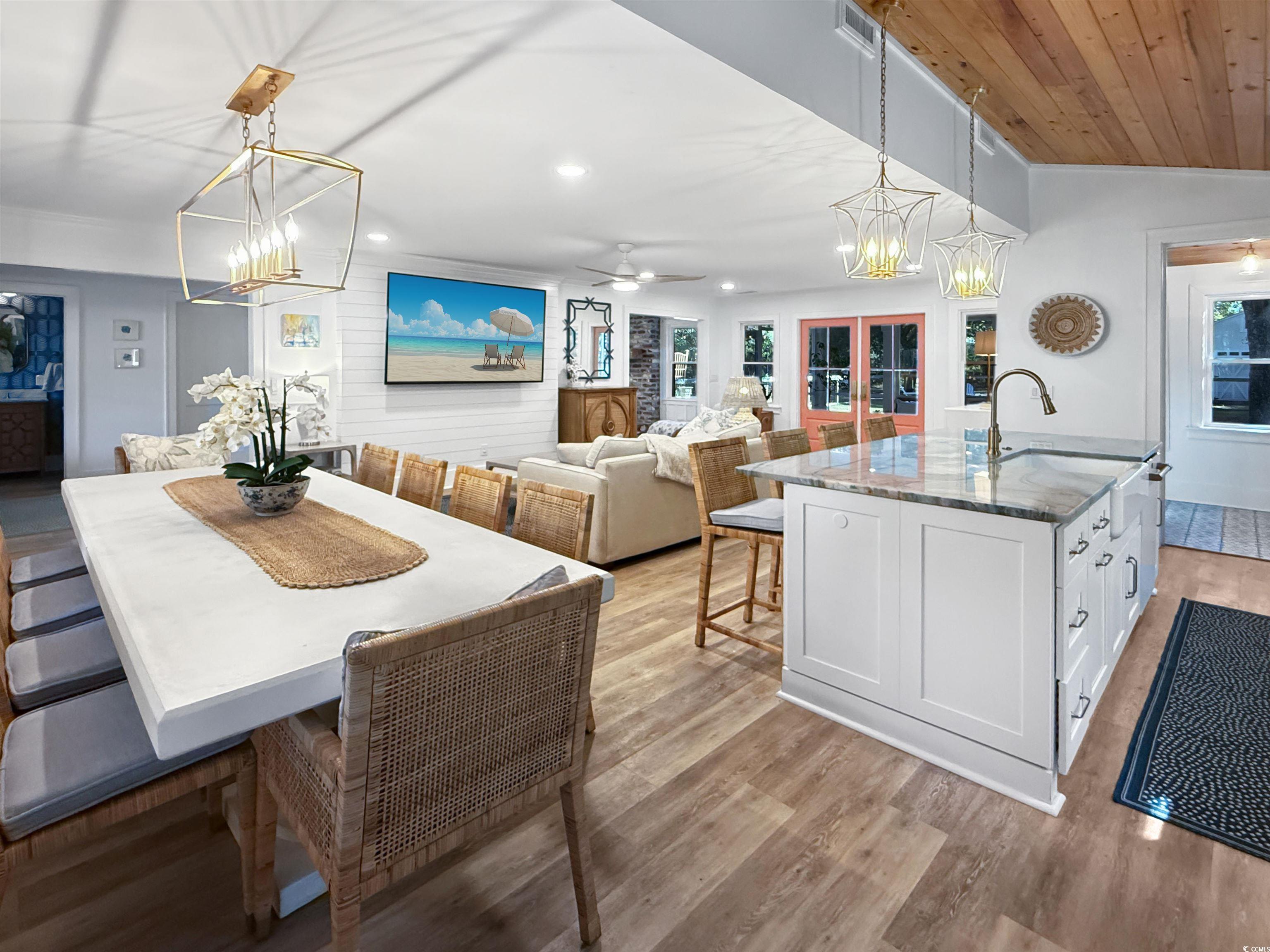 Discover rare privacy at 83 Hammock Ave. Set on a private one-acre lot with NO HOA, this 3,400 sq ft home was completely renovated to the studs in 2023. This 4-bed, 2.5-bath residence showcases quality, modern finishes throughout. The main floor features an open layout and a main-floor primary suite with a beautiful en-suite bath, including a freestanding tub and custom-tiled shower. Upstairs, find 3 additional bedrooms and a large landing. The full-acre lot offers unparalleled freedom. Add a pool, build a workshop, or park your boat with ease. Located just a golf cart ride from the beach or Waccamaw River landing, this property is the perfect blend of thoughtful design and ultimate freedom.